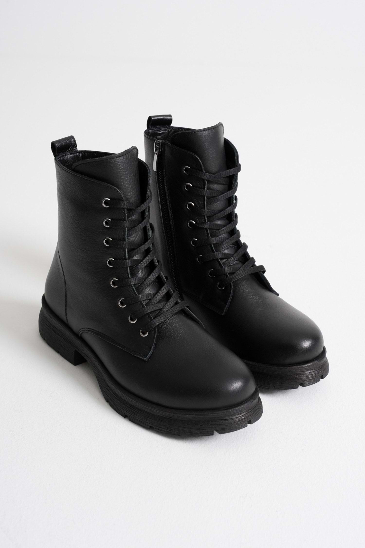 Kadın Hakiki Deri Bağcıklı Fermuarlı Rahat Postal Bot - Siyah