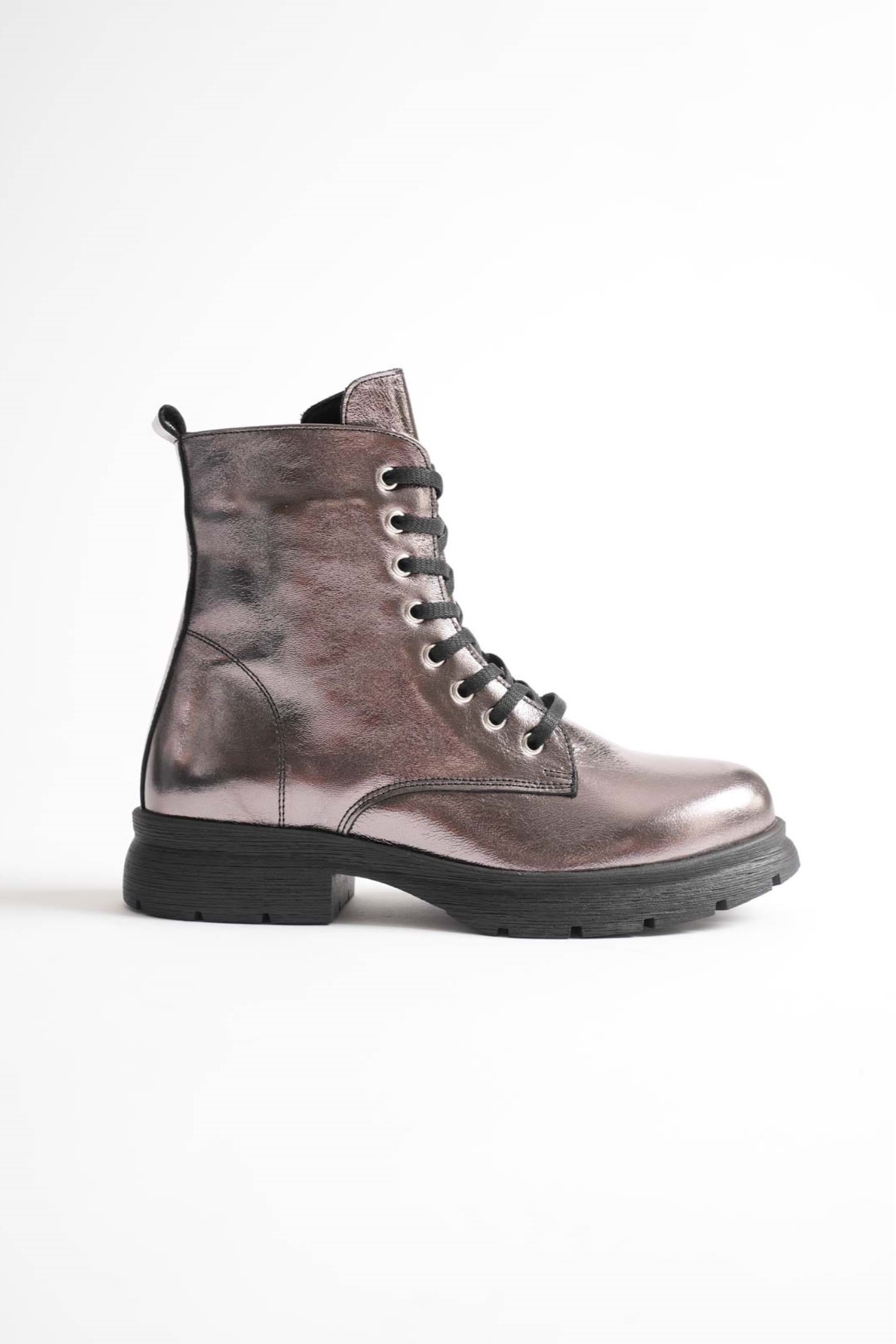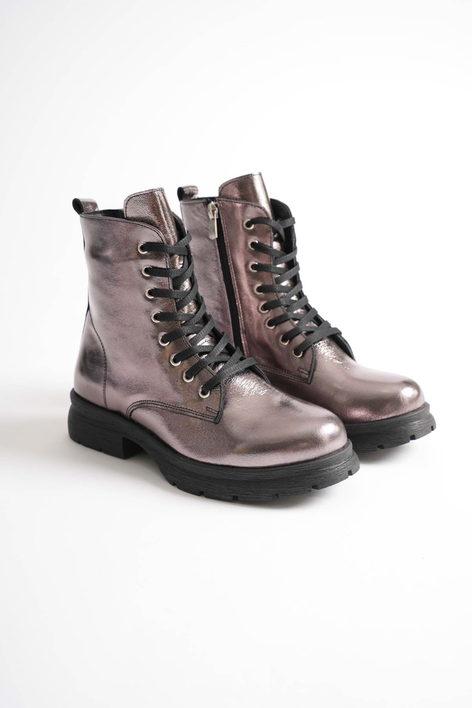 Kadın Hakiki Deri Bağcıklı Fermuarlı Rahat Postal Bot - Platin