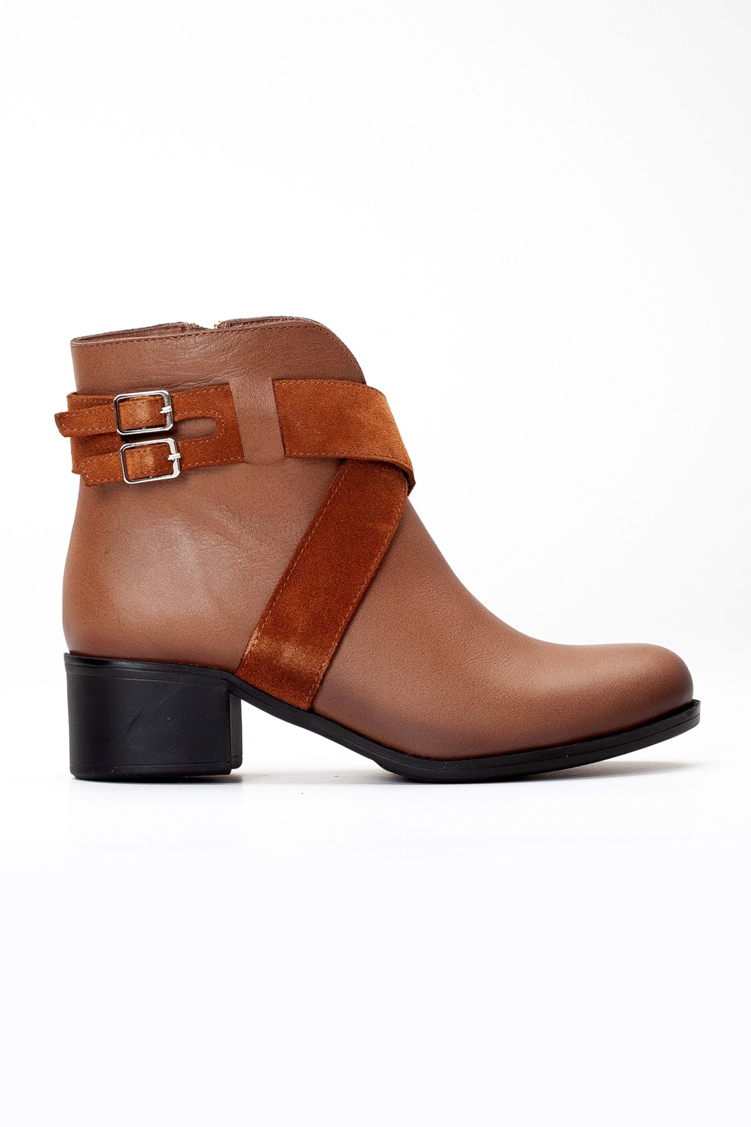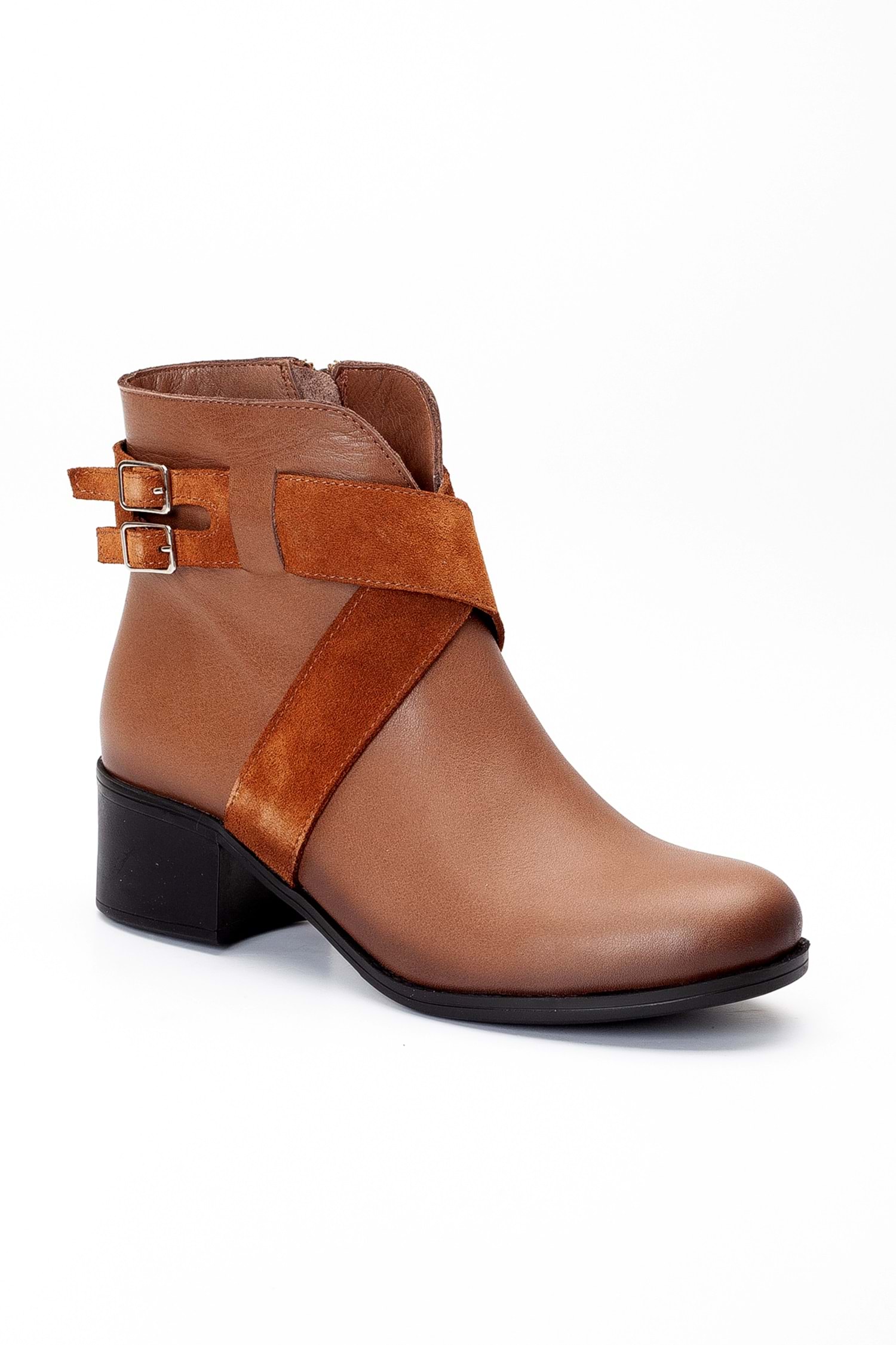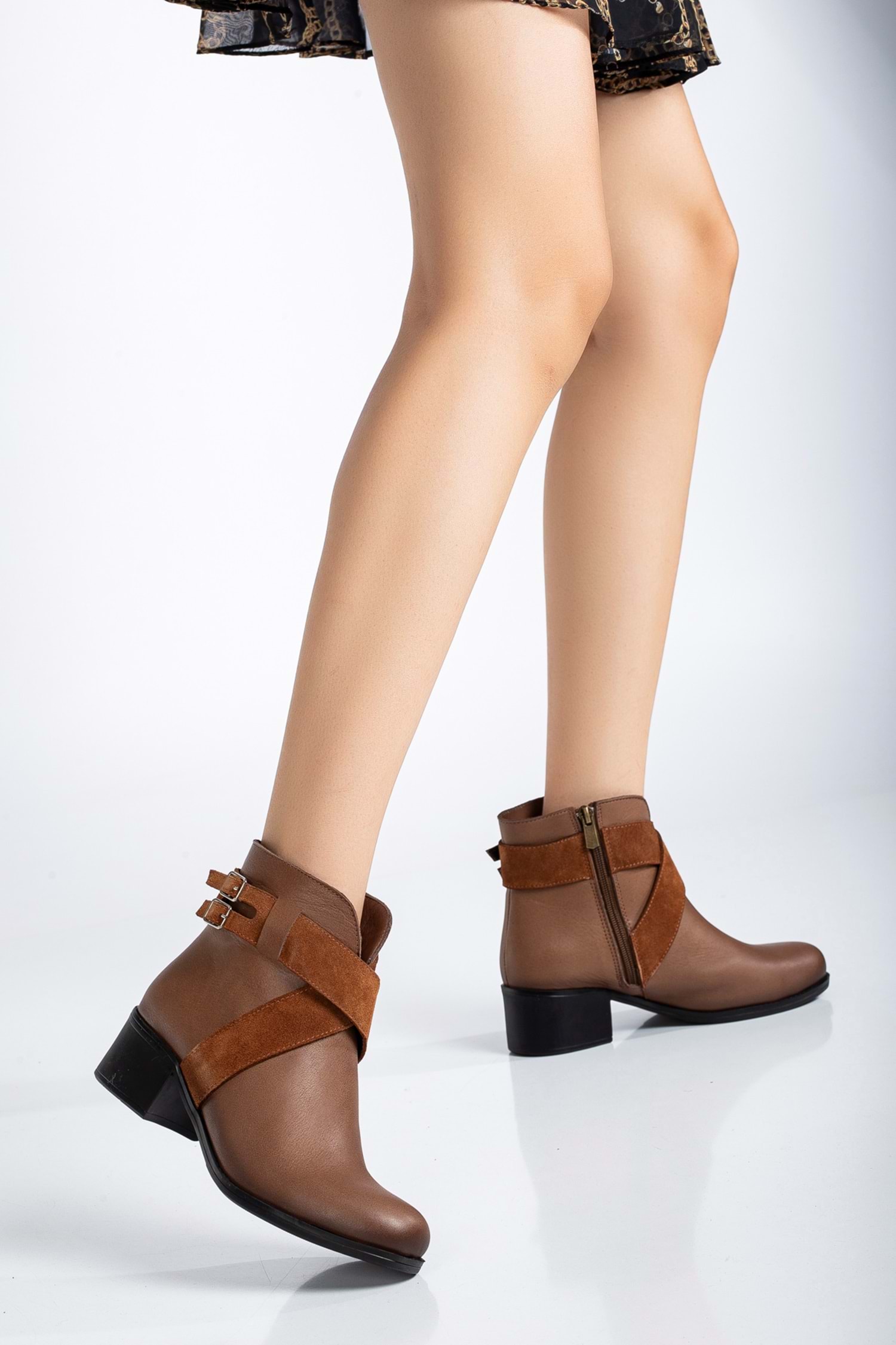 Kadın Hakiki Deri Çapraz Süet Detaylı Tokalı Günlük Bot - Ceviz