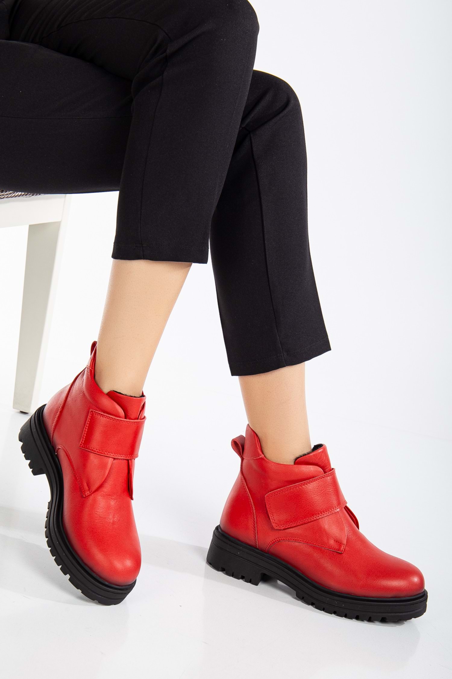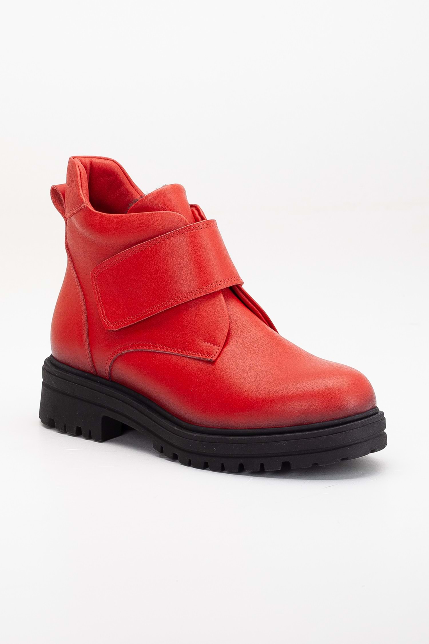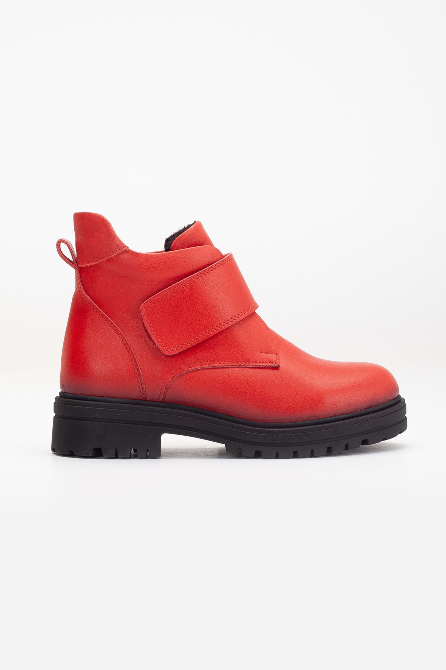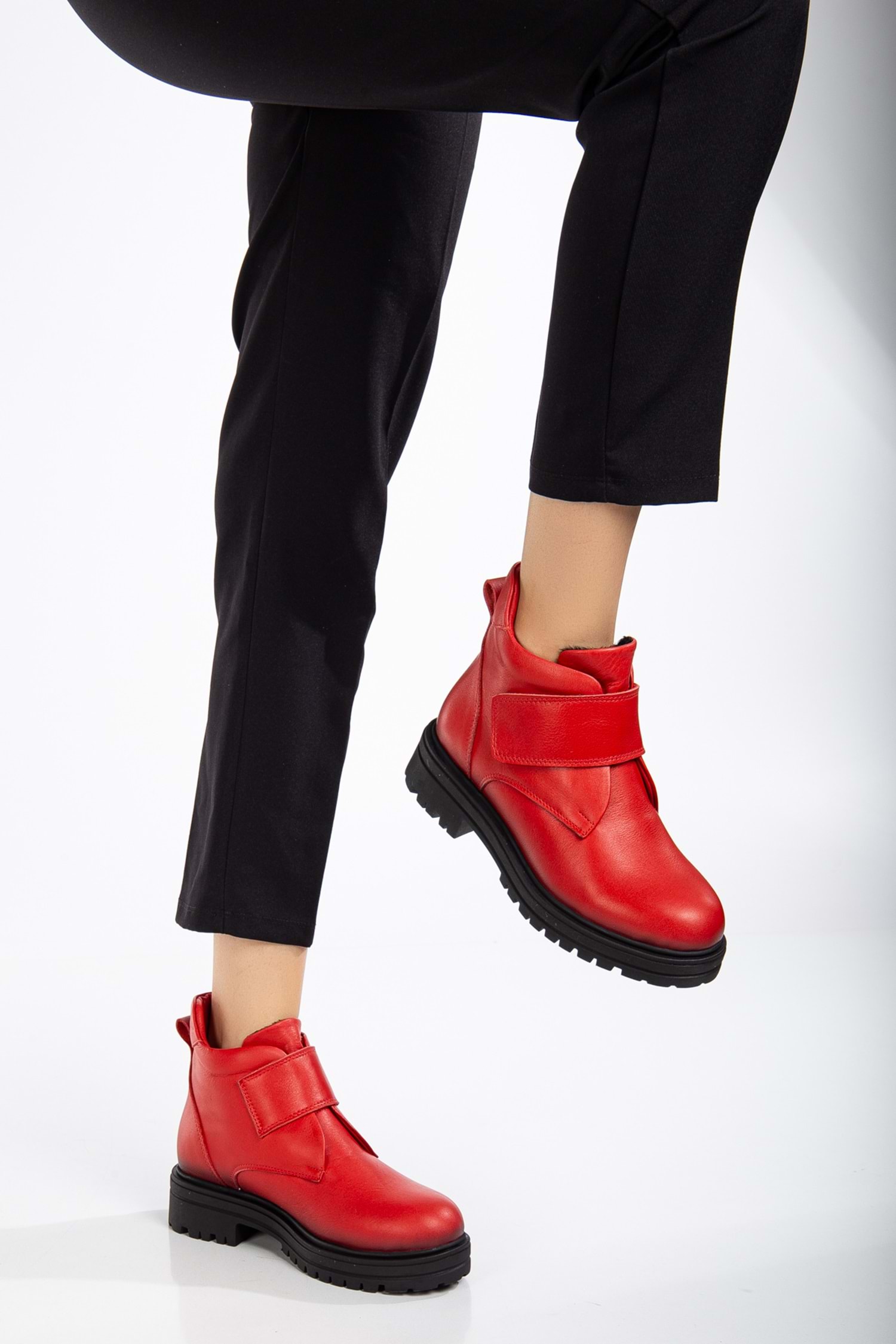 Kadın Hakiki Deri Cırtlı Kolay Giyim Günlük Bot - Kırmızı