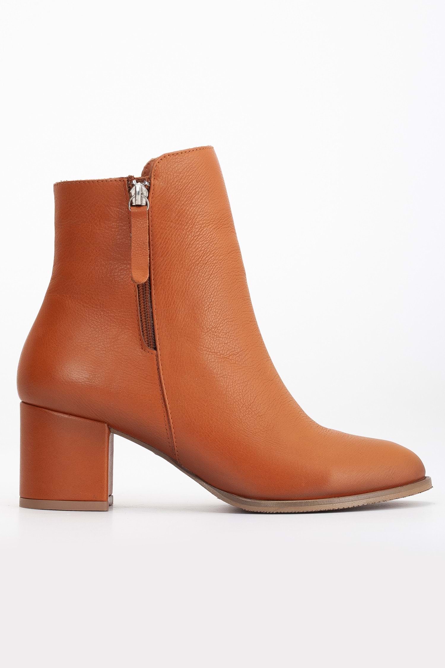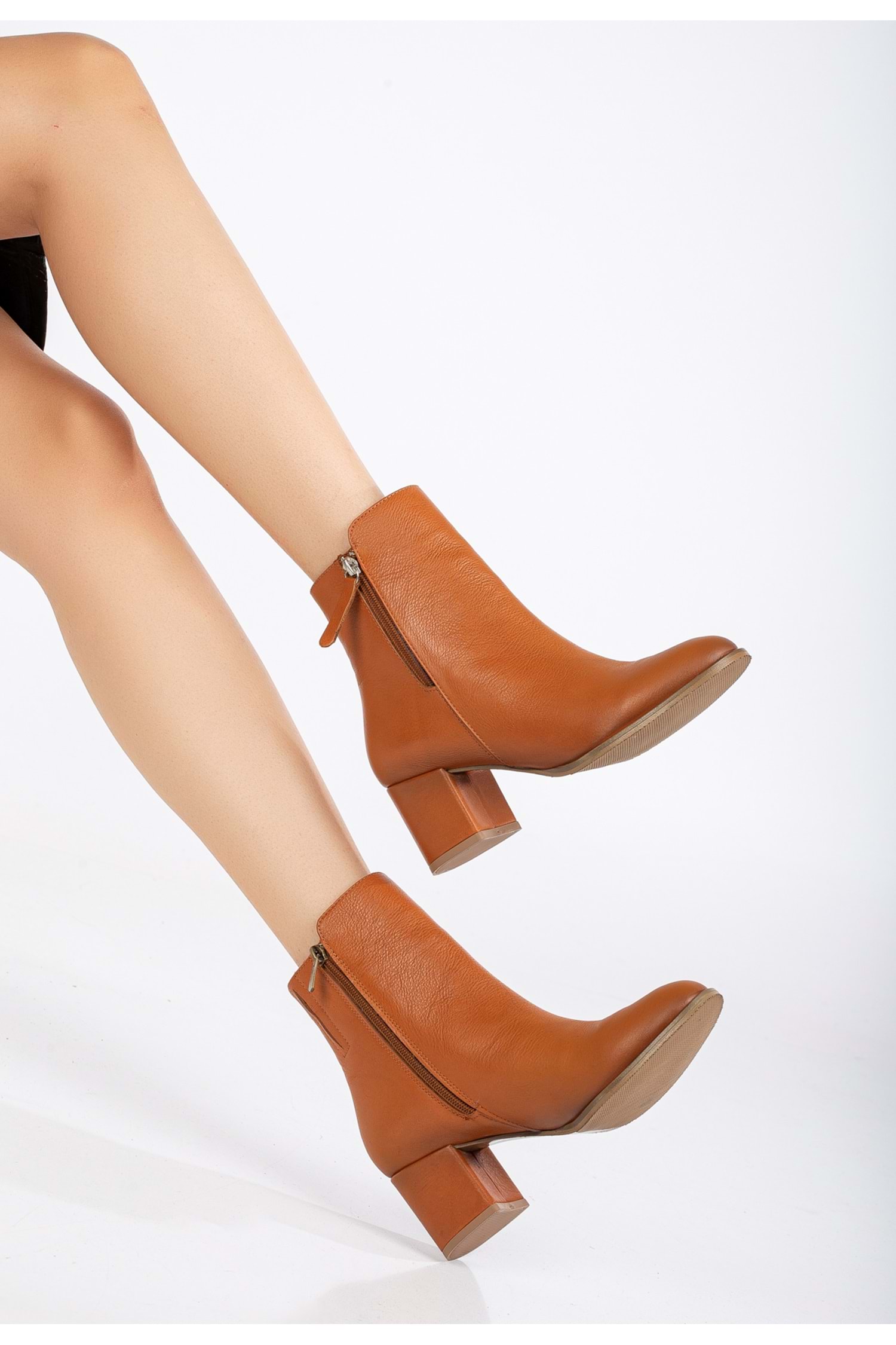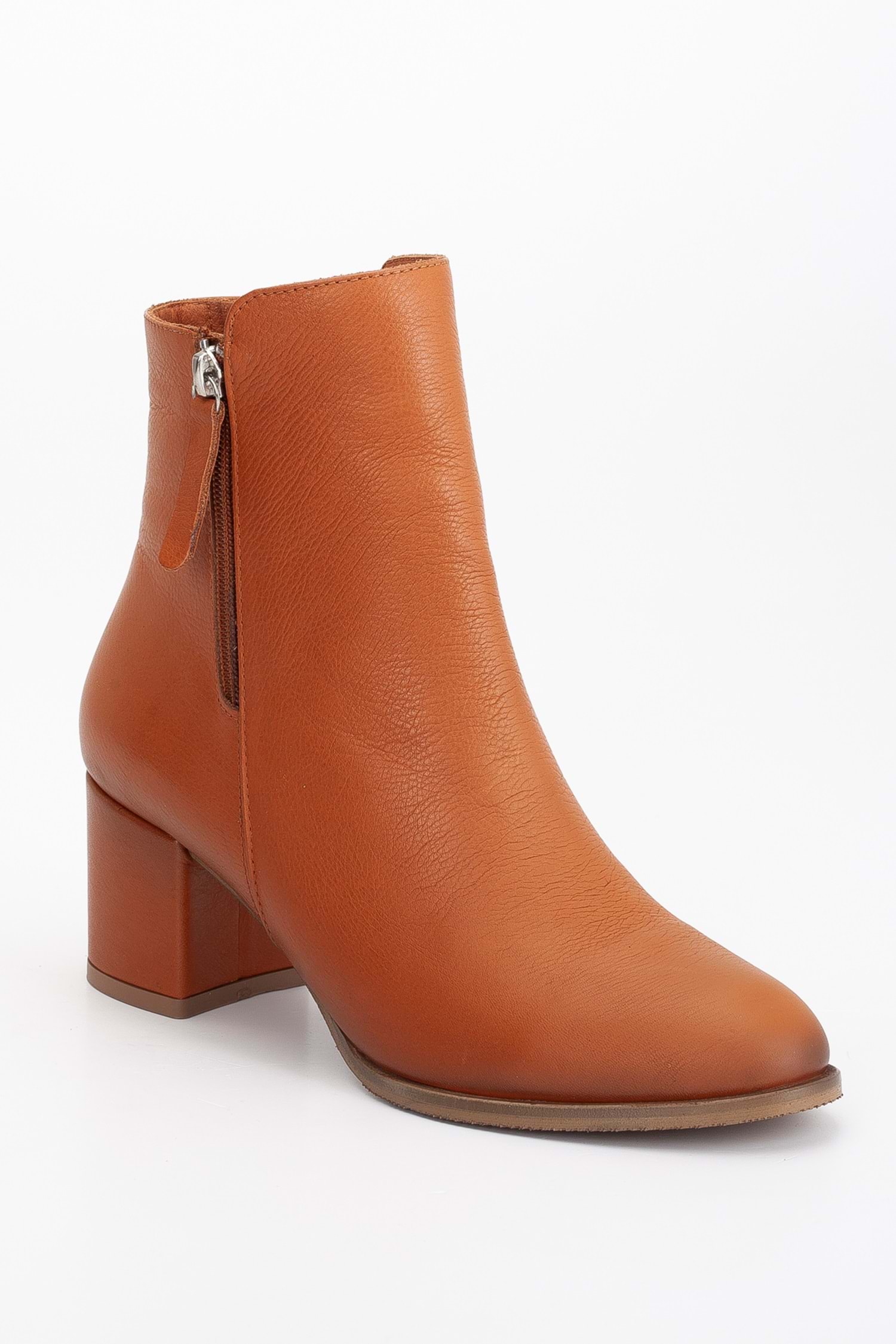 Kadın Hakiki Deri Fermuar Detaylı Bot - Taba