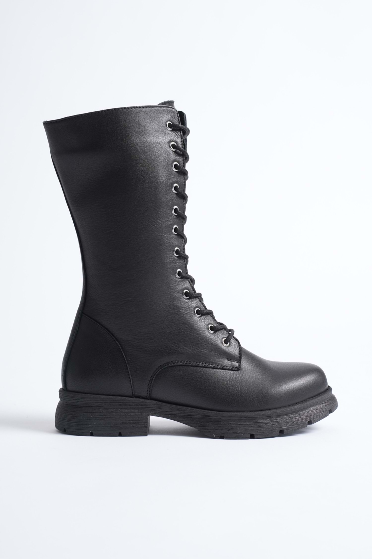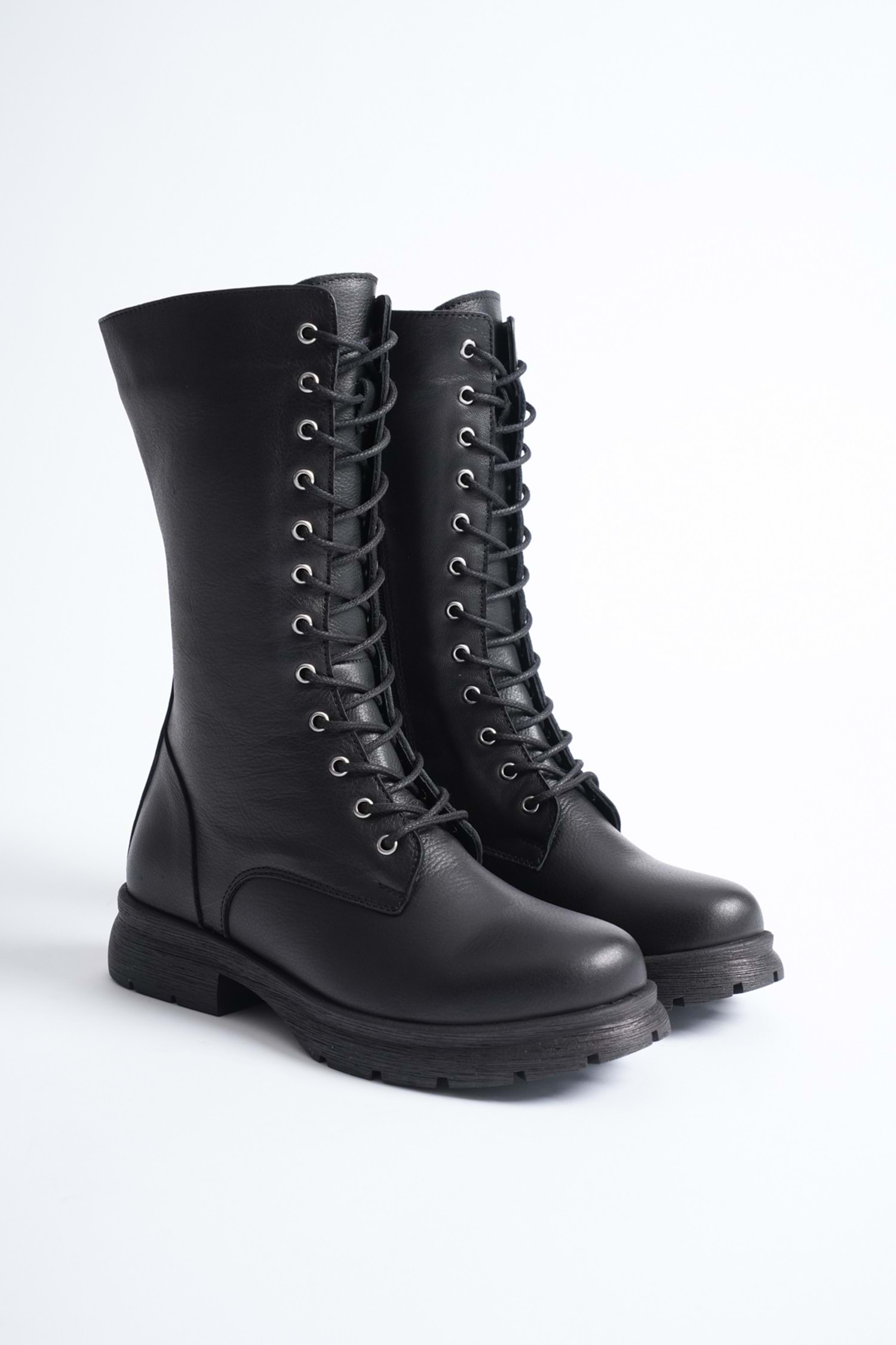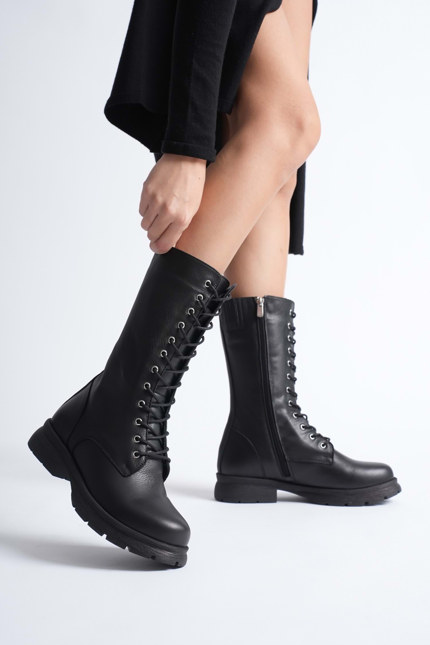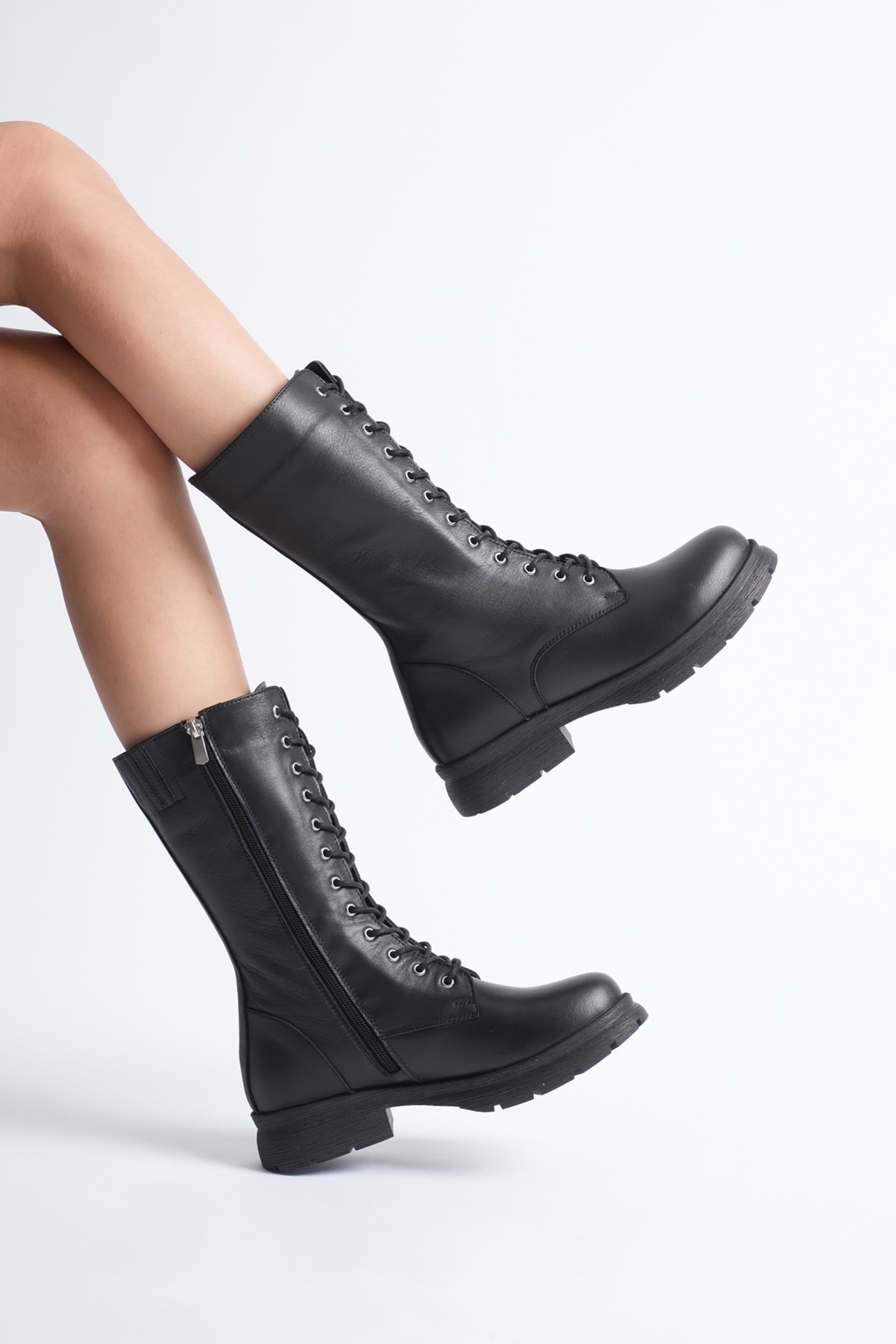 Kadın Hakiki Deri Fermuarlı Bağcıklı Postal Bot - Siyah