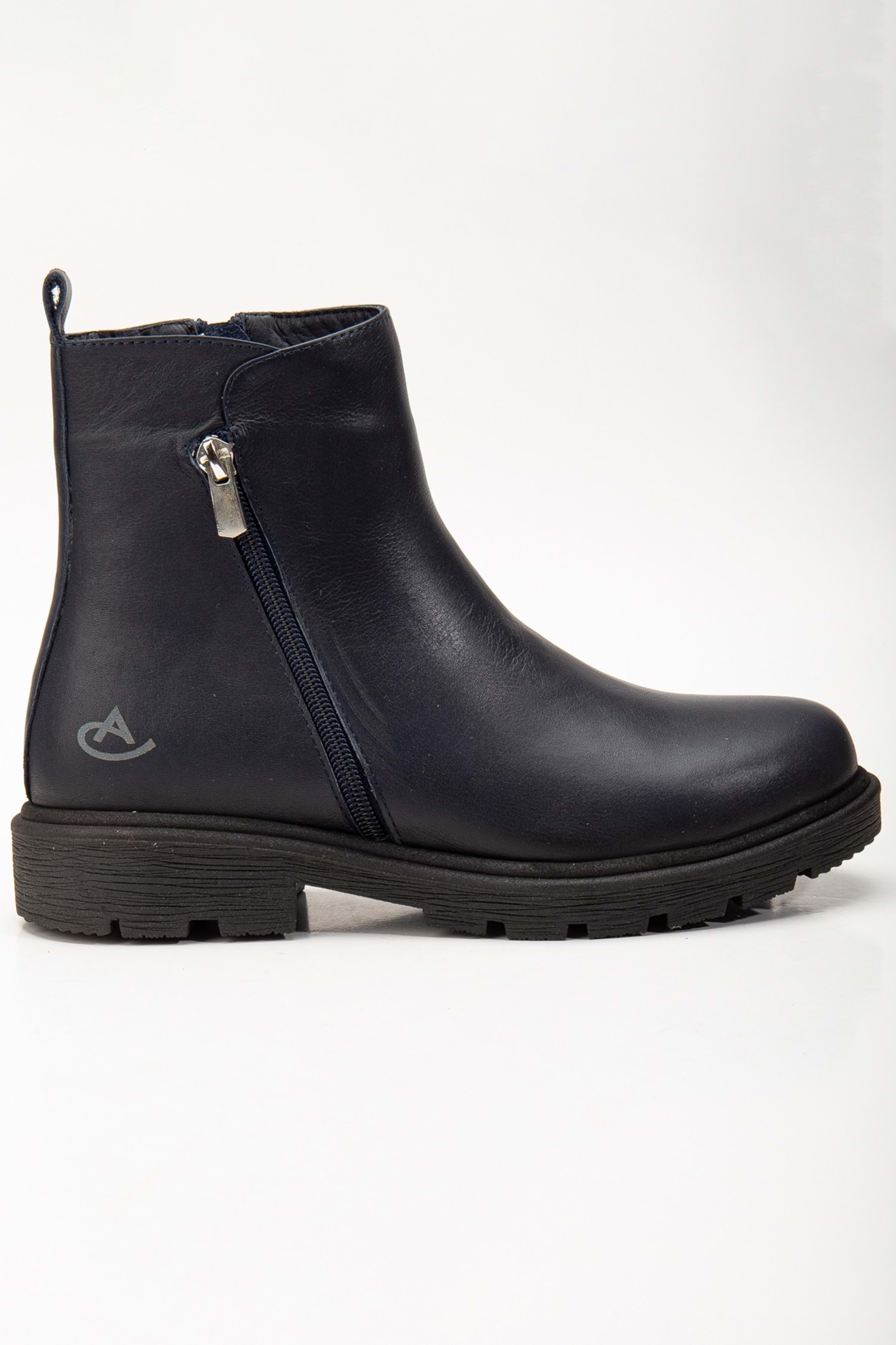 Kadın Hakiki Deri Fermuarlı Bot - Lacivert