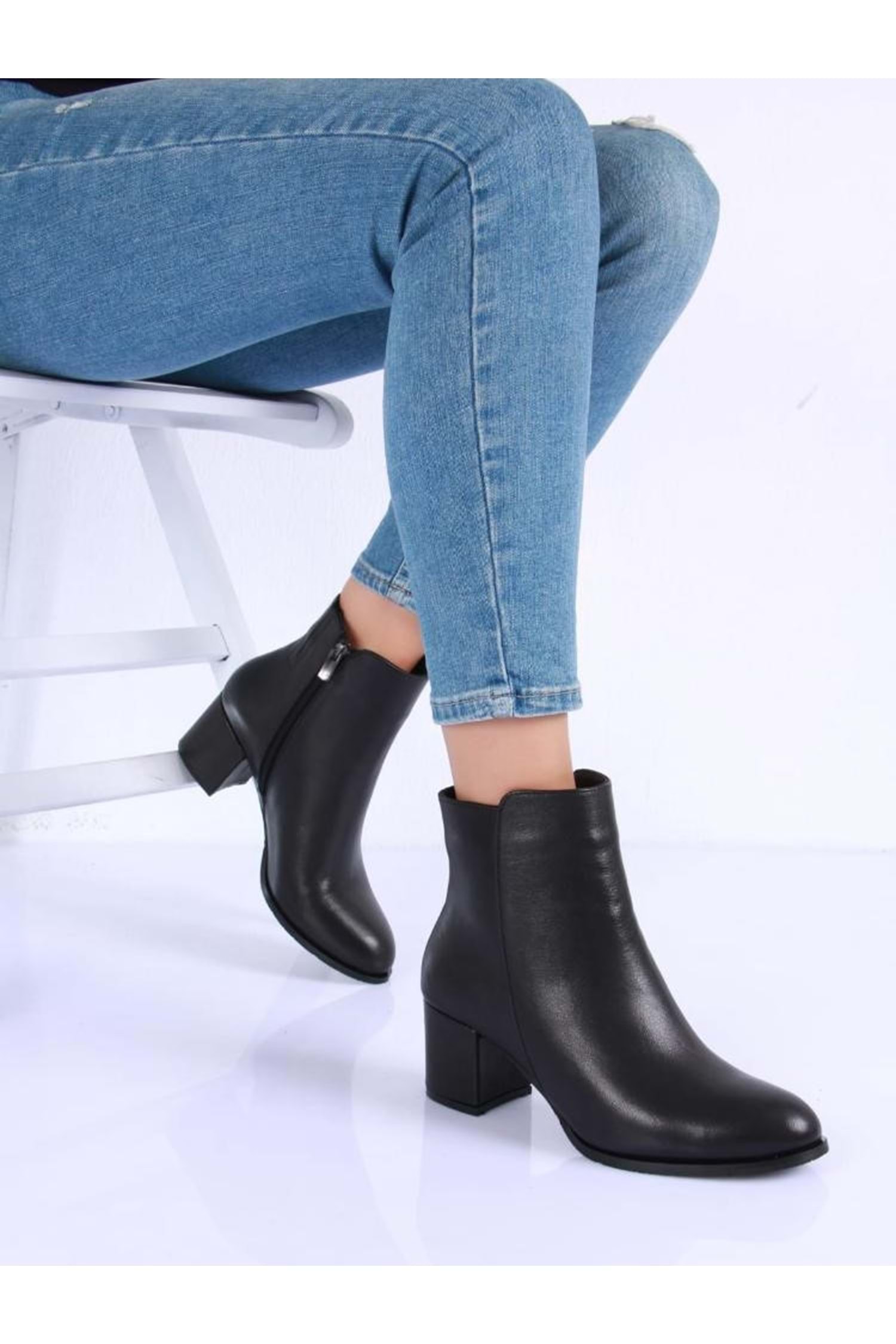 Kadın Hakiki Deri Günlük Topuklu Bot - Siyah