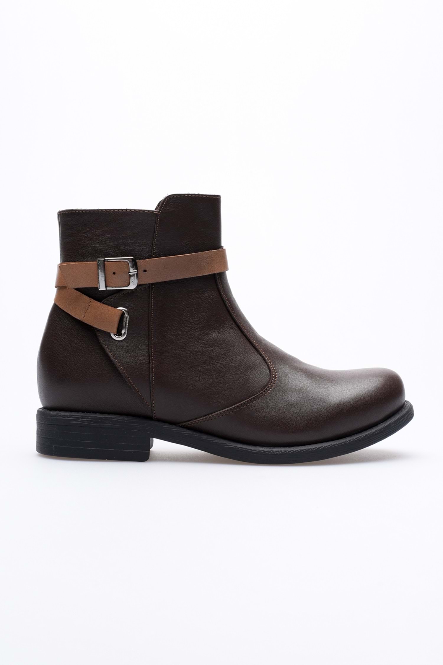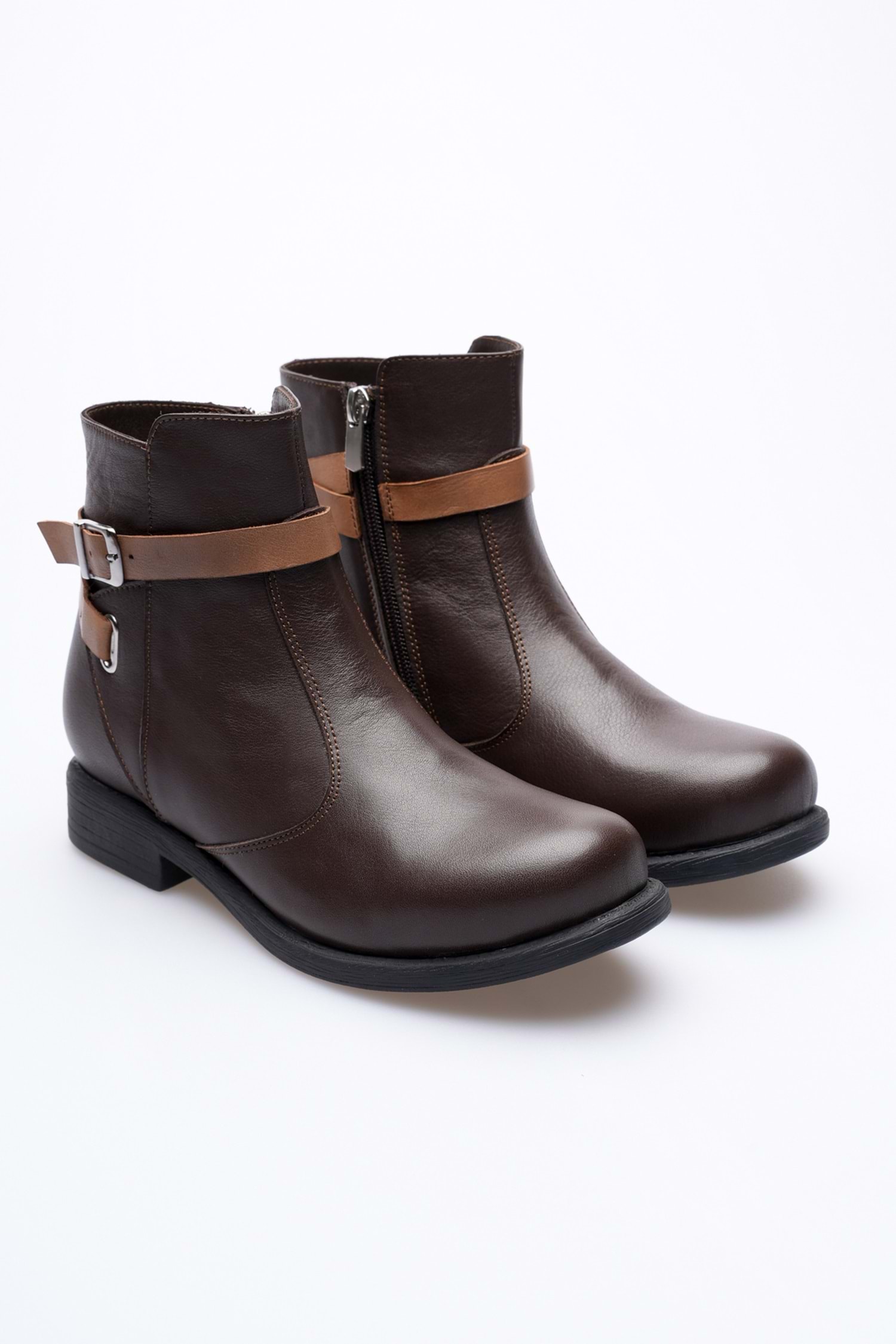 Kadın Hakiki Deri Kemerli Günlük Bot - Kahve