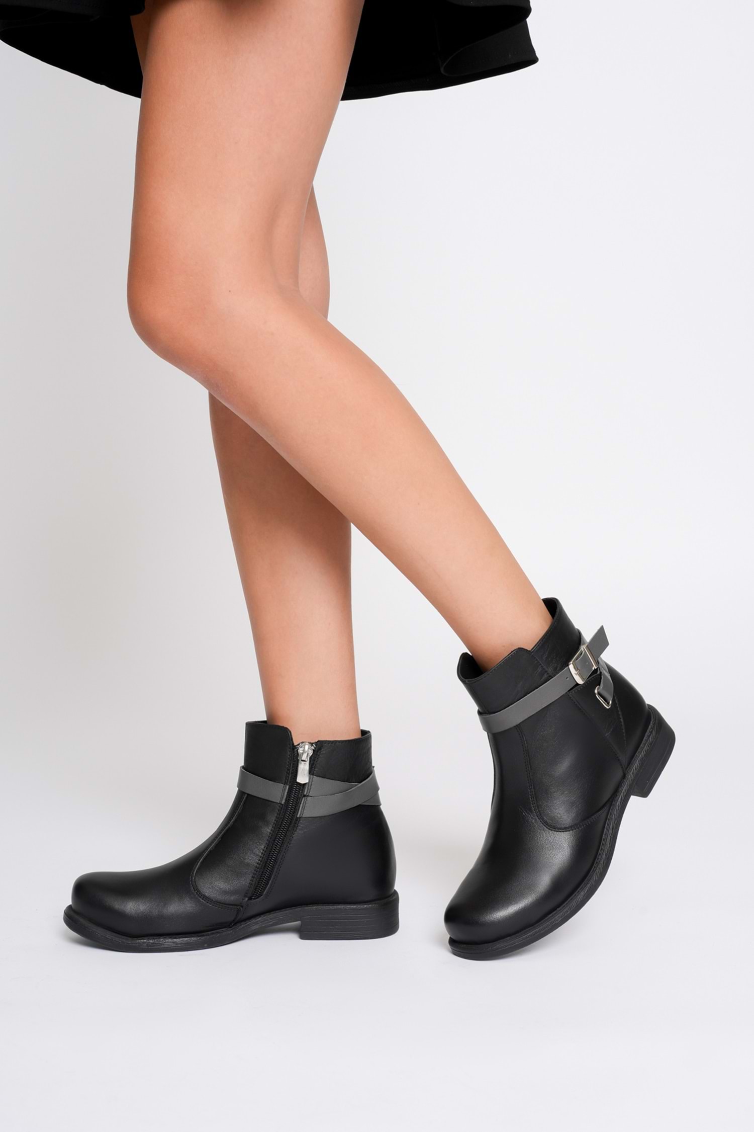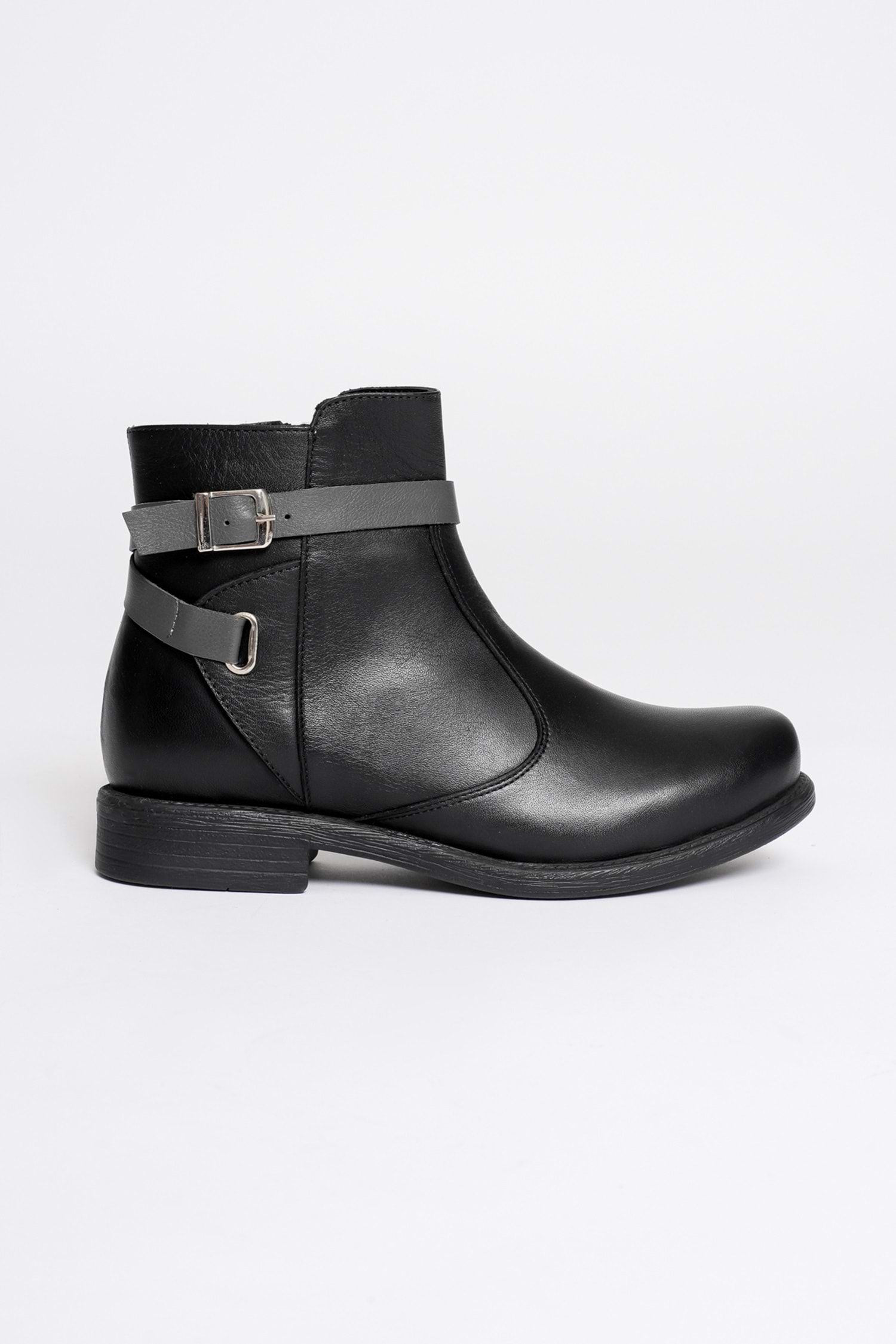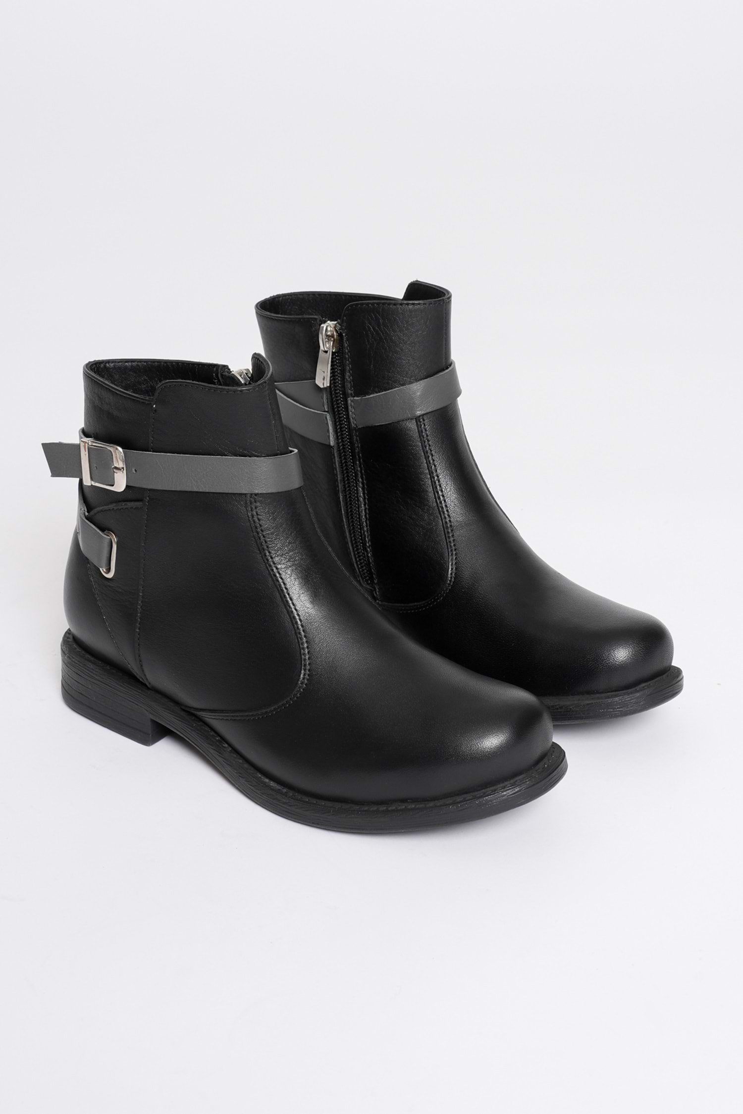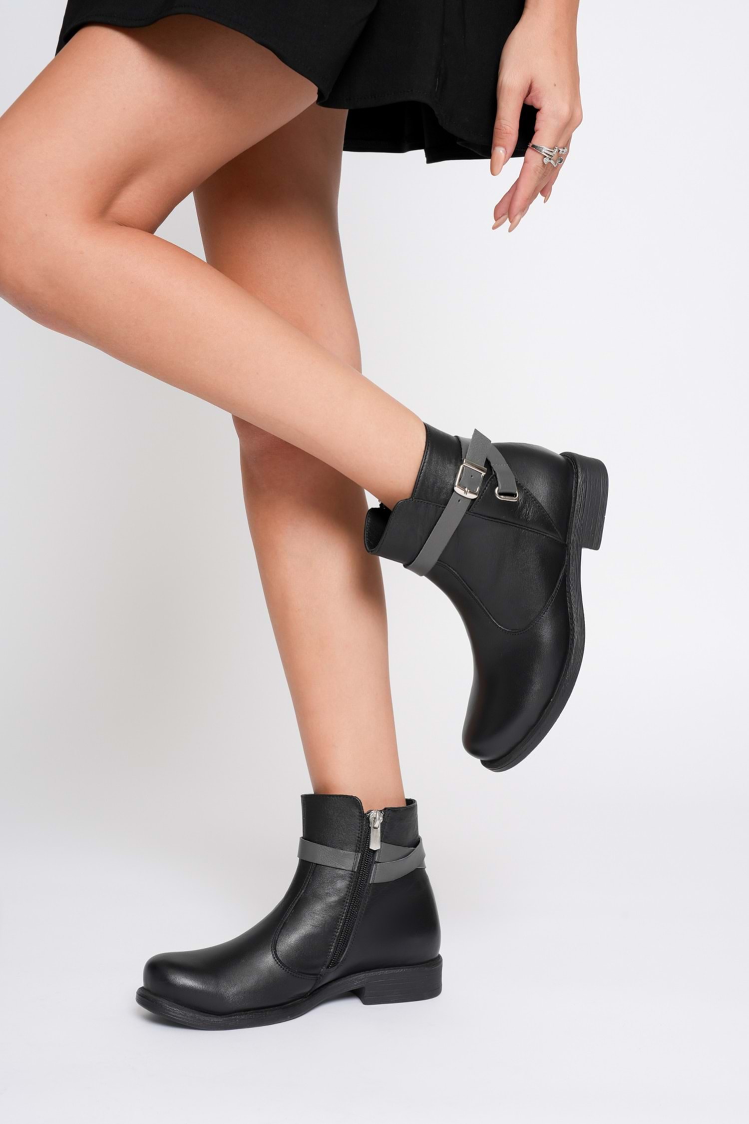 Kadın Hakiki Deri Kemerli Günlük Bot - Siyah