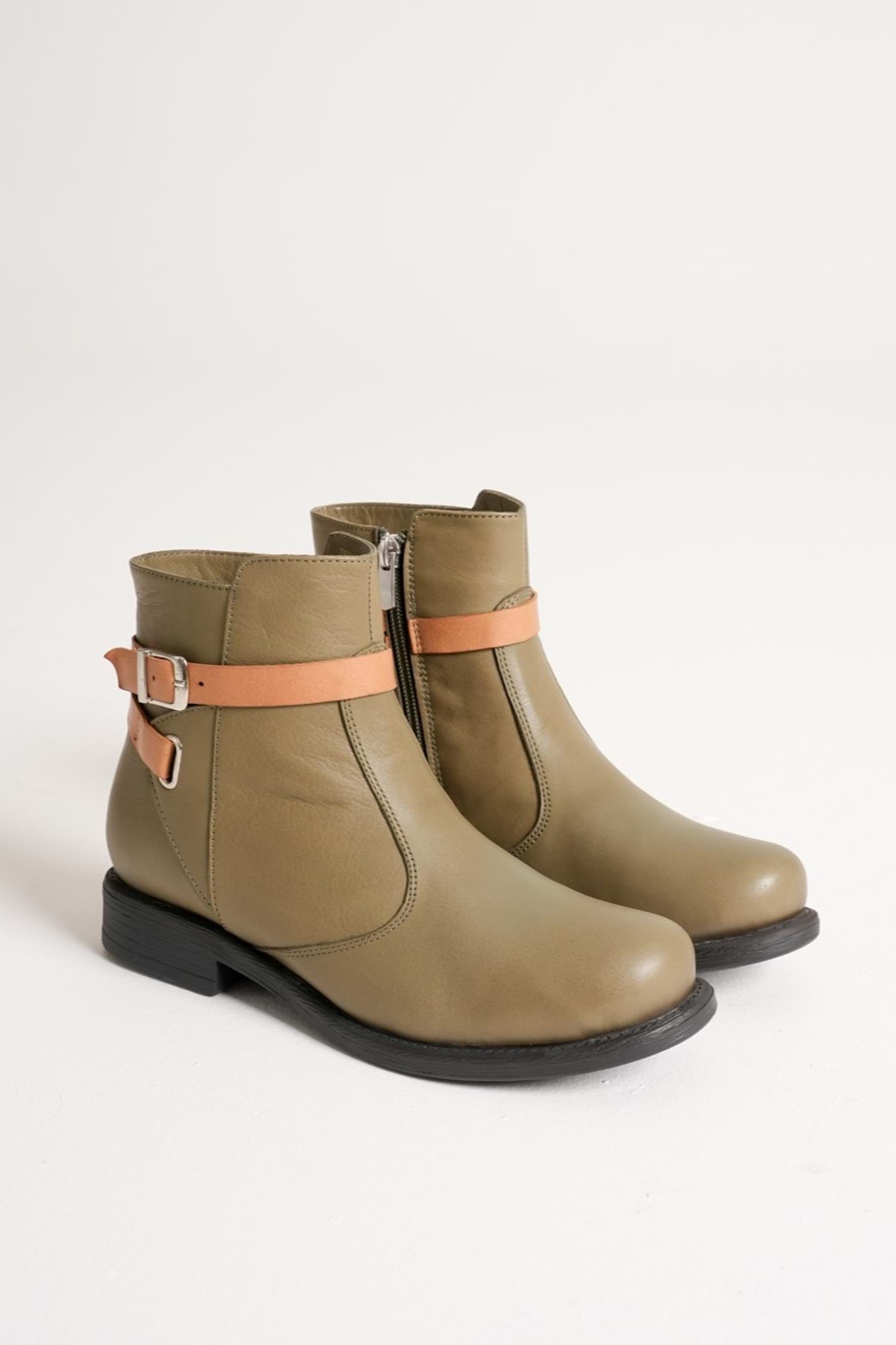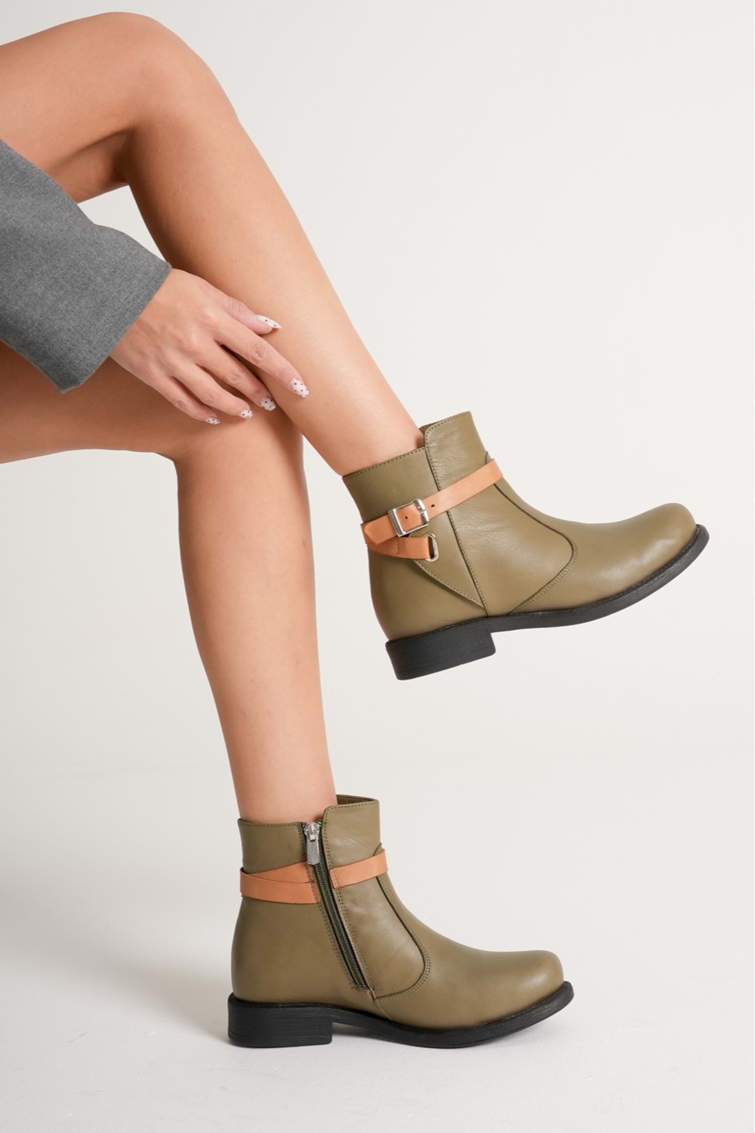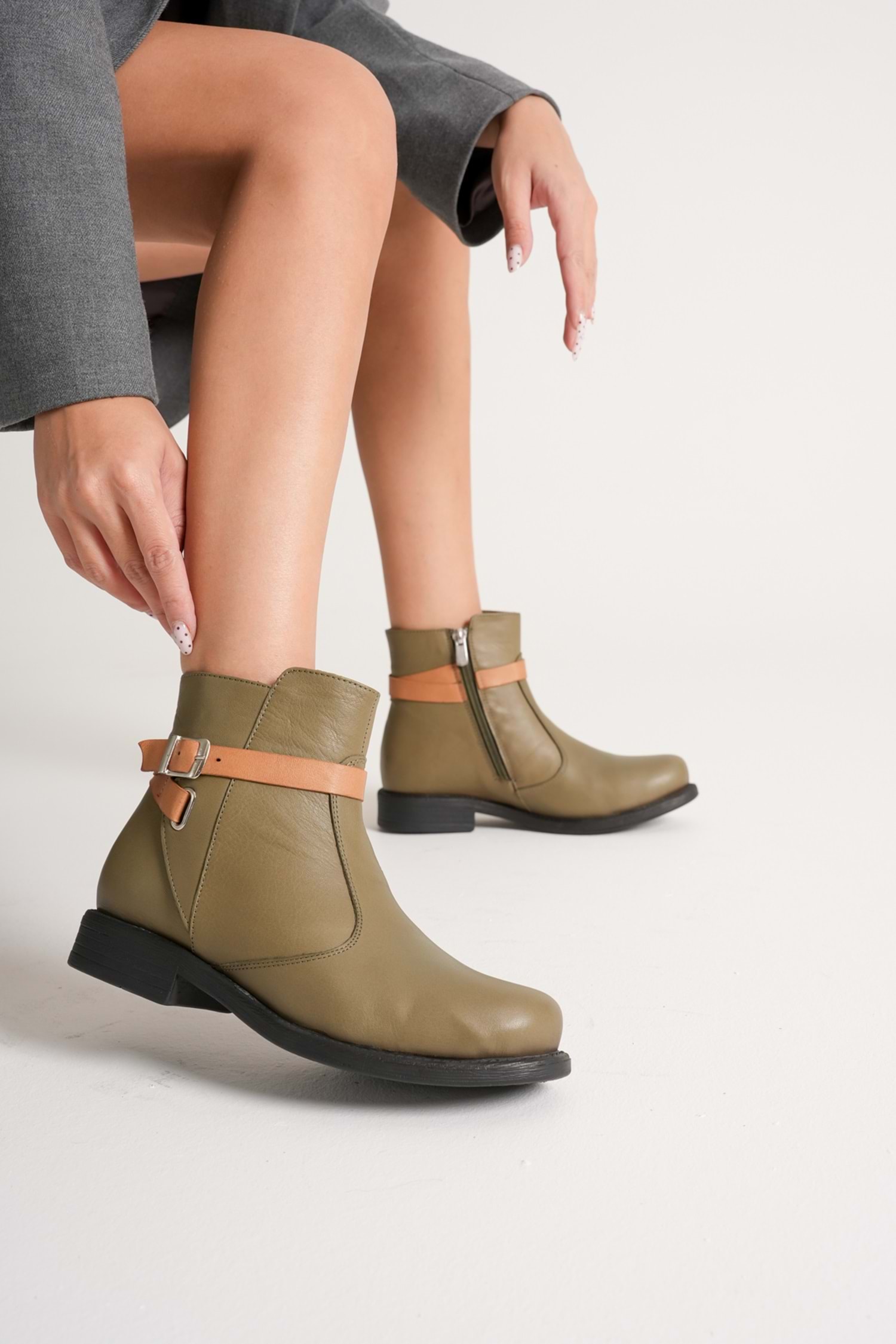 Kadın Hakiki Deri Kemerli Günlük Bot - Yeşil
