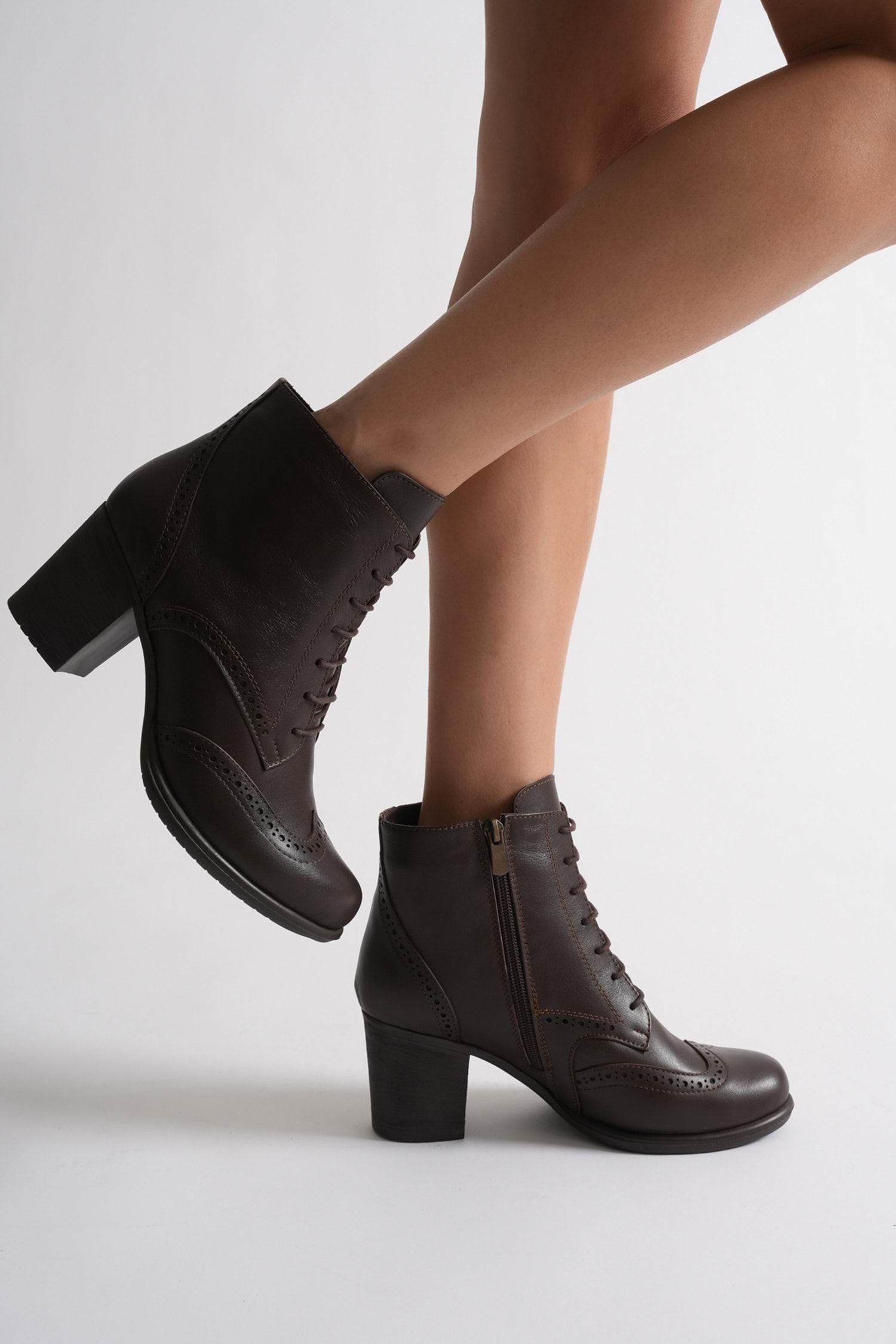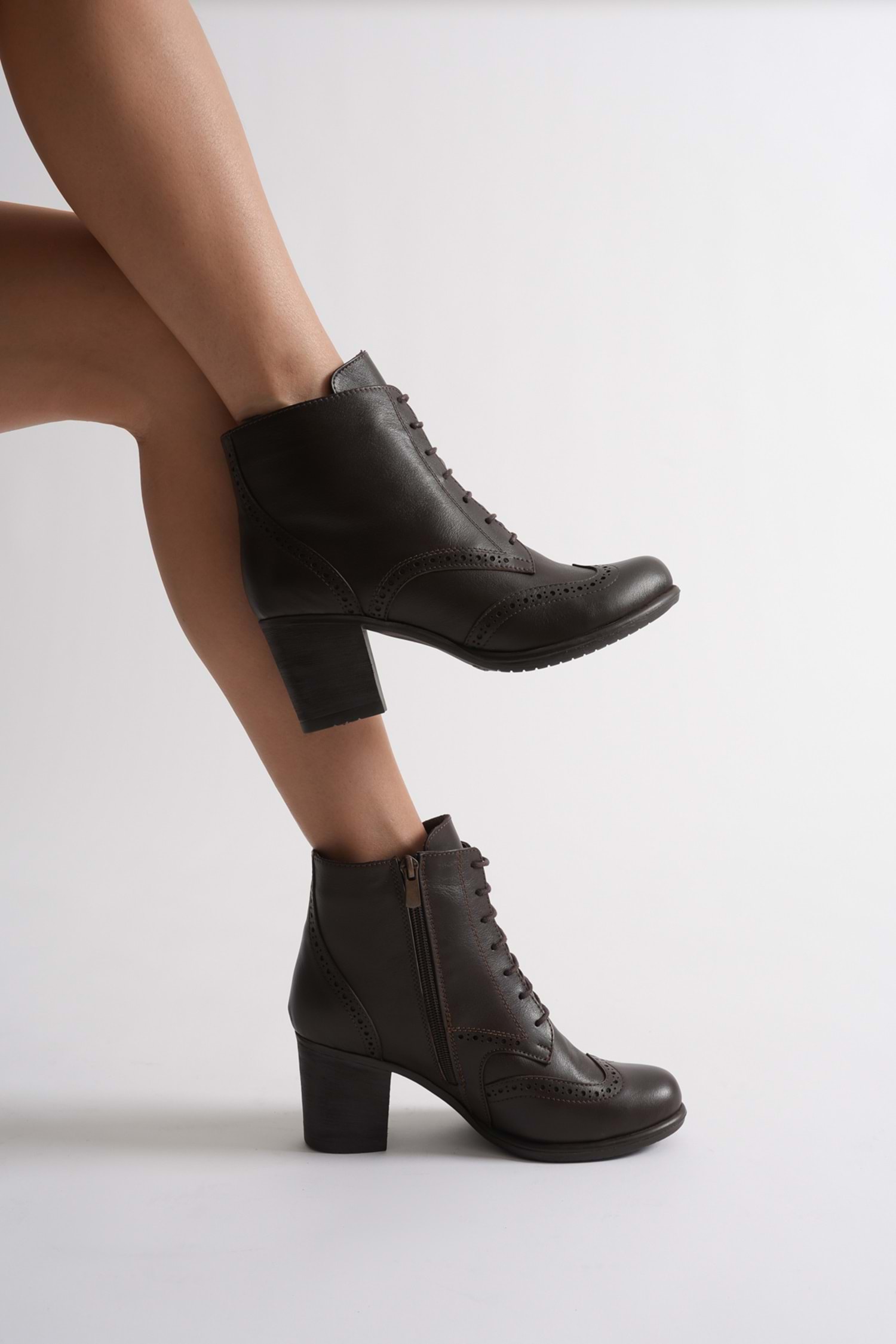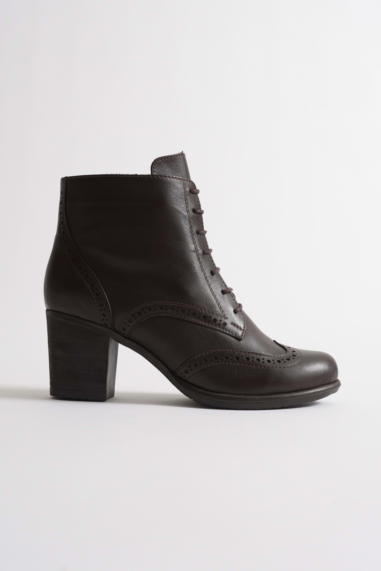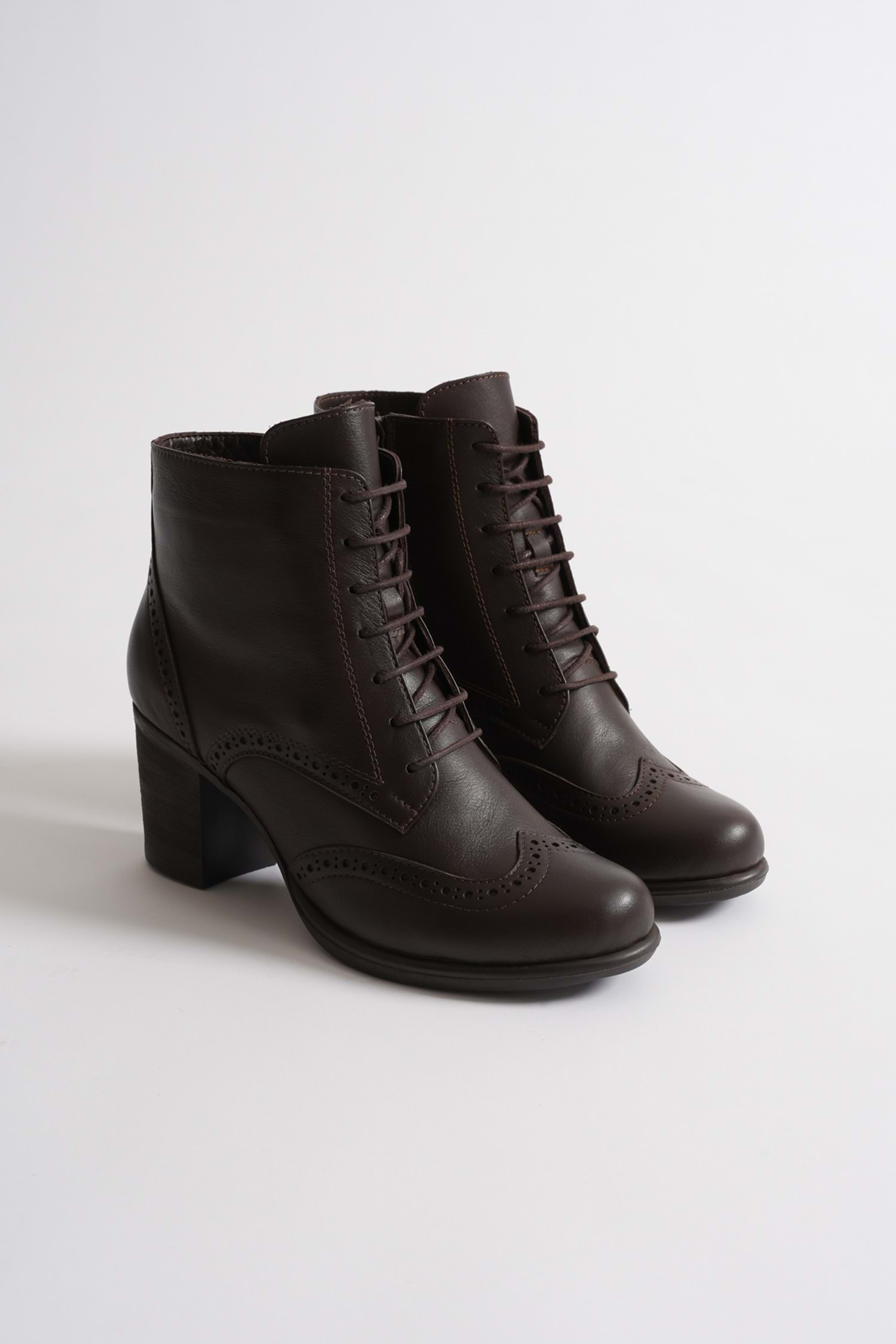 Kadın Hakiki Deri Lazer Detaylı Bağcıklı Bot - Kahve