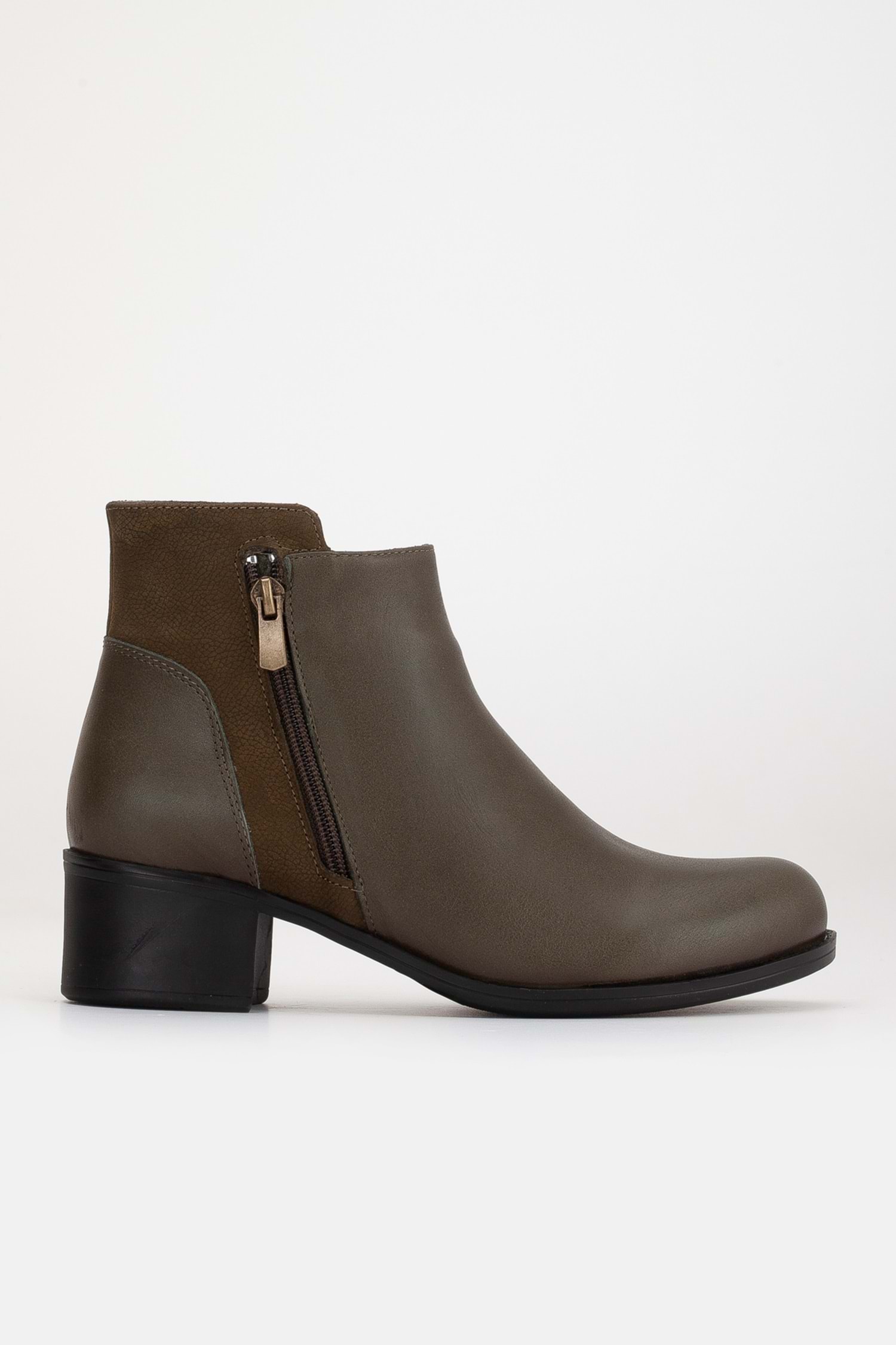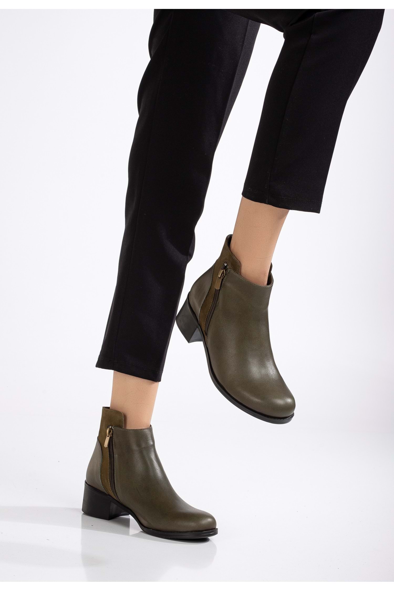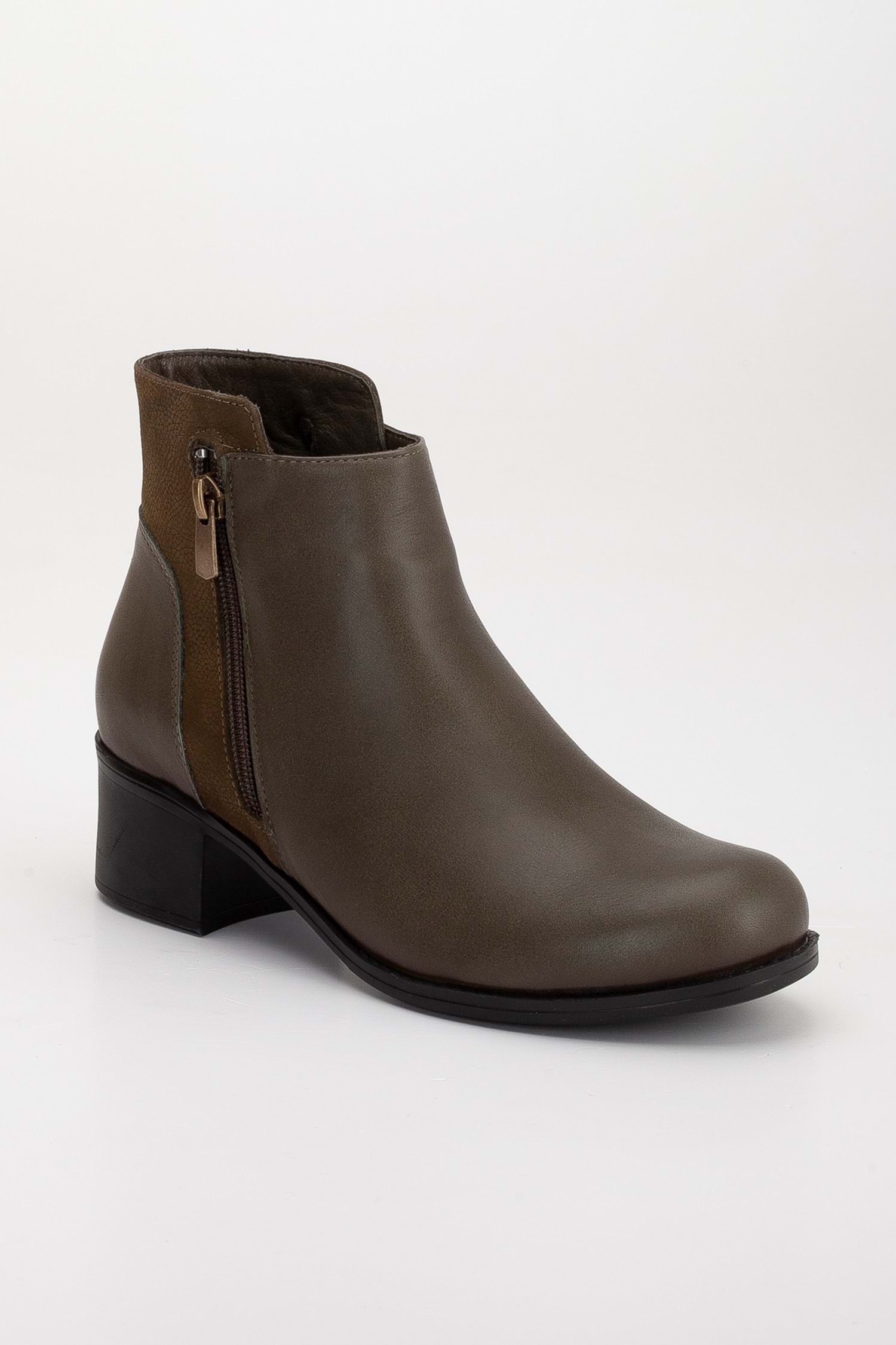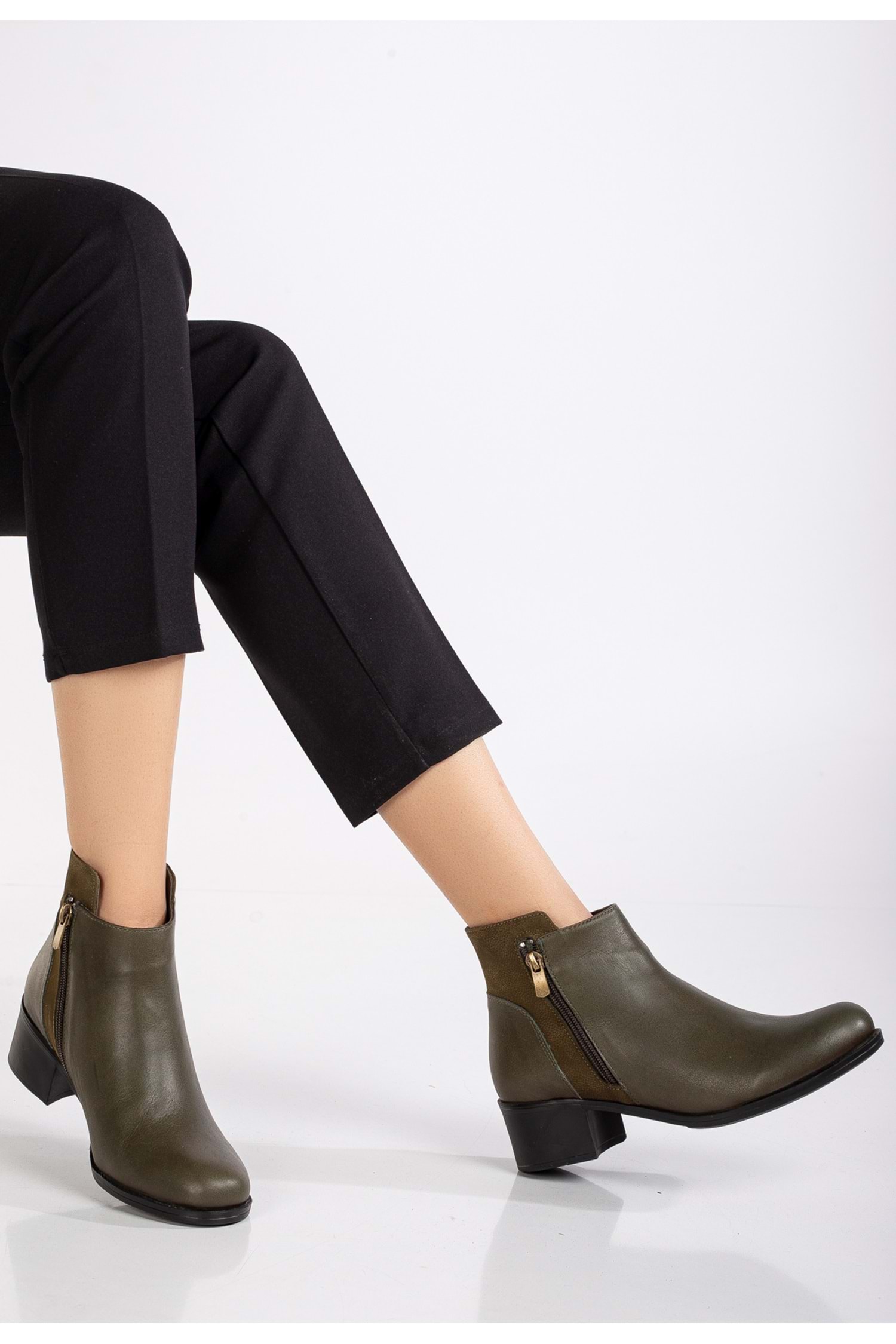 Kadın Hakiki Deri Nubuk Detaylı Kısa Topuklu Bilek Bot - Haki