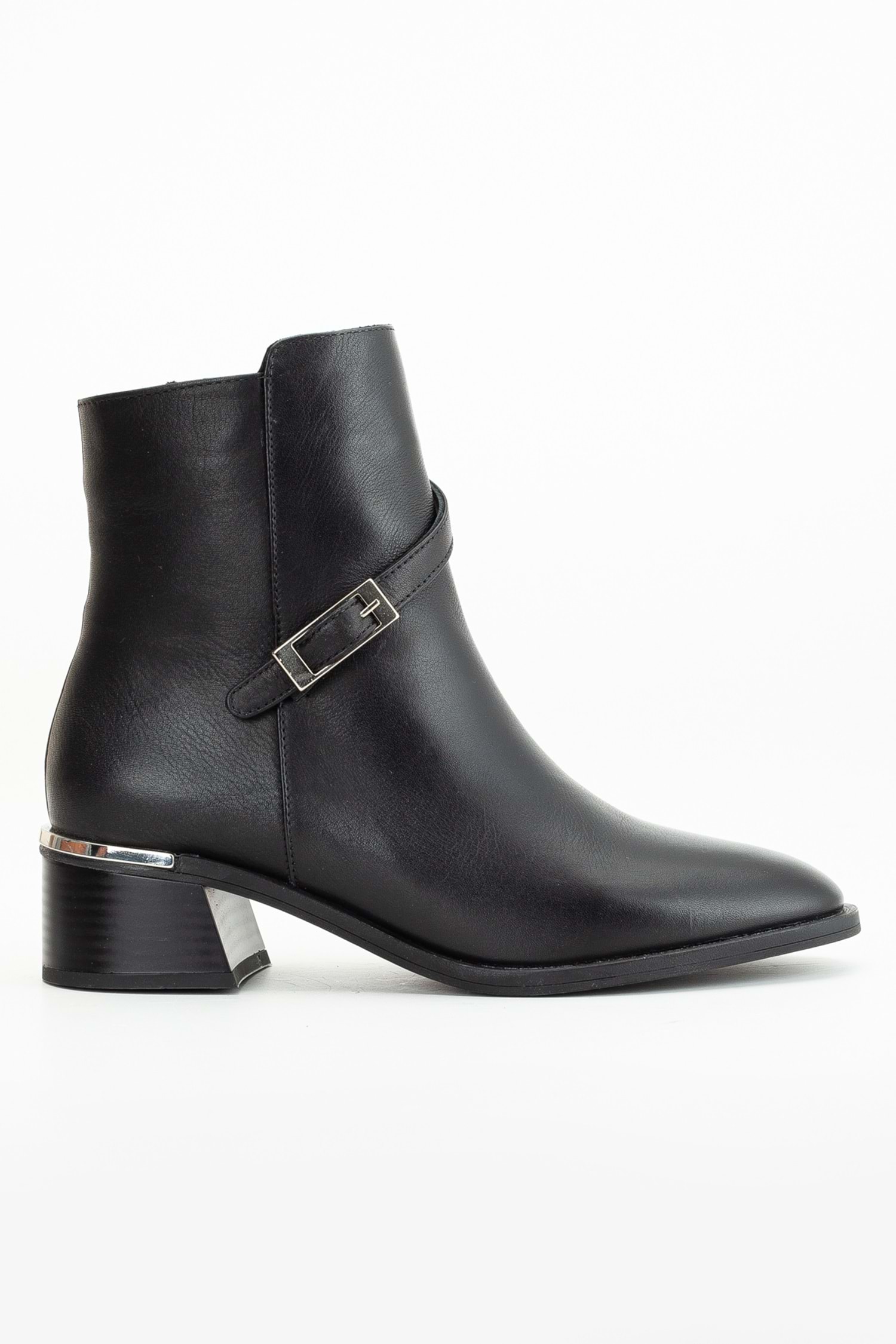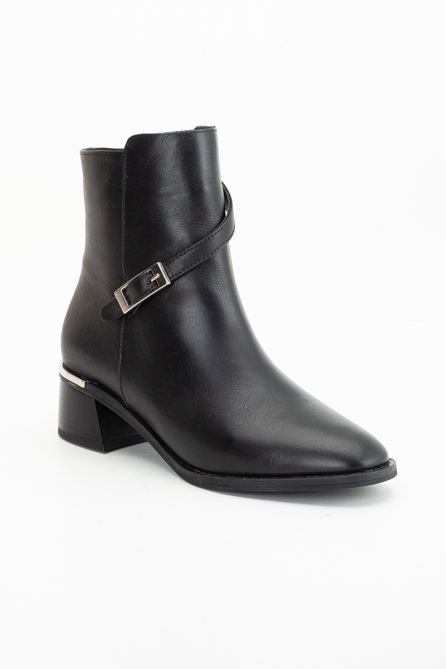 Kadın Hakiki Deri Metal Toka Detaylı Bot - Siyah
