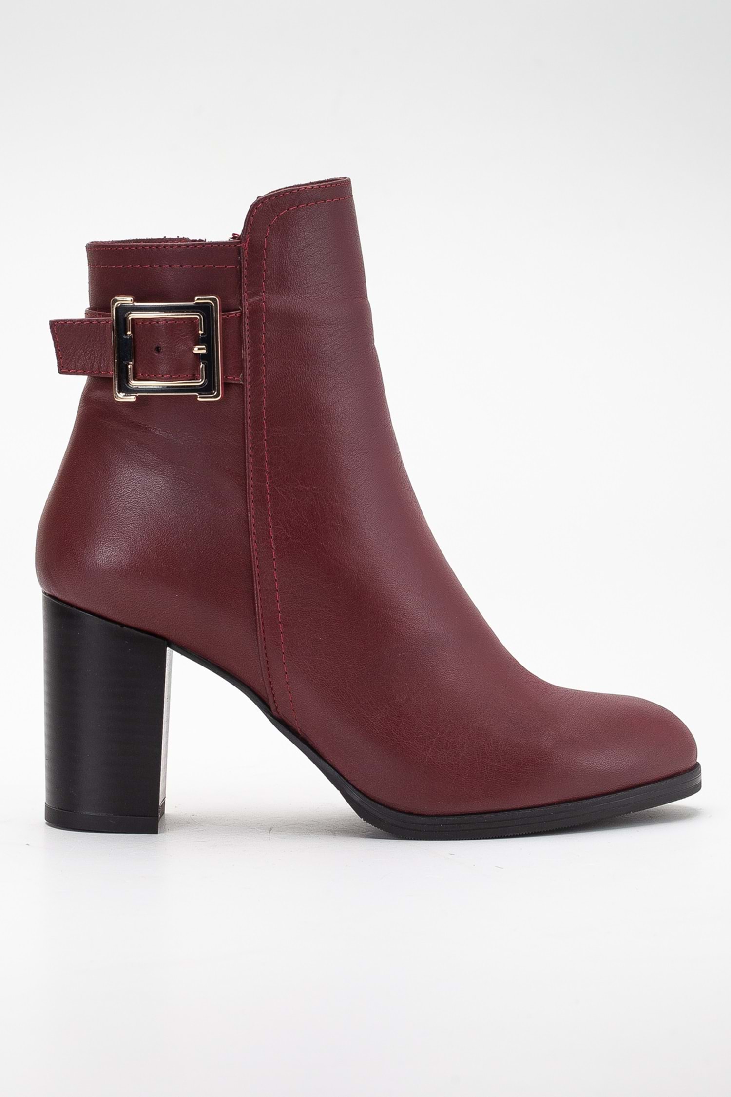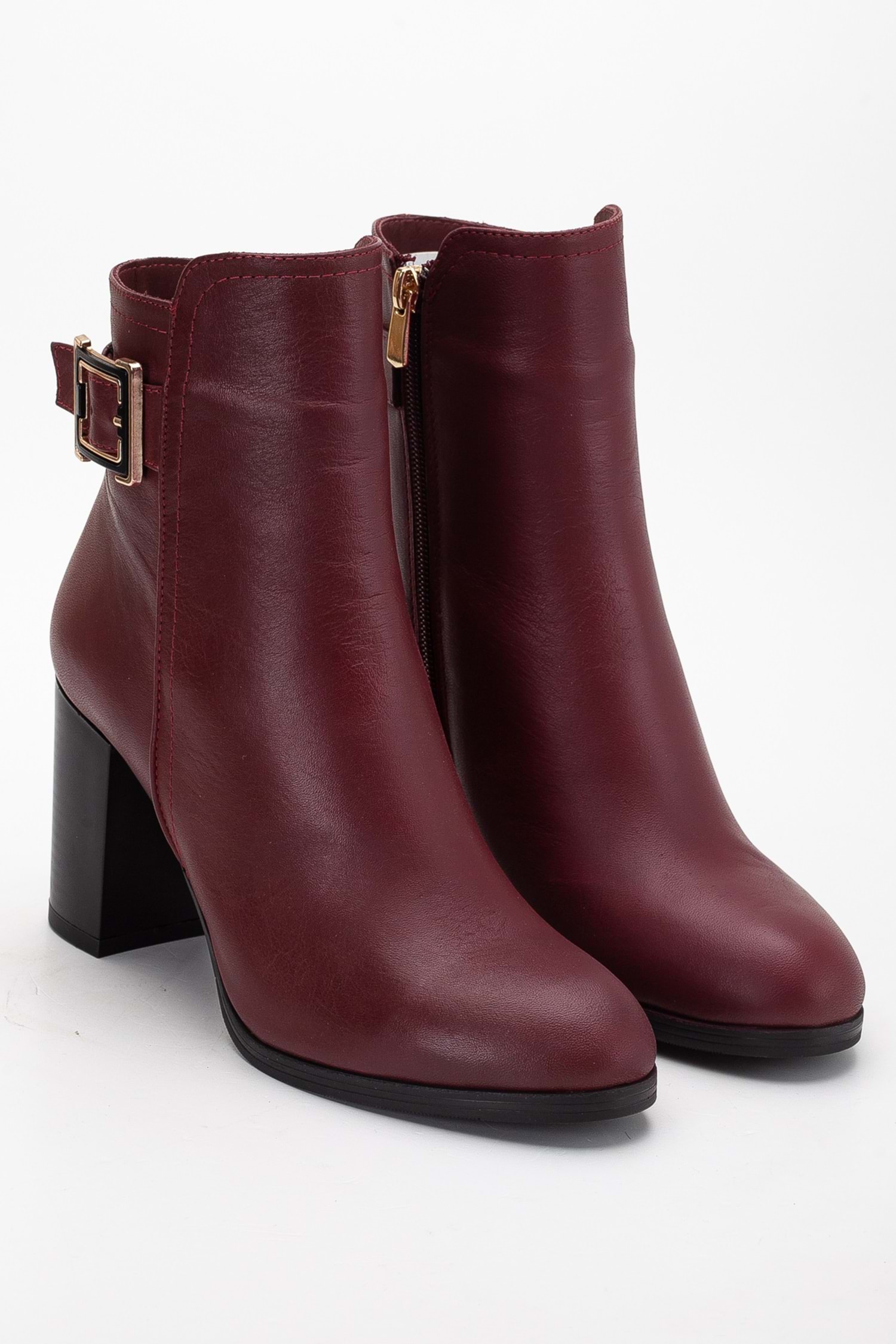 Kadın Hakiki Deri Tokalı Topuklu Bot - Bordo