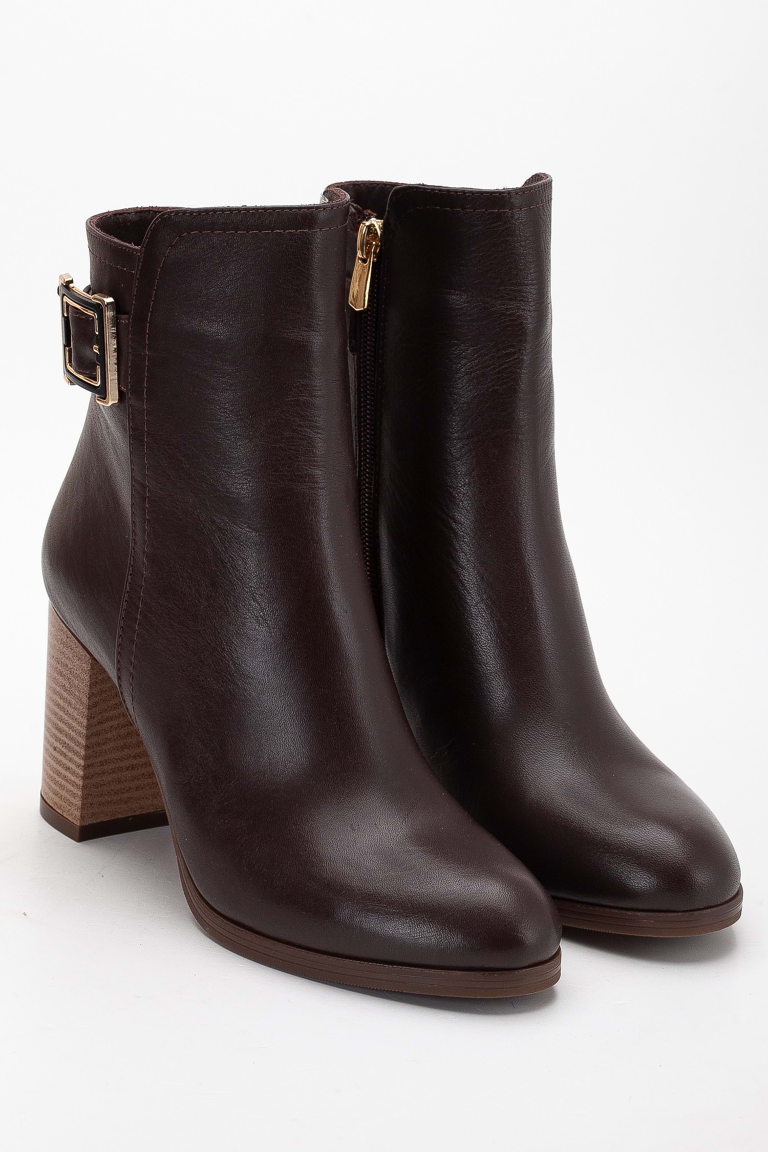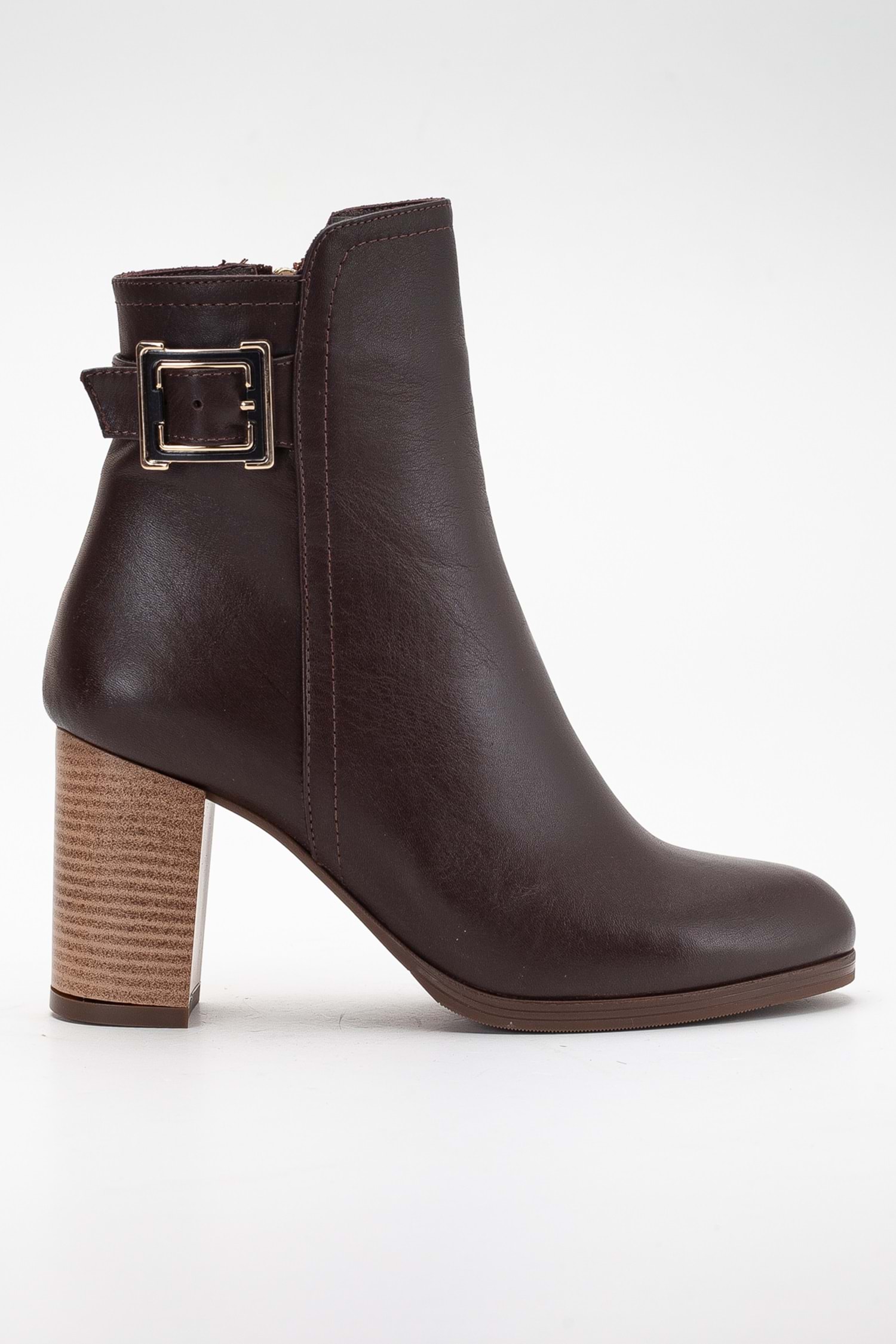Kadın Hakiki Deri Tokalı Topuklu Bot - Kahve