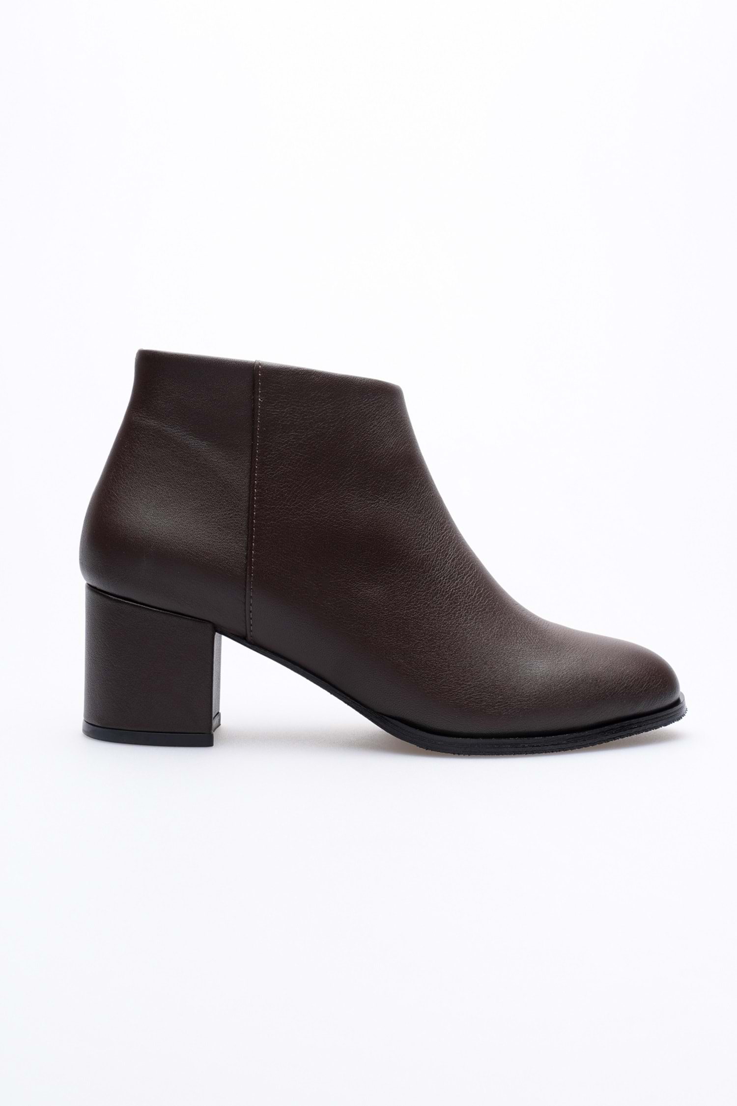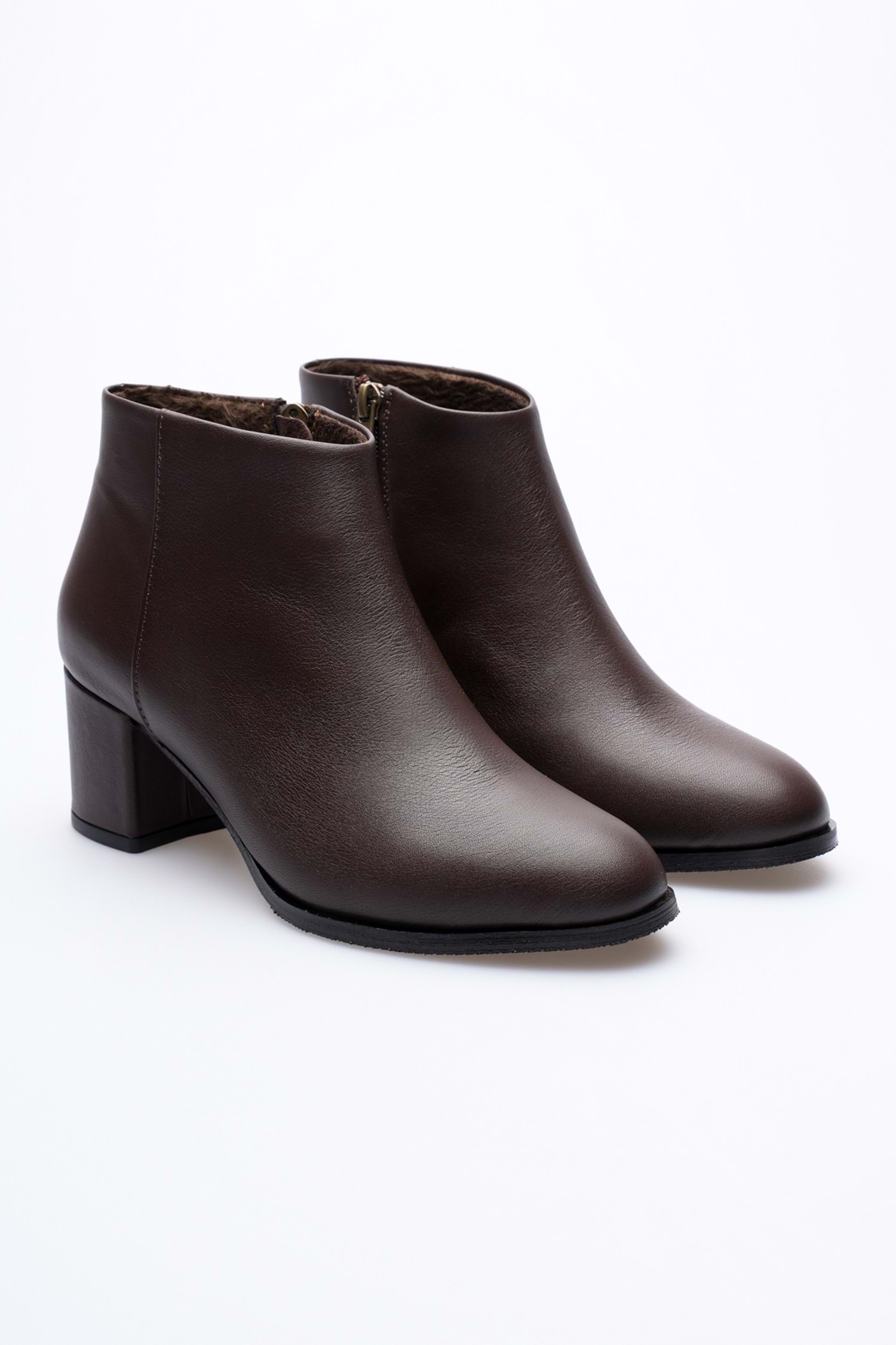 Kadın Hakiki Deri Topuklu Bot - Kahve