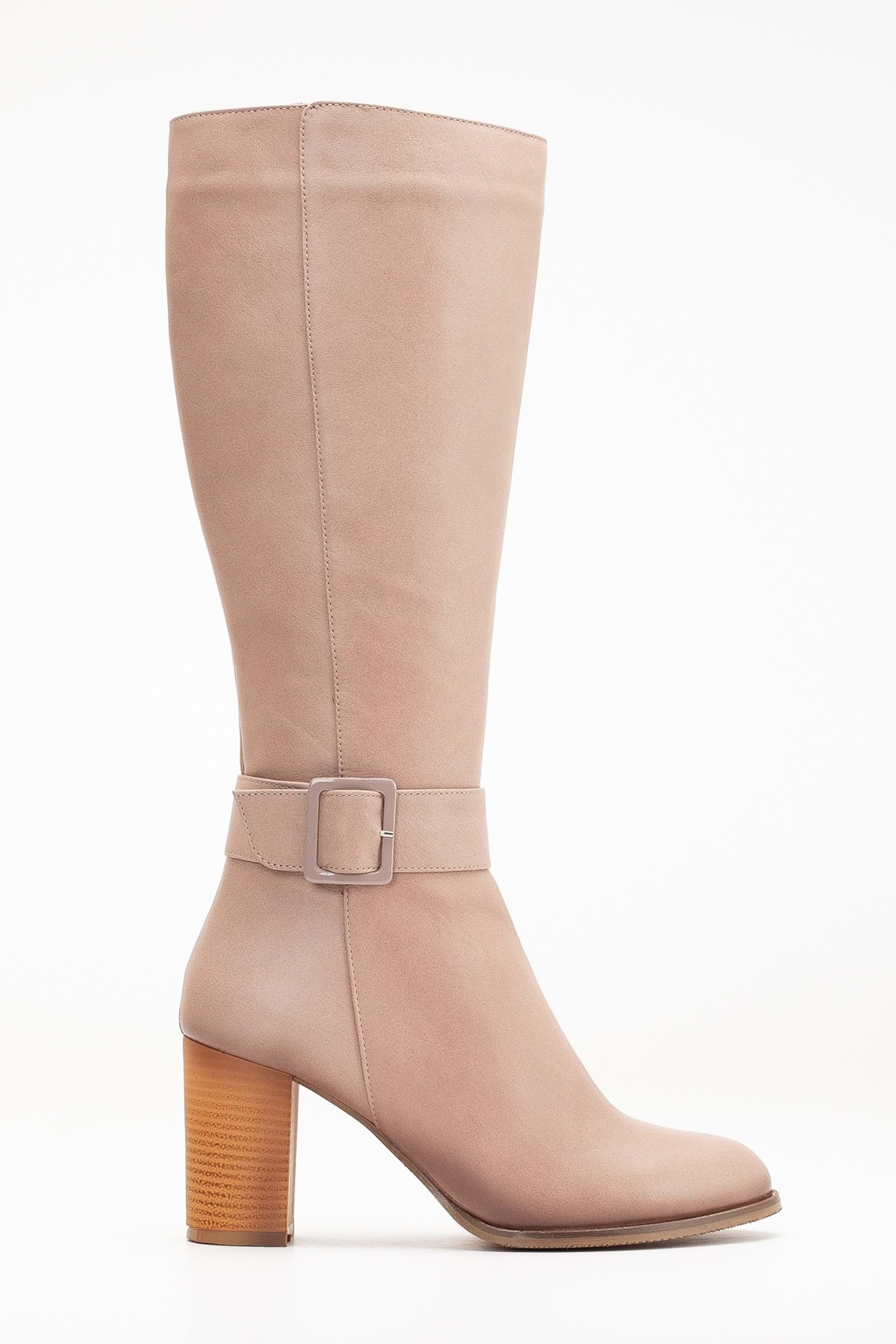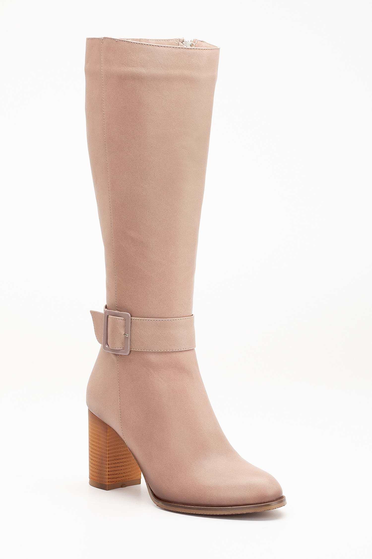 Kadın Hakiki Deri Toka Detaylı Topuklu Çizme - Taş