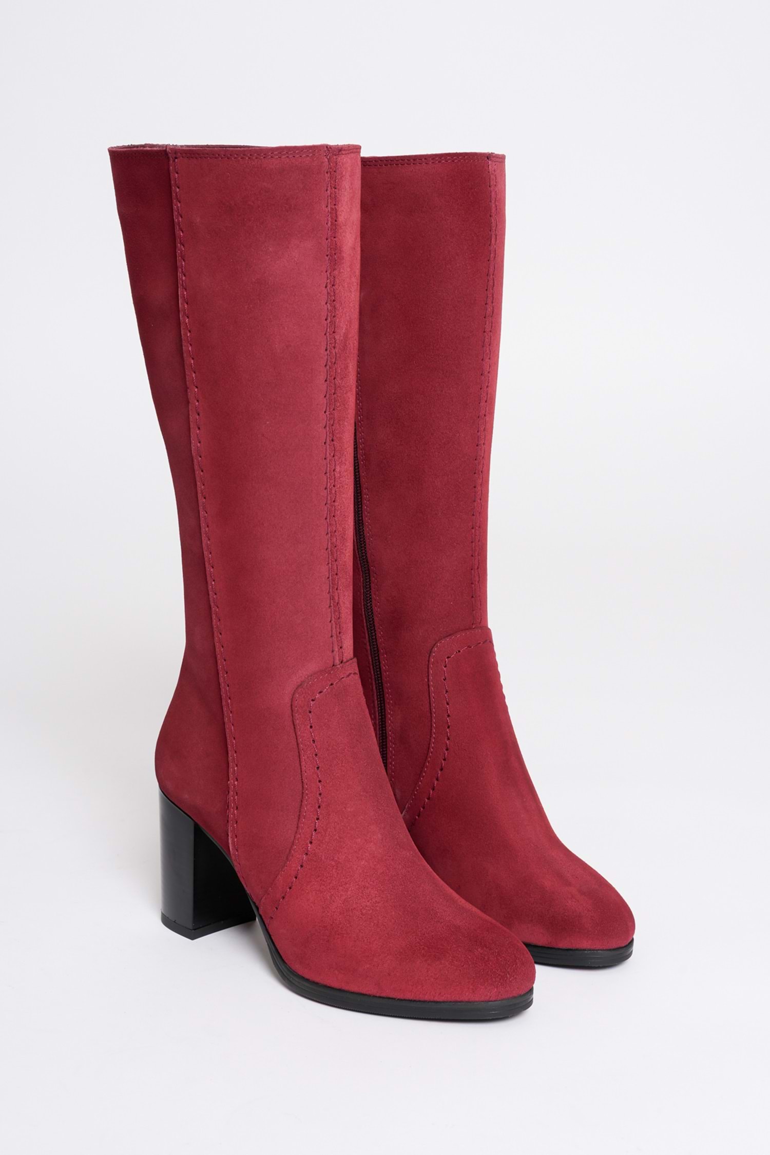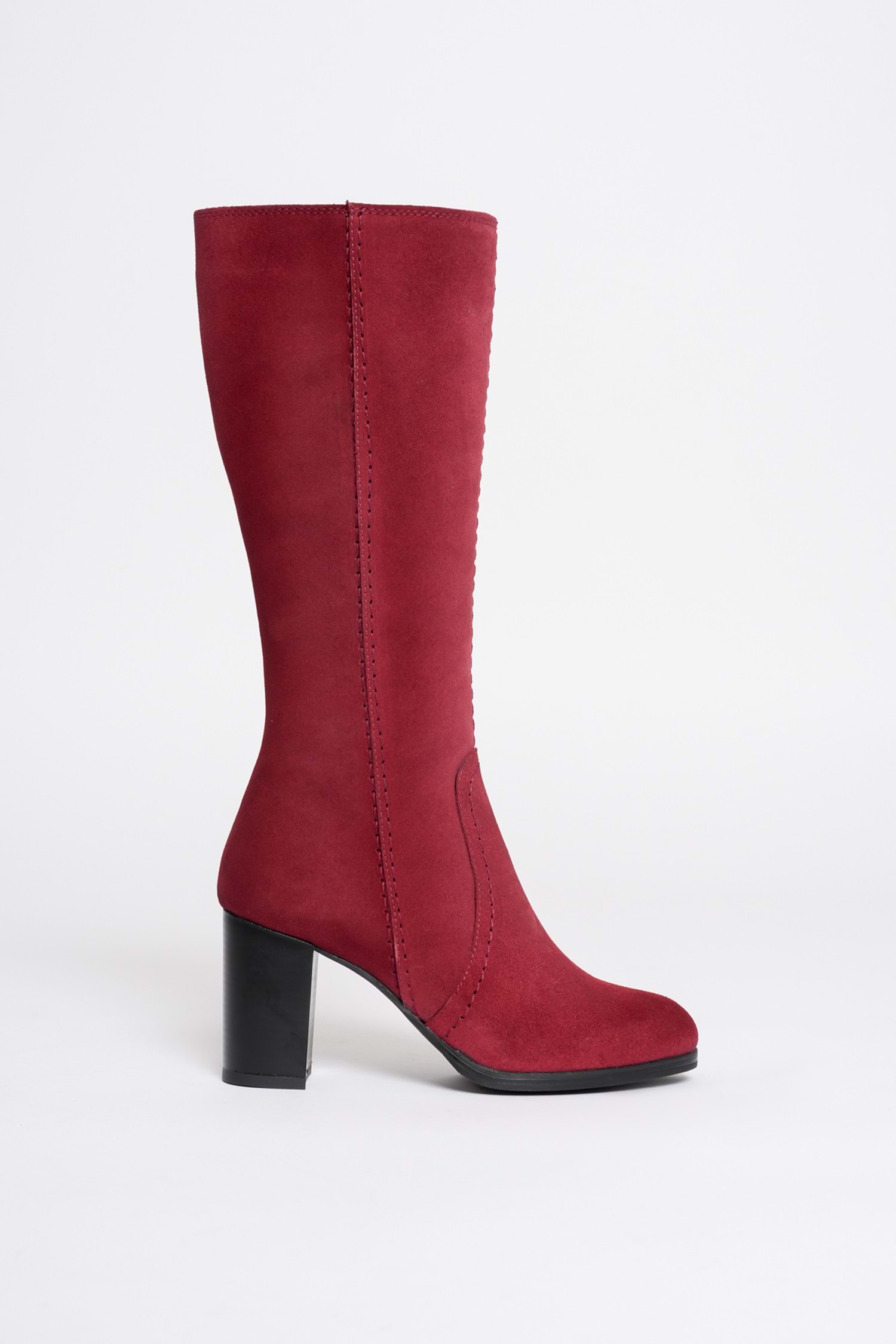 Kadın Hakiki Deri Topuklu Süet Çizme - Bordo