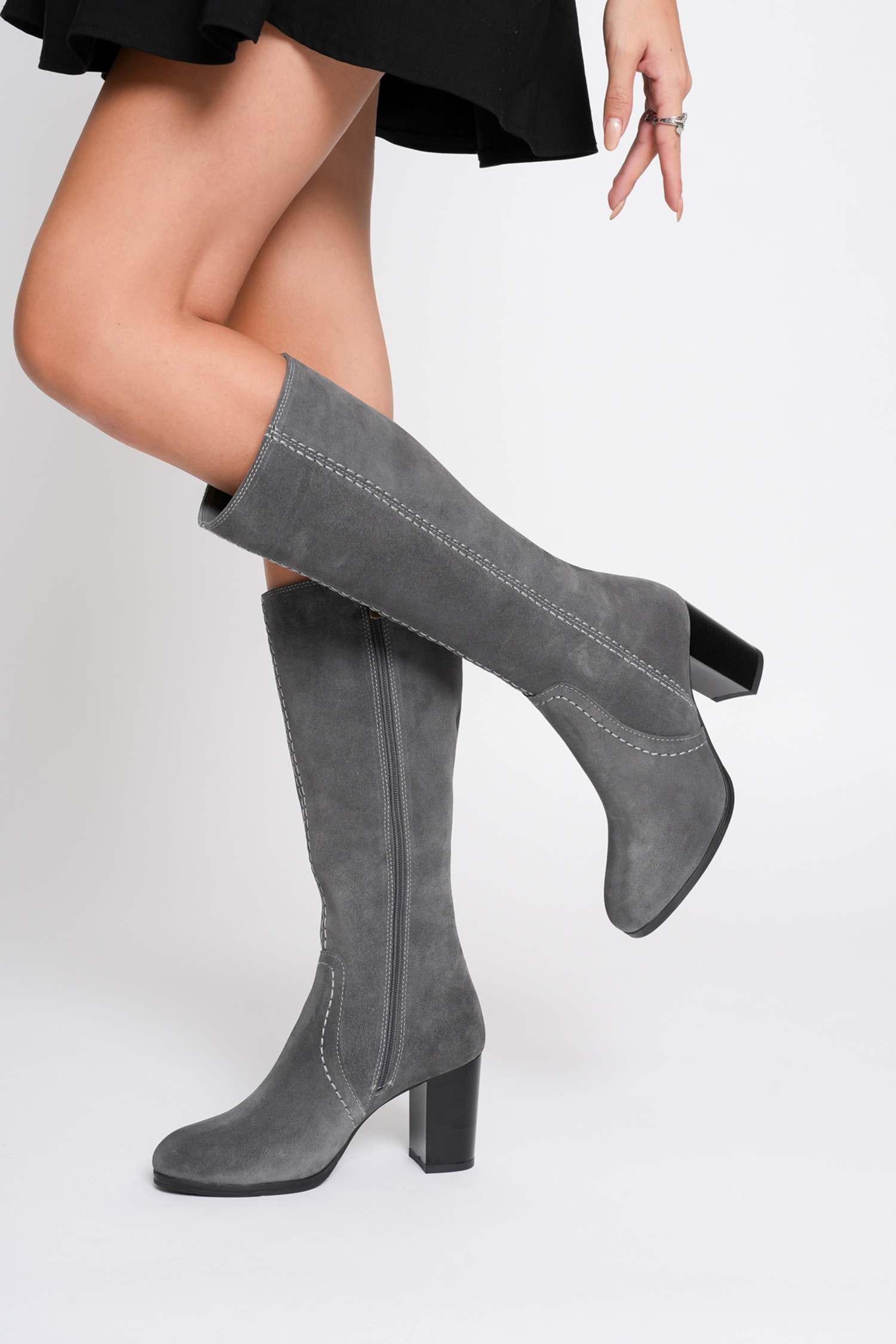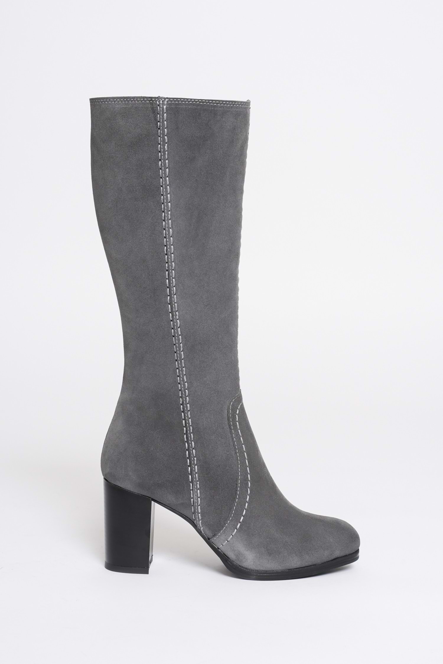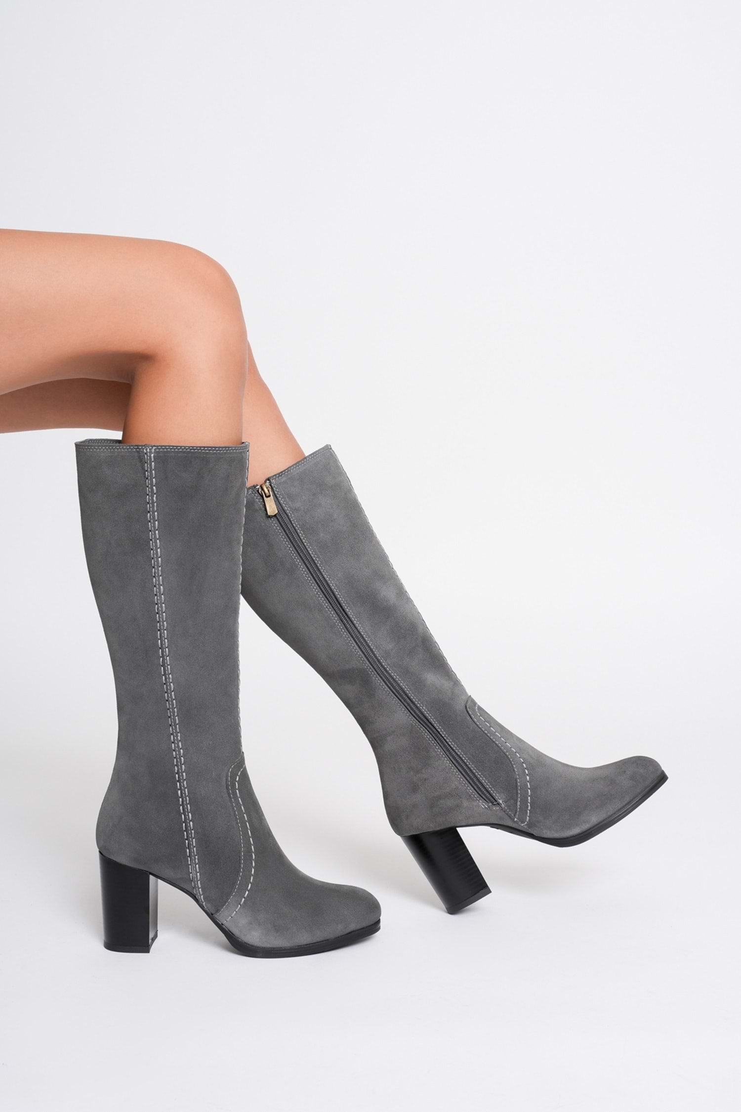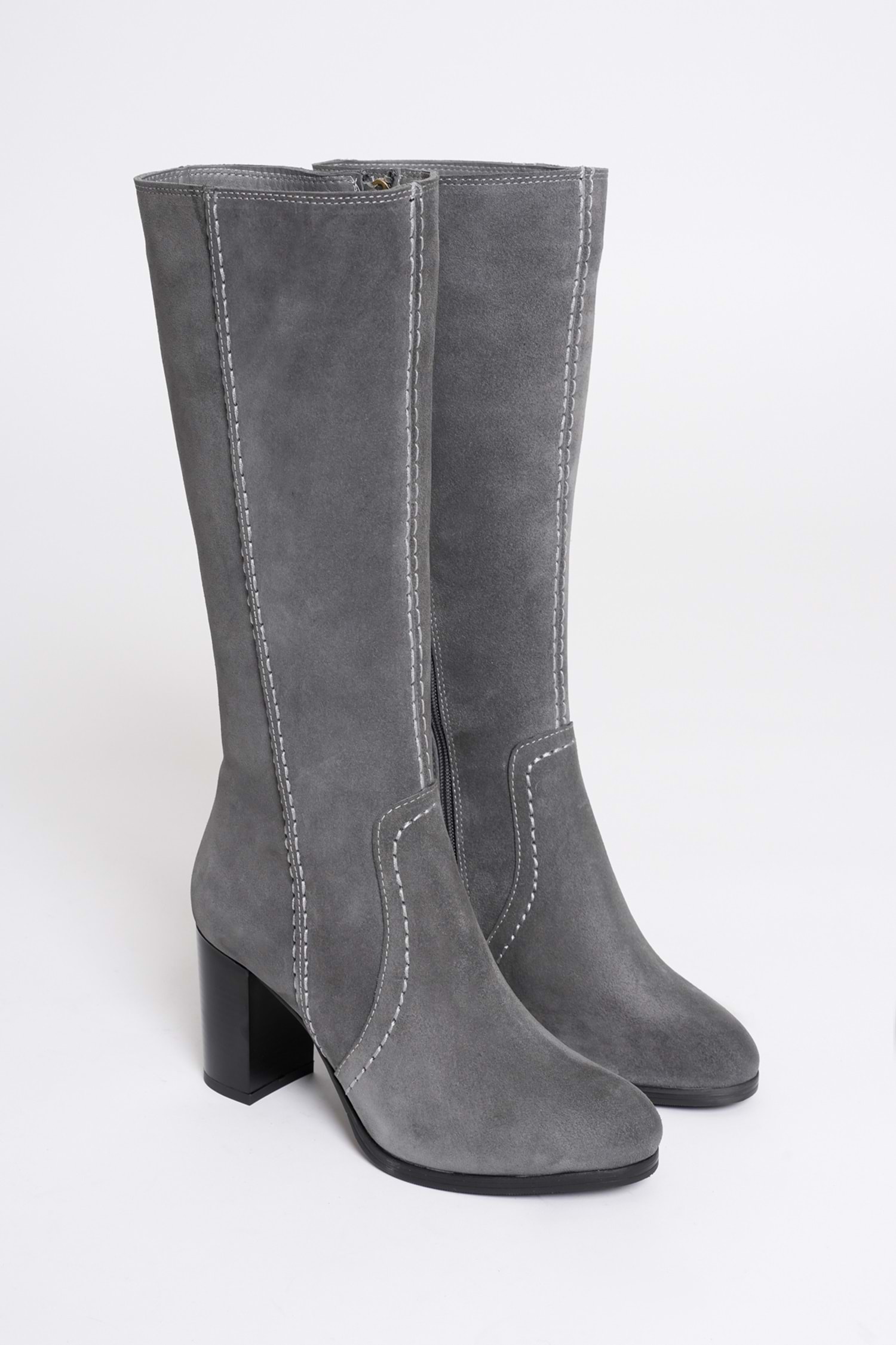 Kadın Hakiki Deri Topuklu Süet Çizme - Gri
