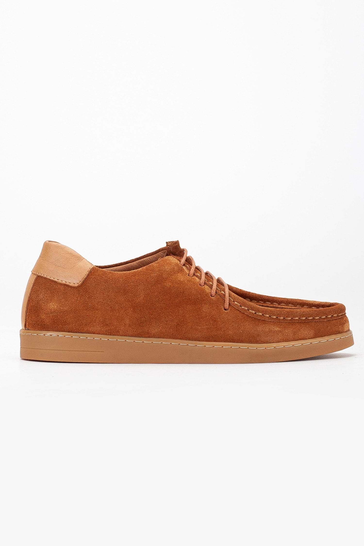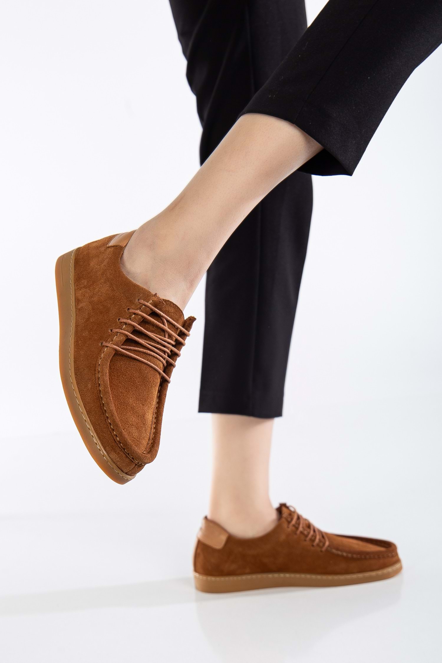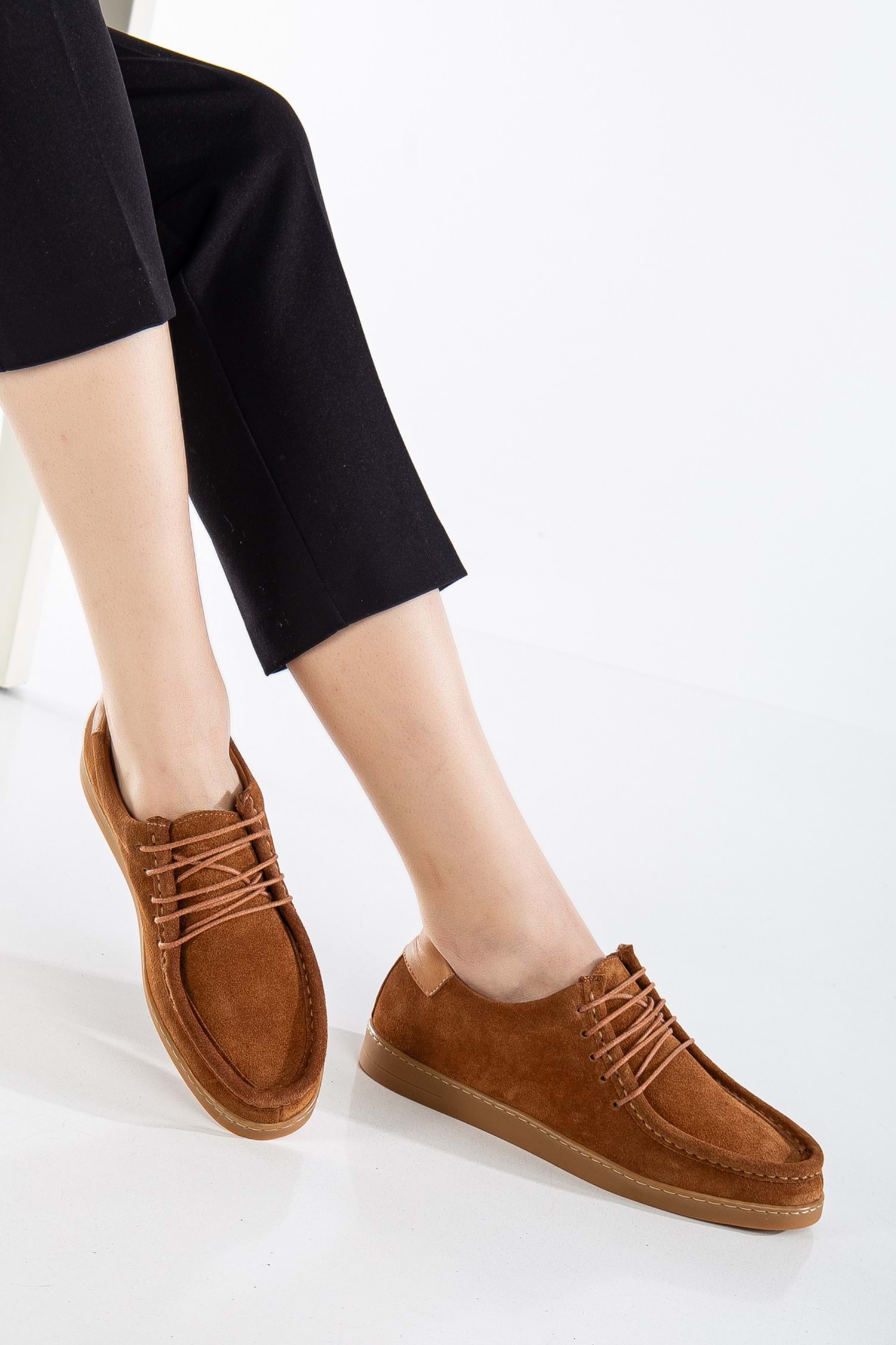 Kadın Hakiki Deri Casual Bağcıklı Ayakkabı - Taba Süet