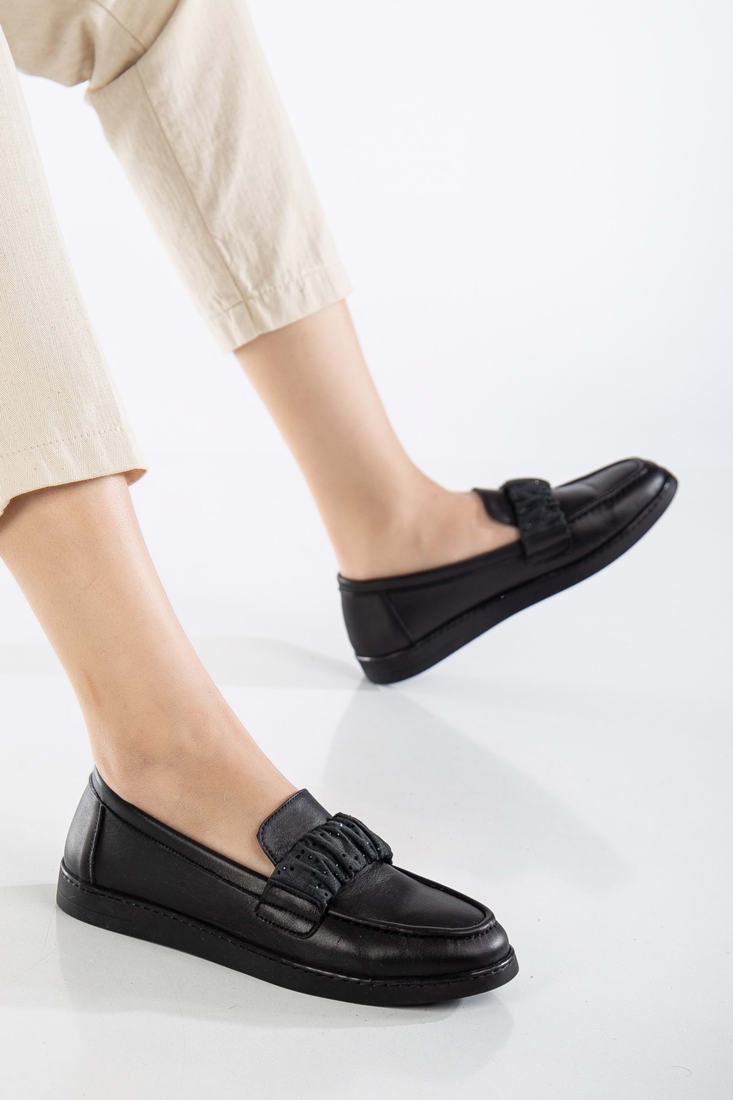 Kadın Hakiki Deri Günlük Rahat Ayakkabı - Siyah