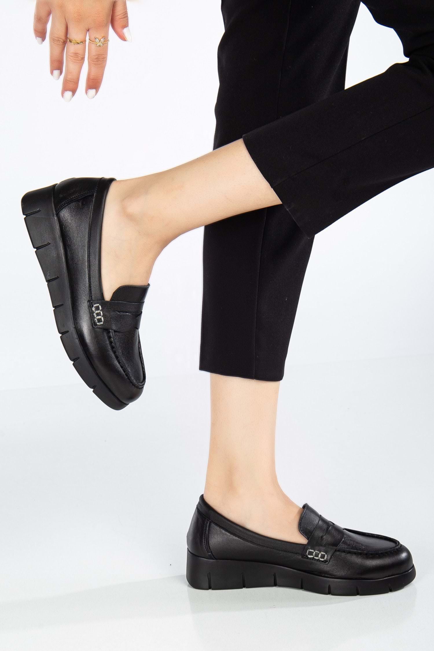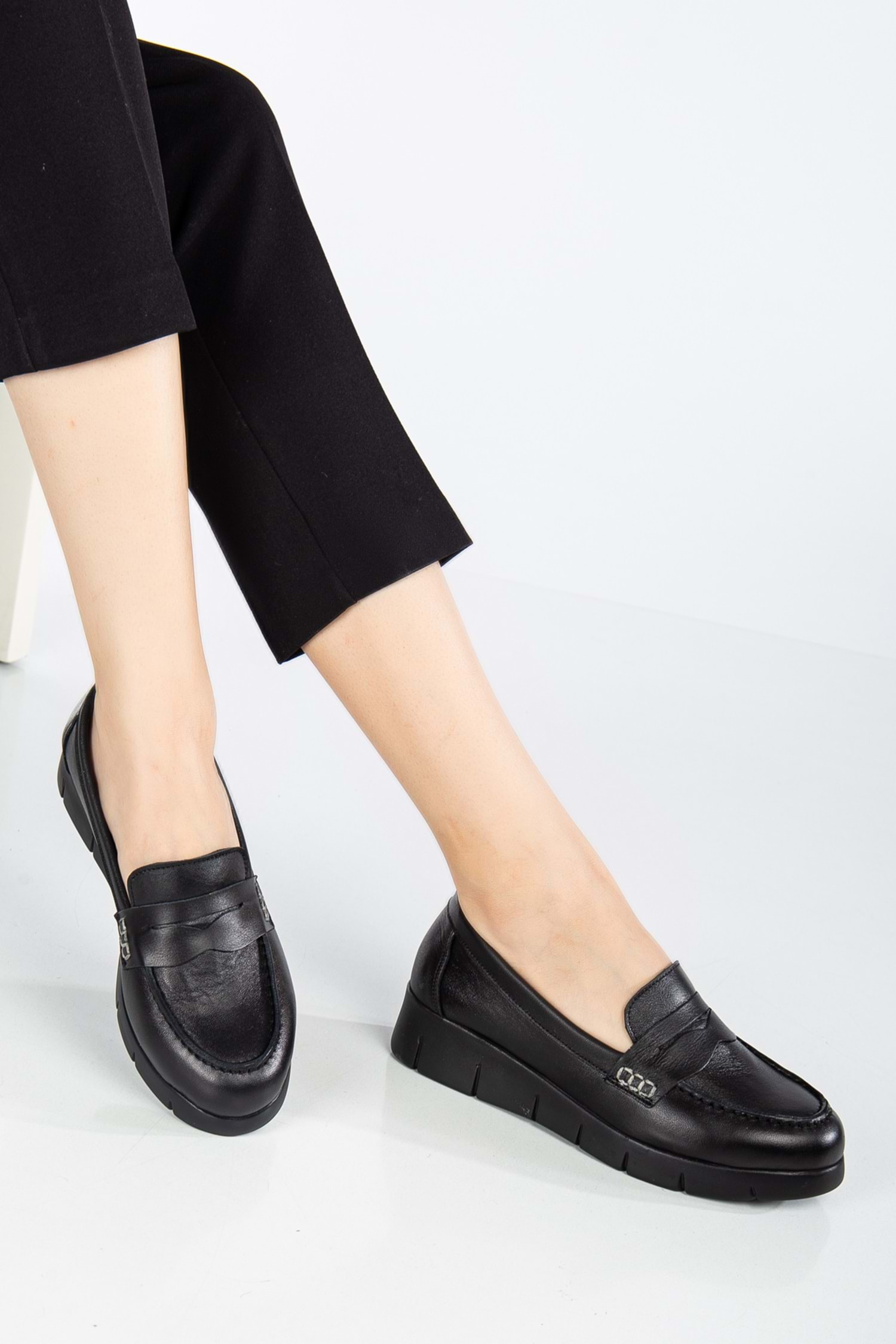 Kadın Hakiki Deri Rahat Günlük Ayakkabı - Siyah