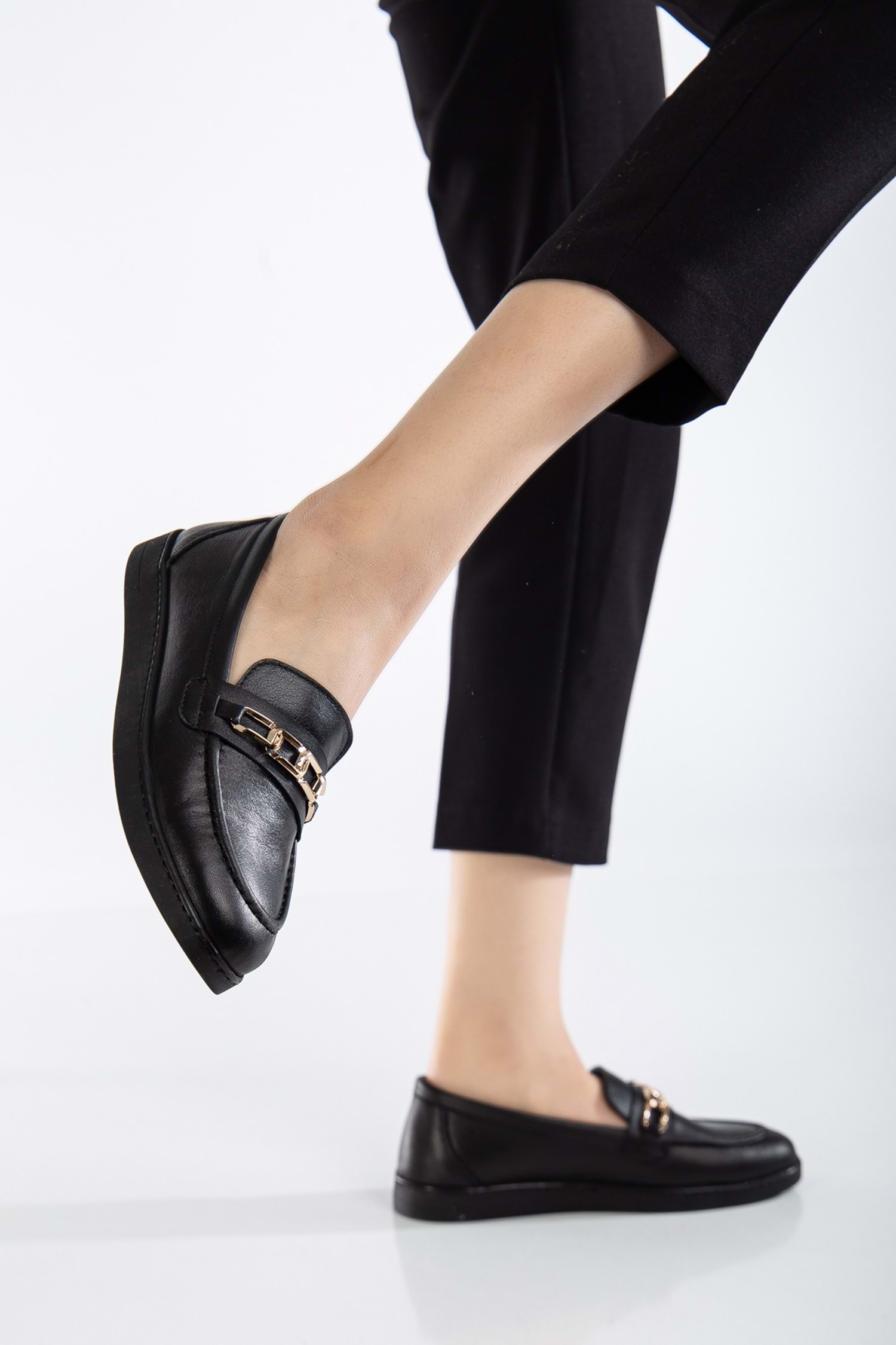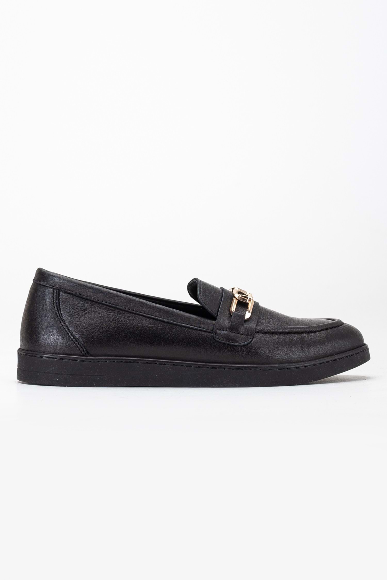 Kadın Hakiki Deri Tokalı Günlük Ayakkabı - Siyah