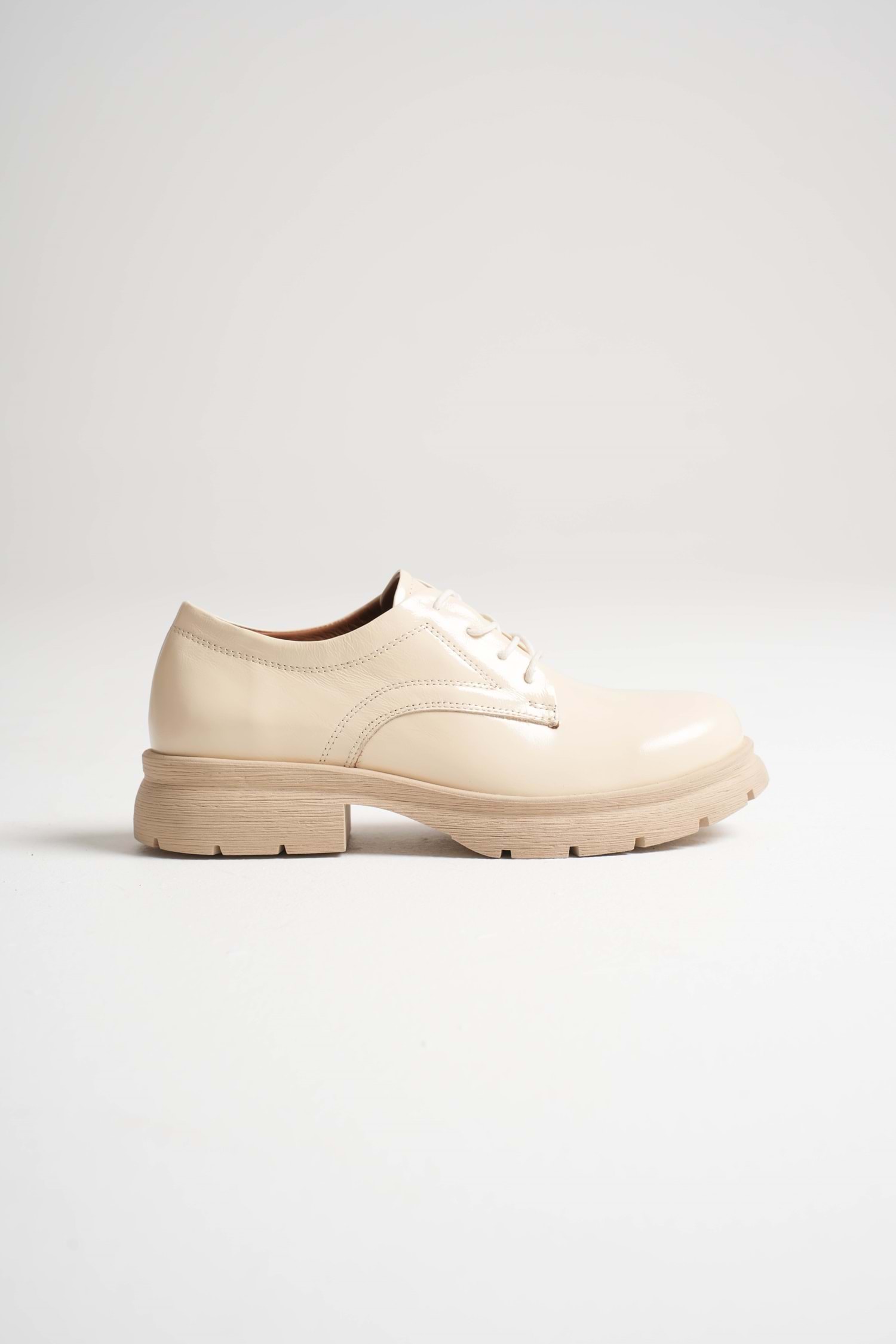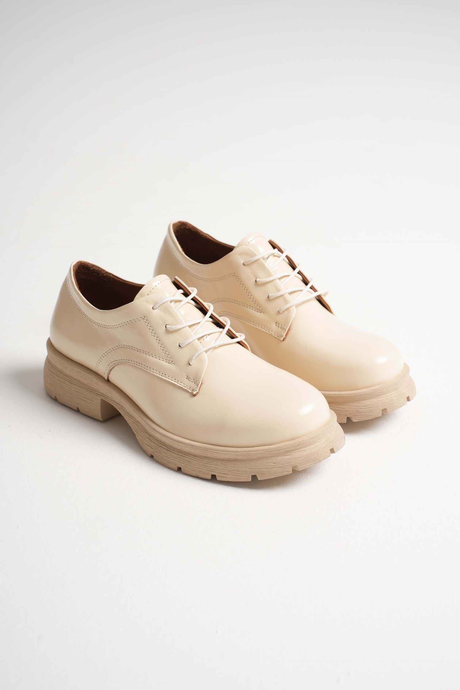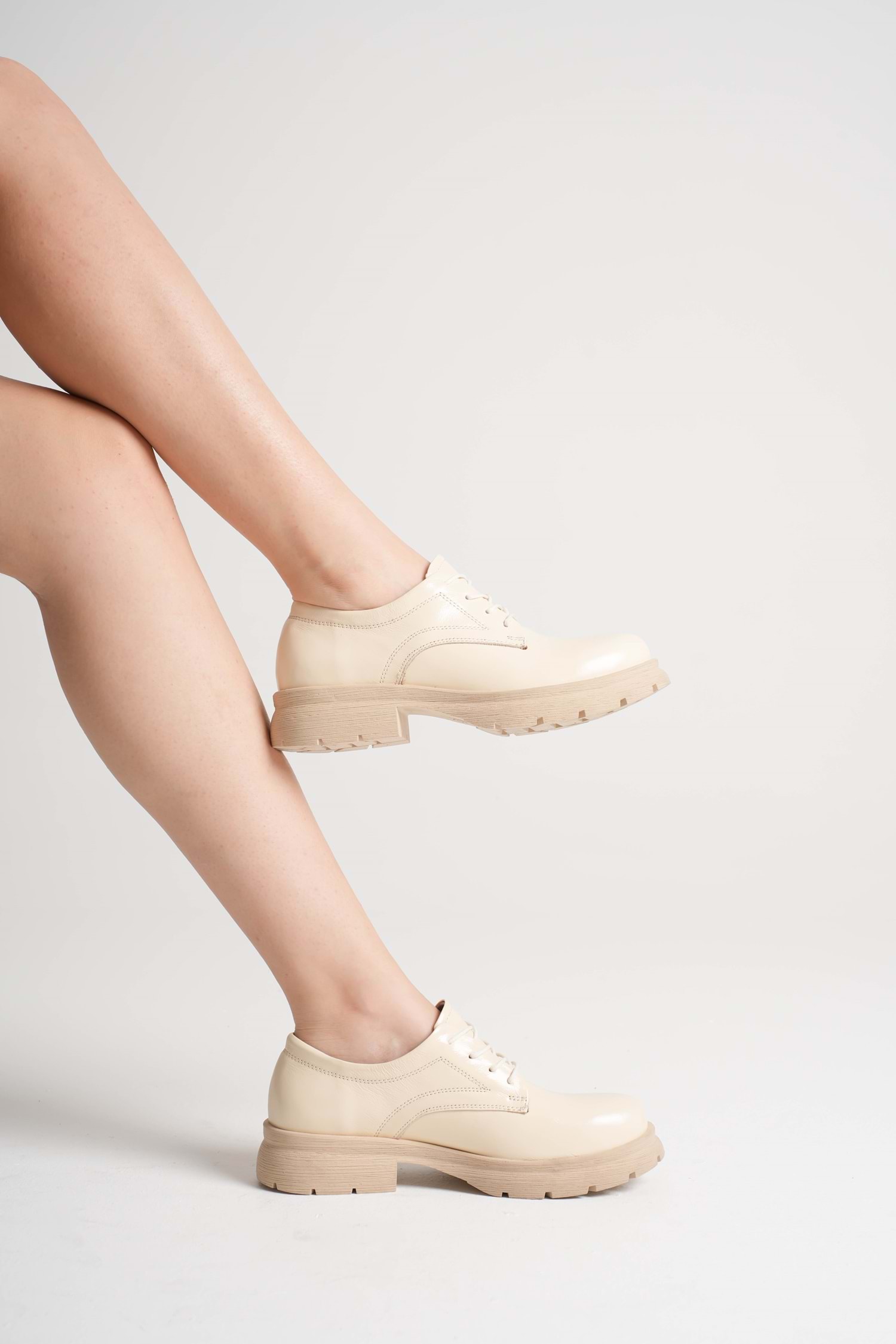 Kadın Hakiki Deri Bağcıklı Oxford Ayakkabı - Bej Rugan
