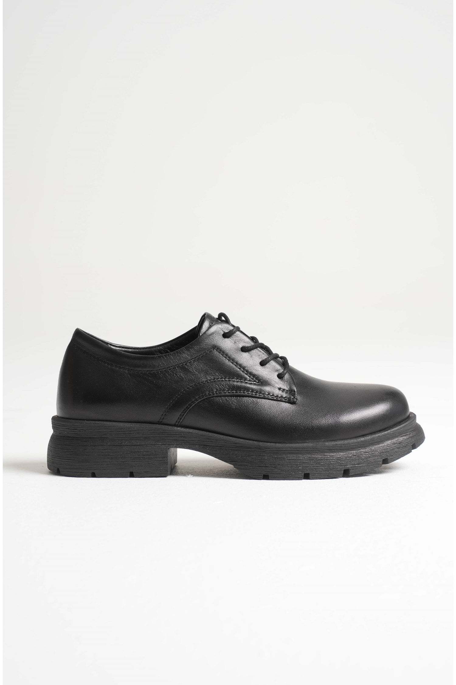 Kadın Hakiki Deri Bağcıklı Oxford Ayakkabı - Siyah