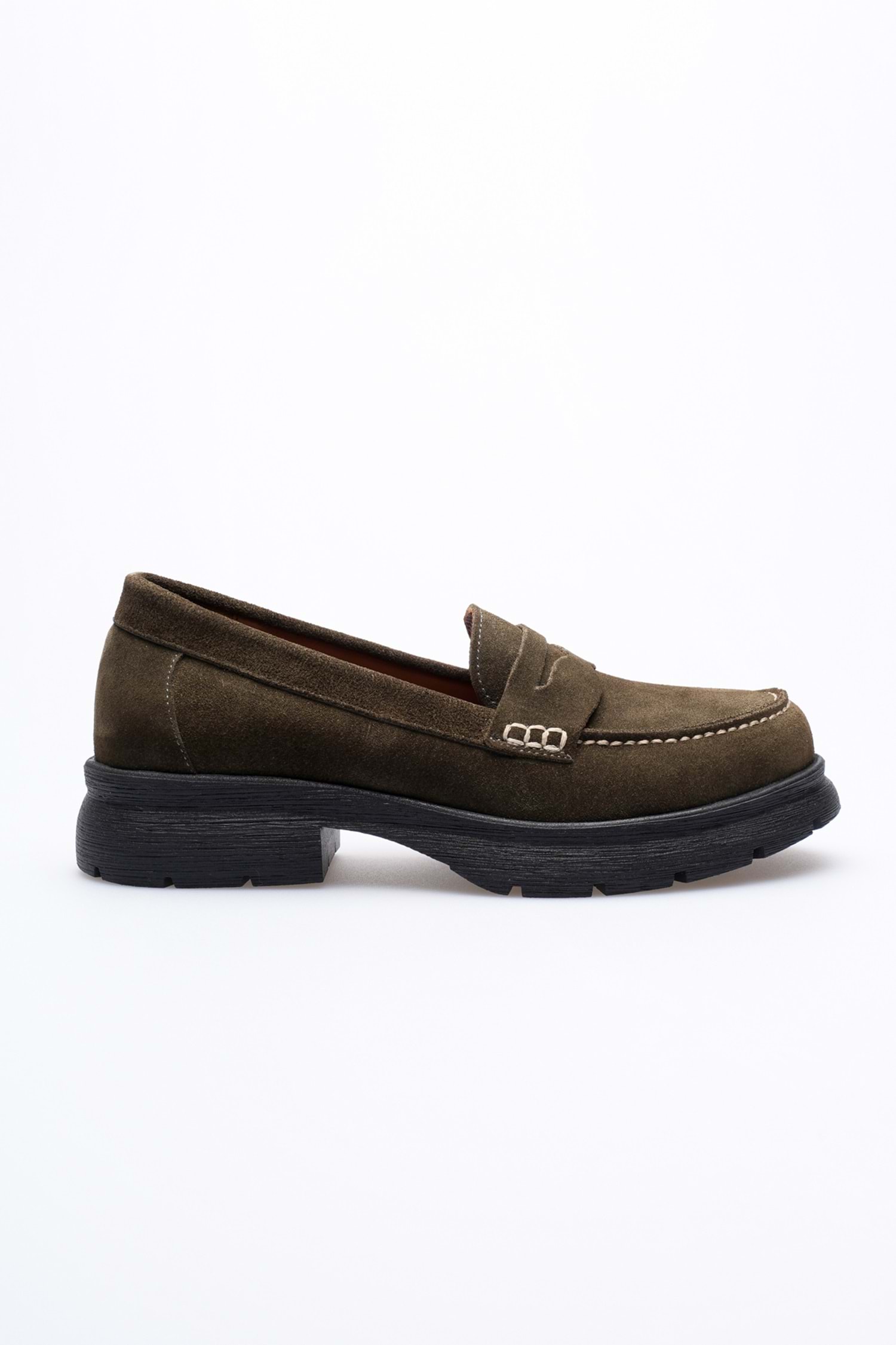 Kadın Hakiki Deri Light Tabanlı Saraçlı Rahat Loafer Ayakkabı - Yeşil Süet