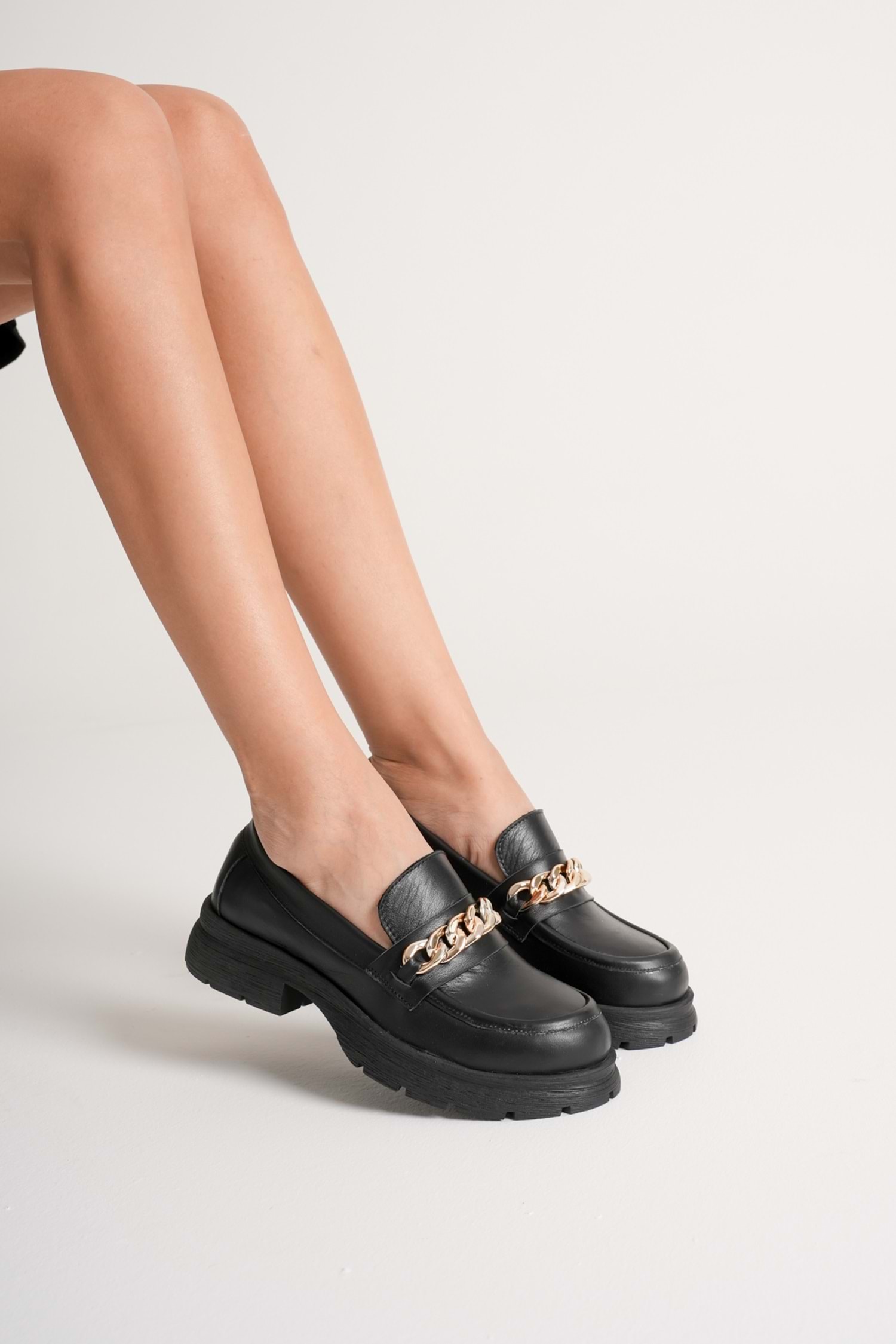 Kadın Hakiki Deri Light Tabanlı Tokalı Rahat Loafer Ayakkabı - Siyah