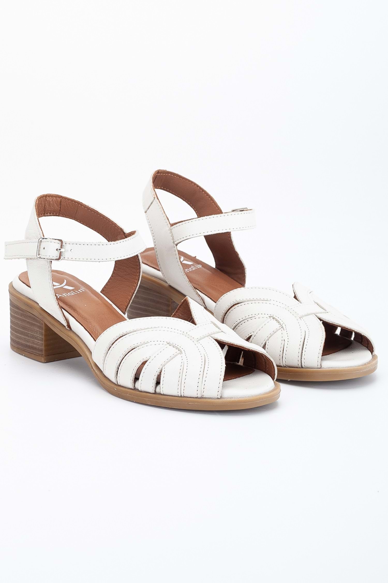 Kadın Hakiki Deri Bilekten Bağlı Sandalet - Krem