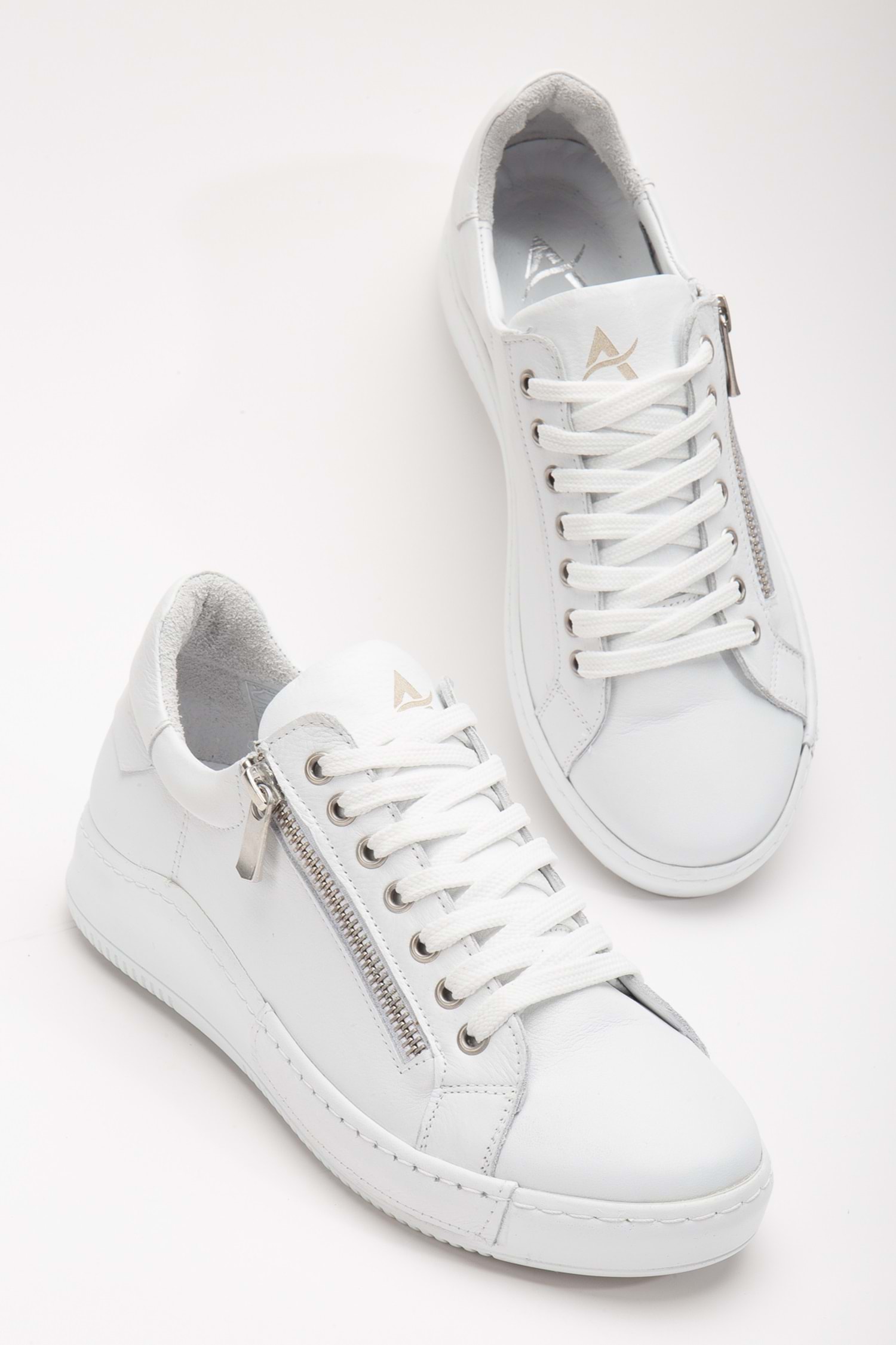 Kadın Hakiki Deri Fermuarlı Spor Ayakkabı Beyaz