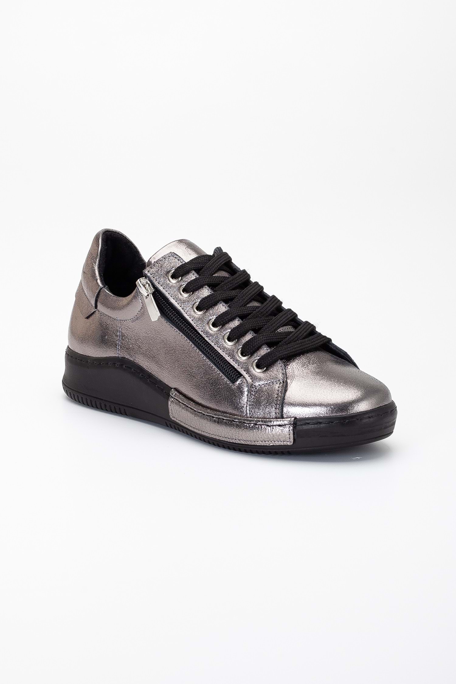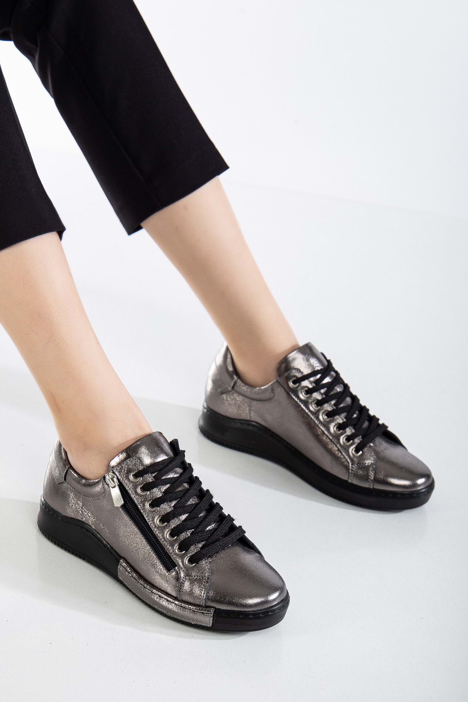 Kadın Hakiki Deri Fermuarlı Spor Ayakkabı - Platin