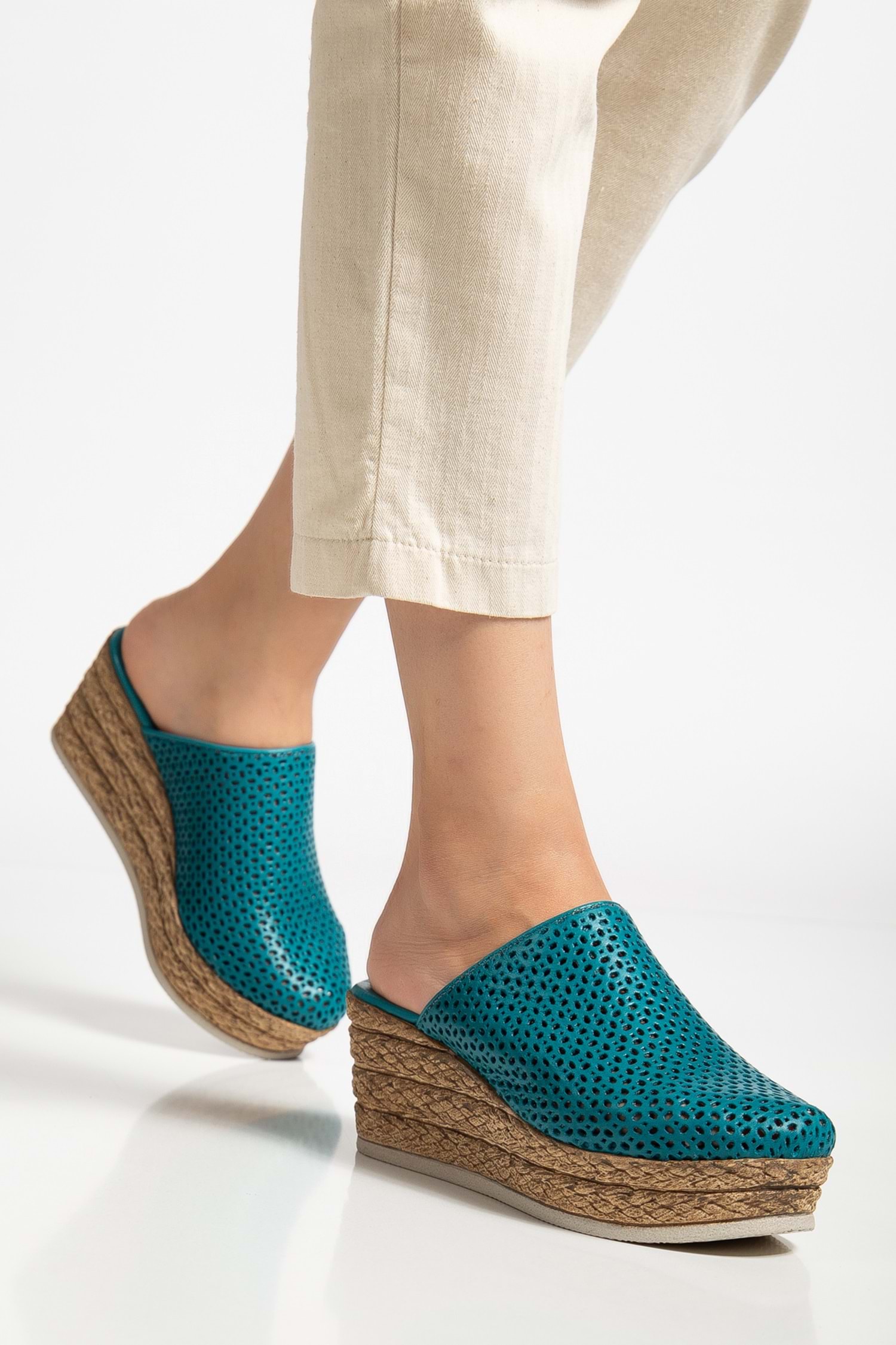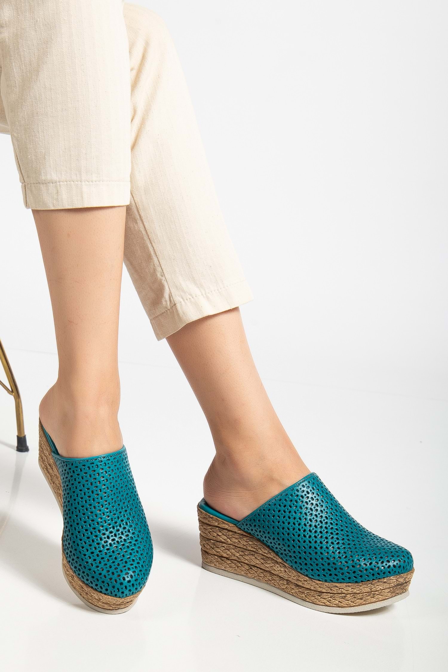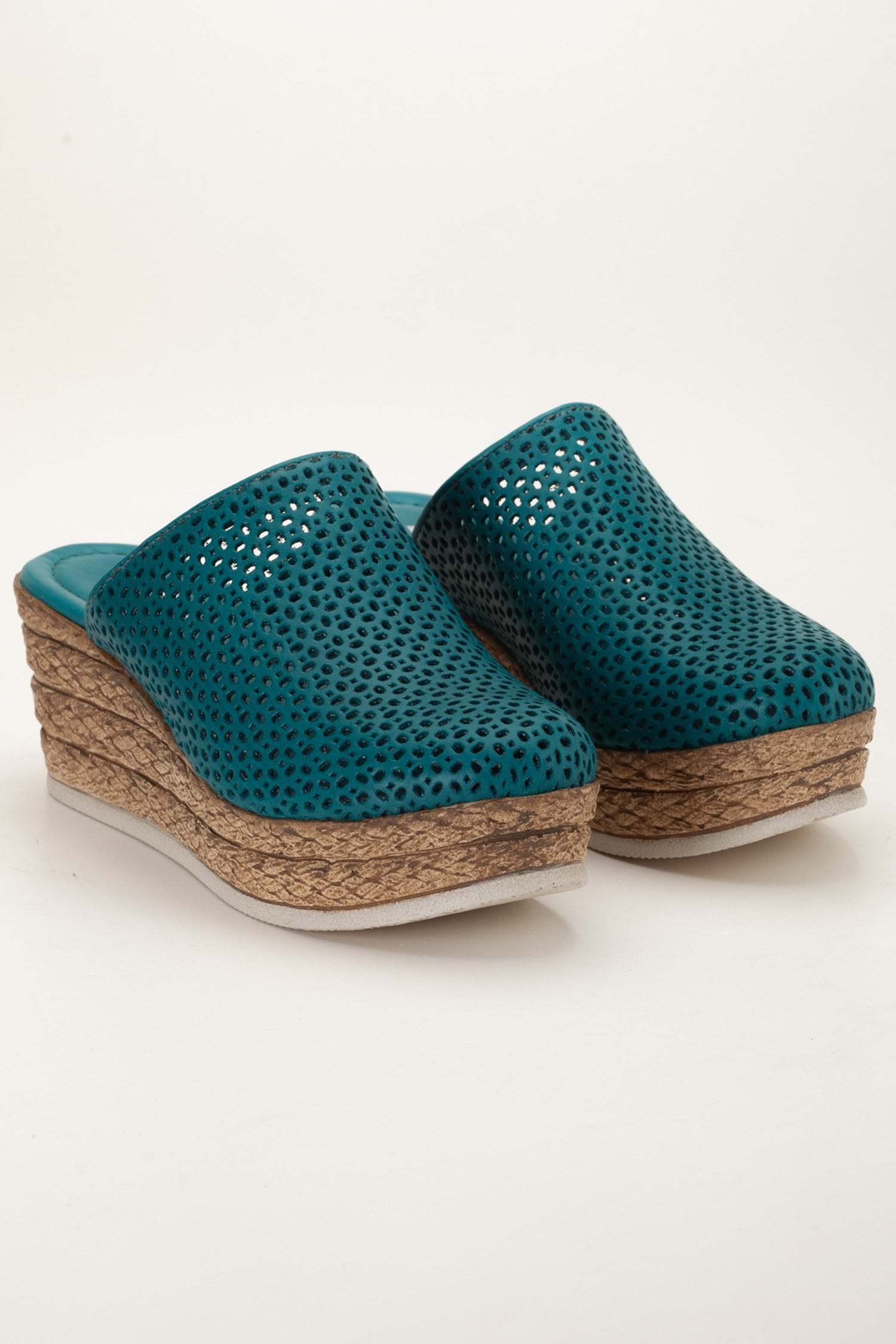Kadın Hakiki Deri Burnu Kapalı Dolgu Topuk Terlik - Ocean Depths