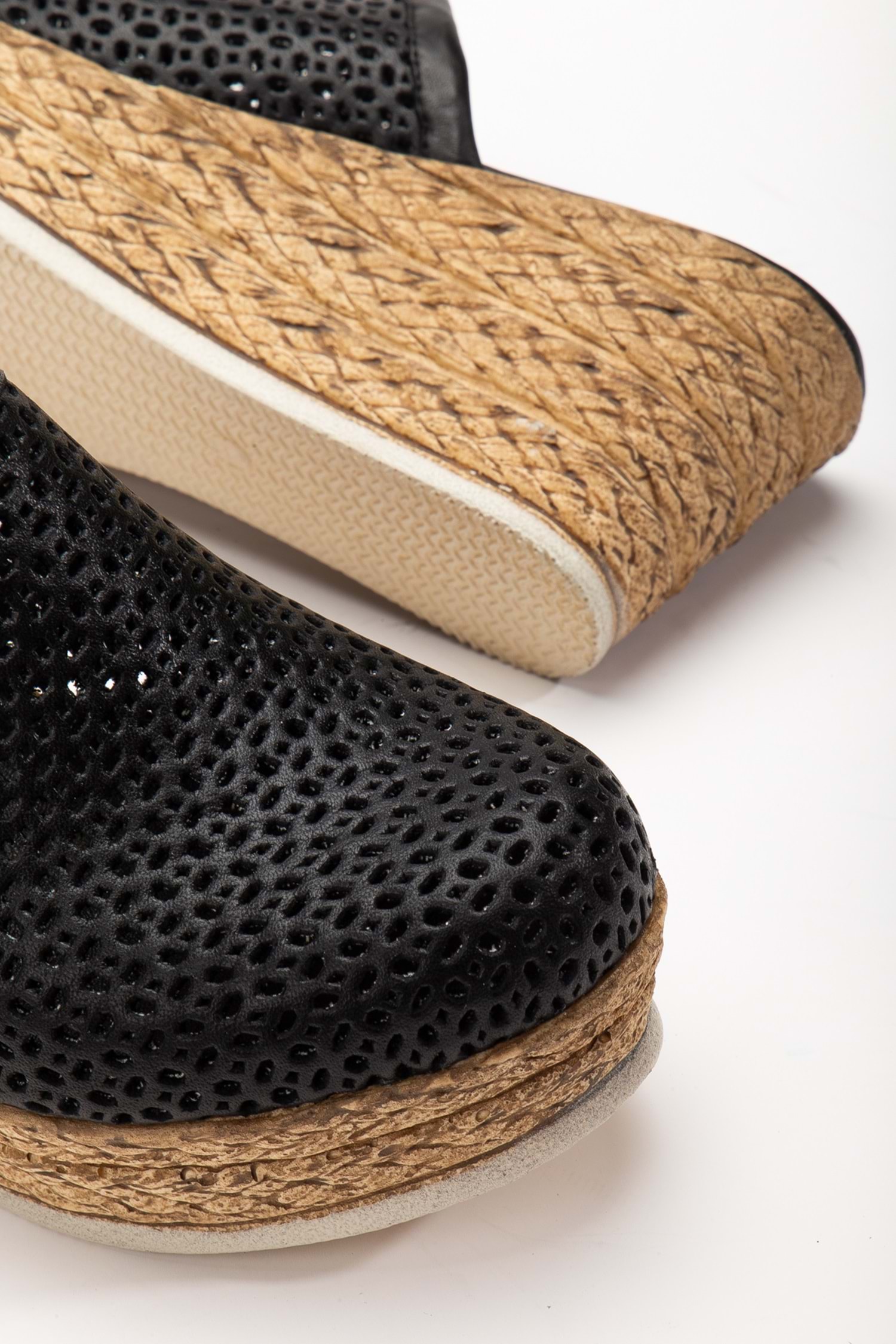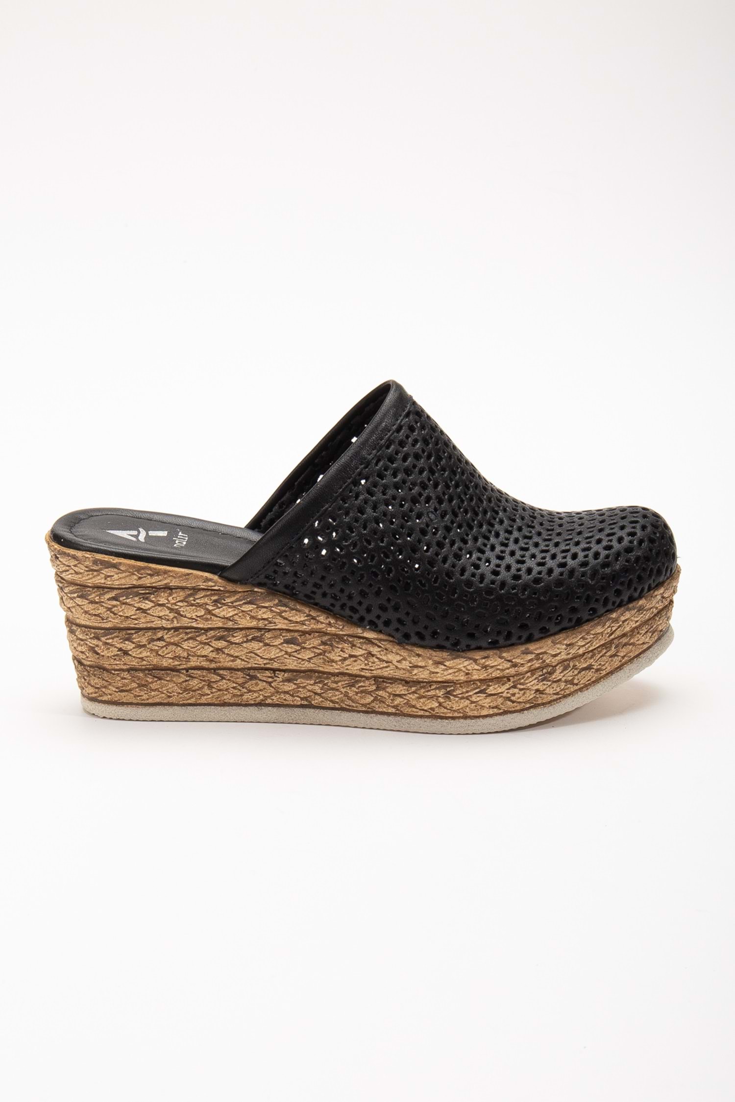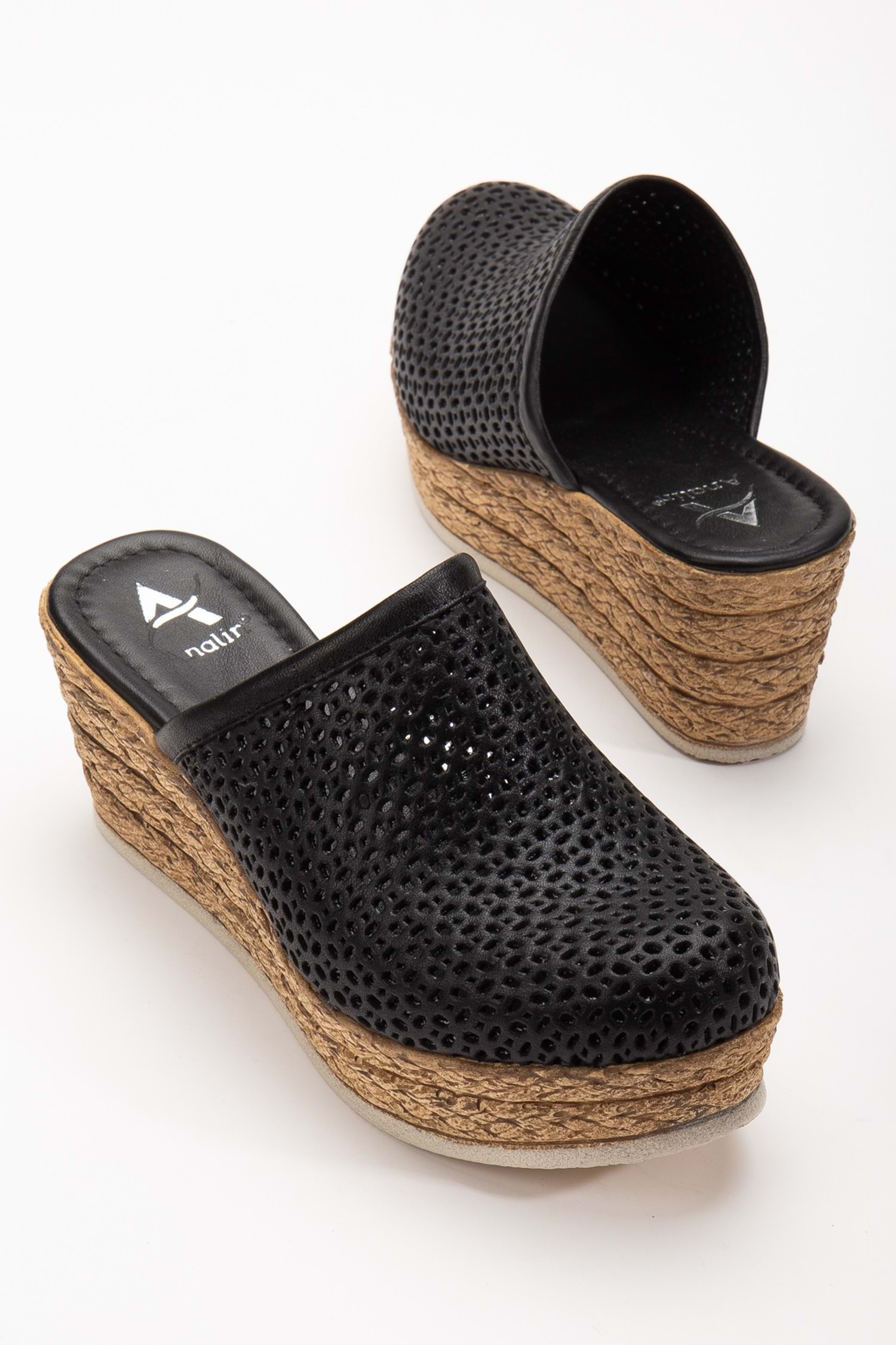 Kadın Hakiki Deri Burnu Kapalı Dolgu Topuk Terlik Siyah