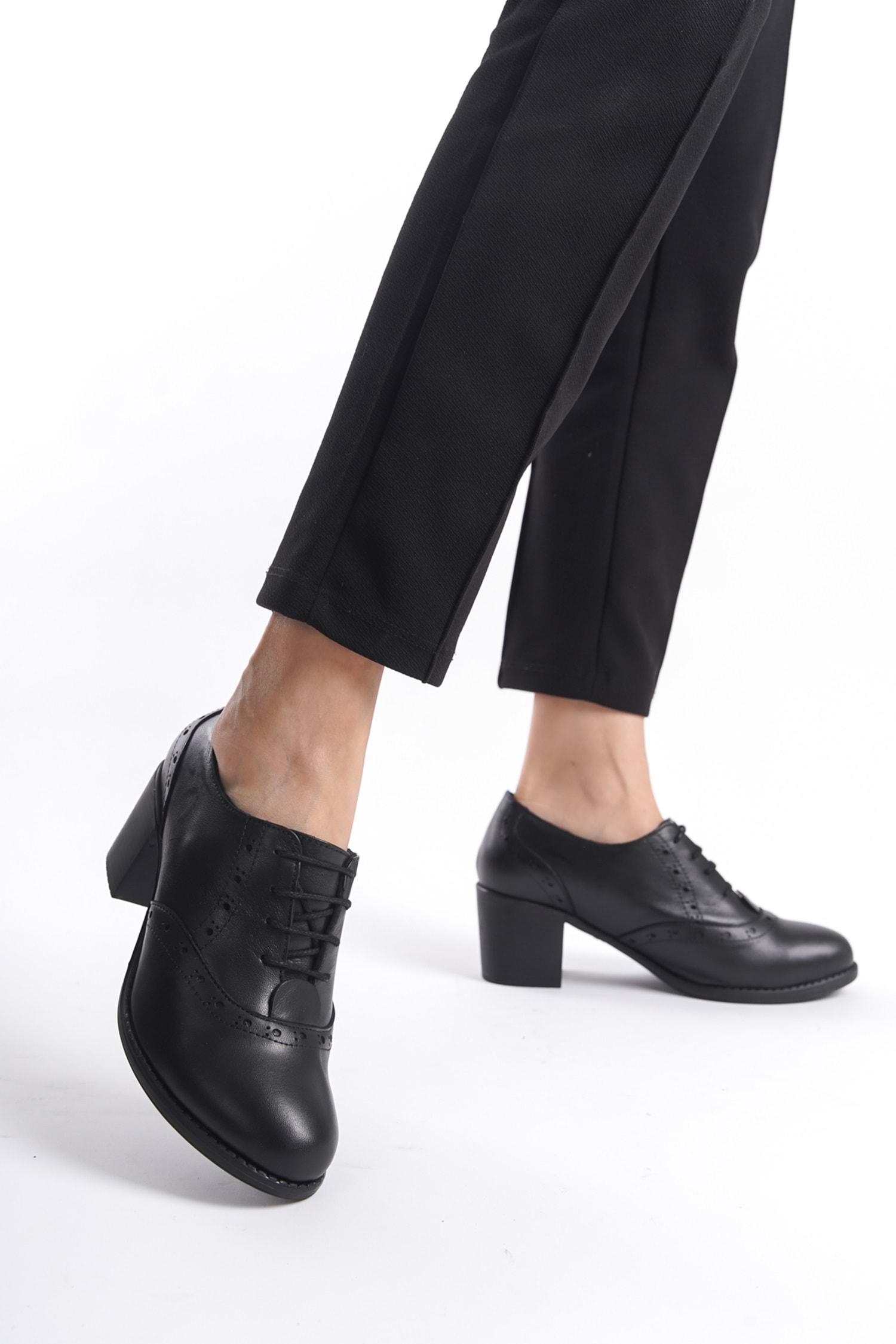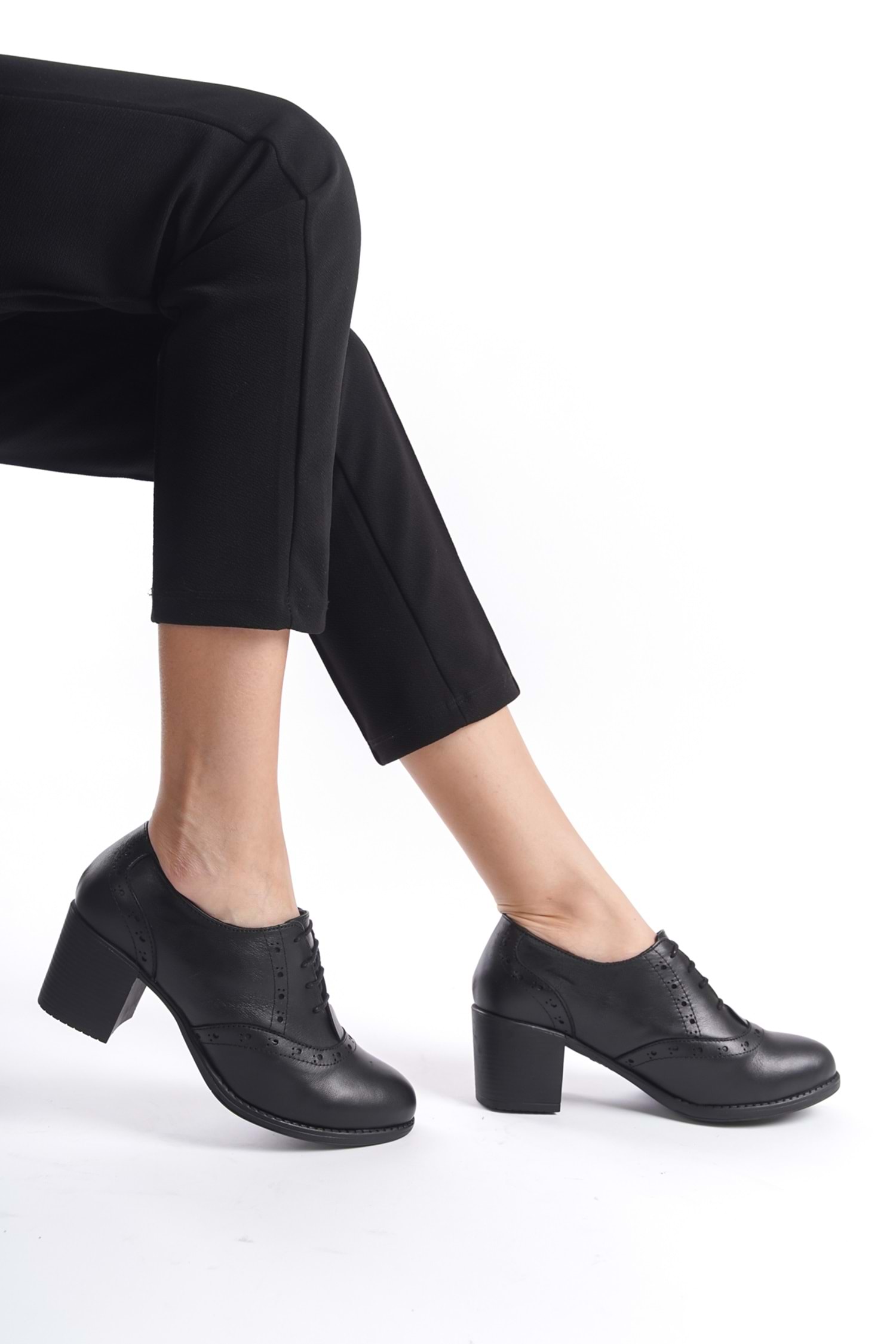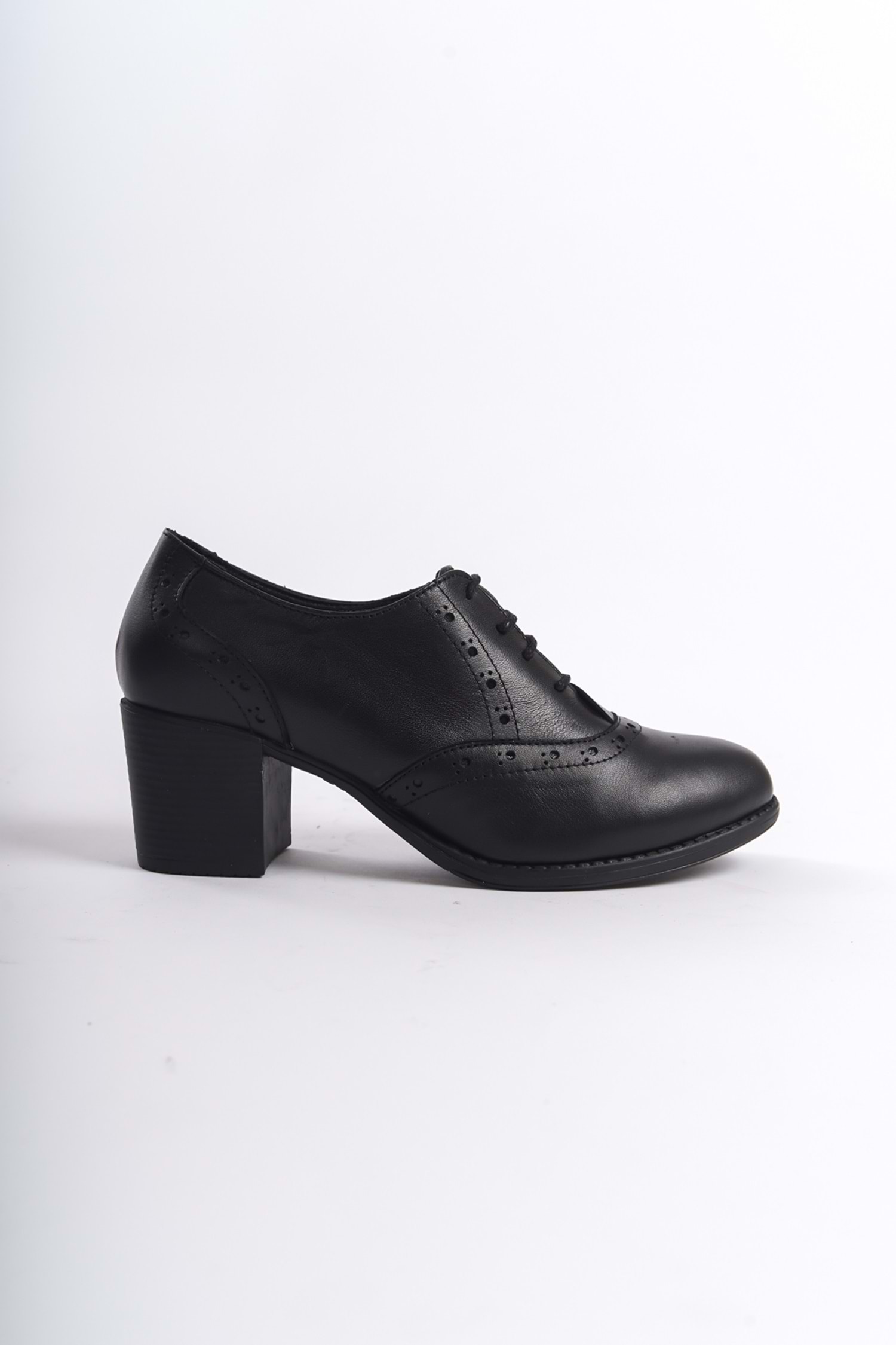 Kadın Hakiki Deri Bağcıklı Klasik Topuklu Ayakkabı Siyah