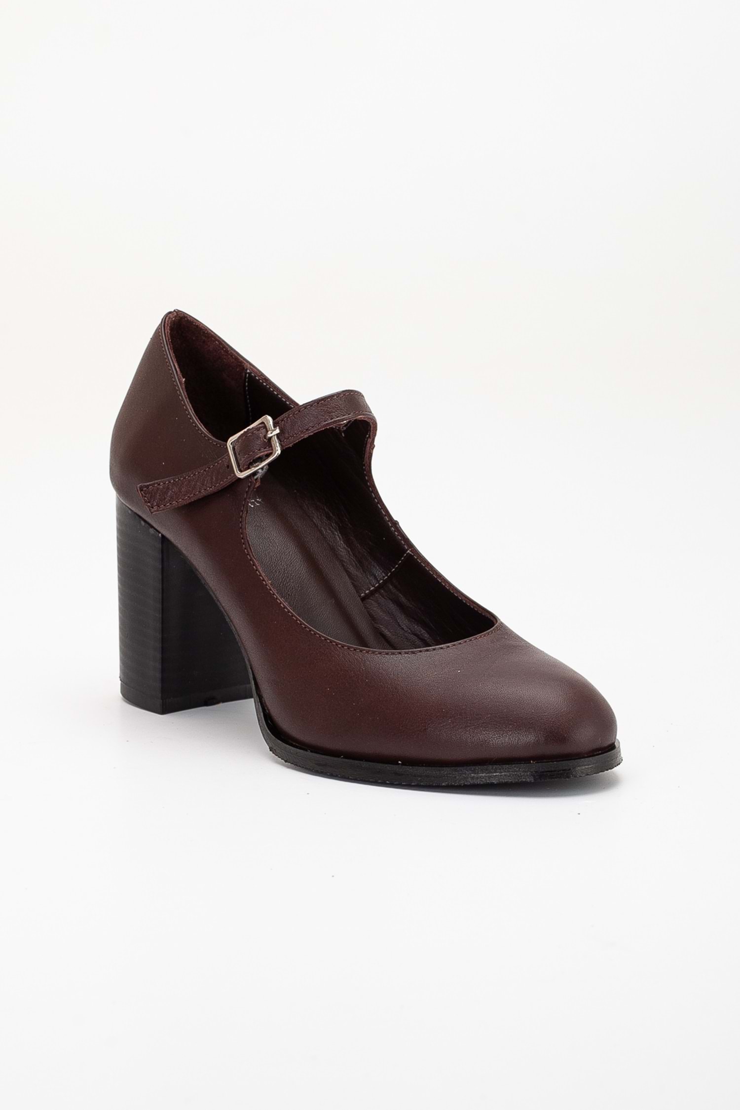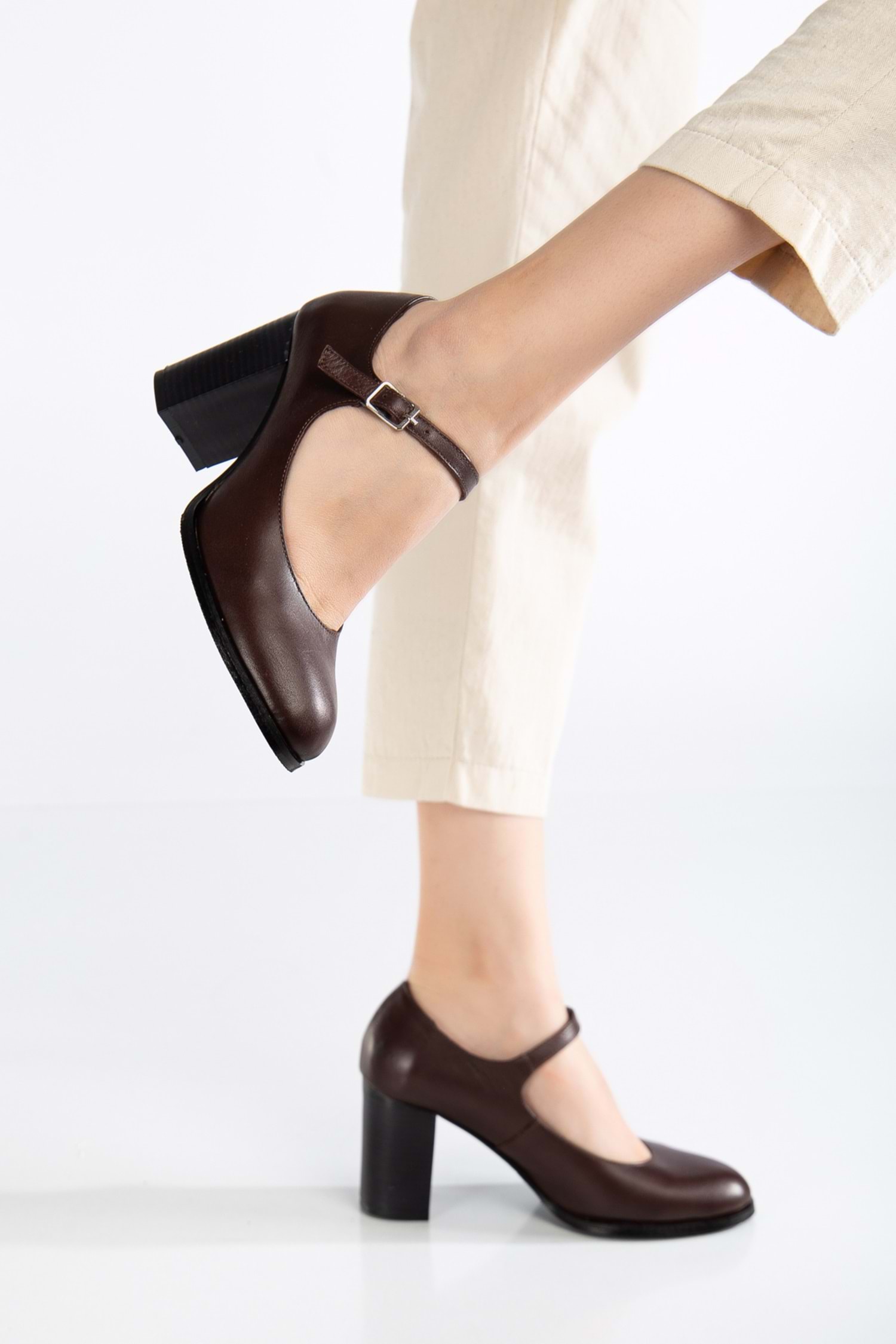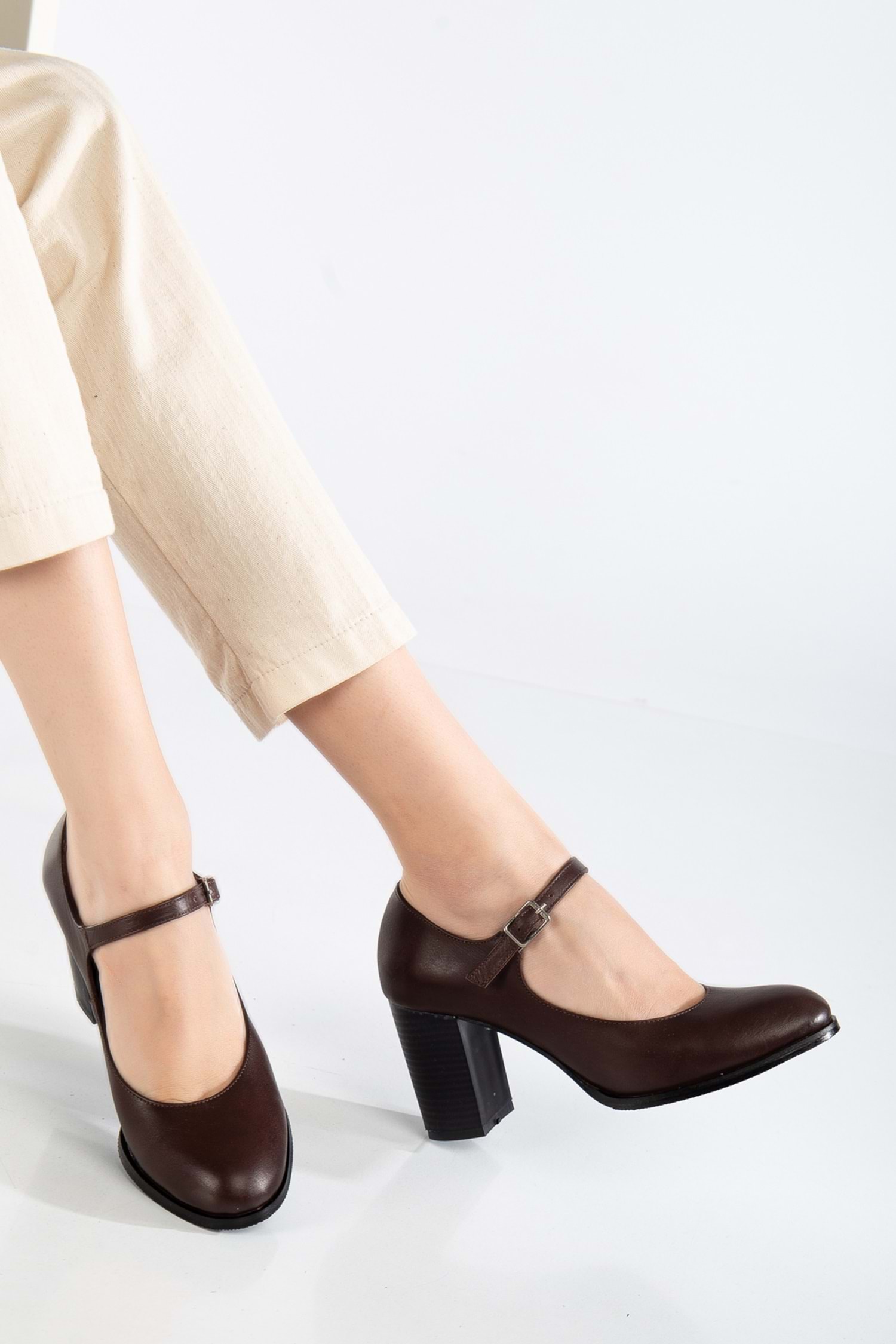 Kadın Hakiki Deri Bantlı Topuklu Ayakkabı - Kahve