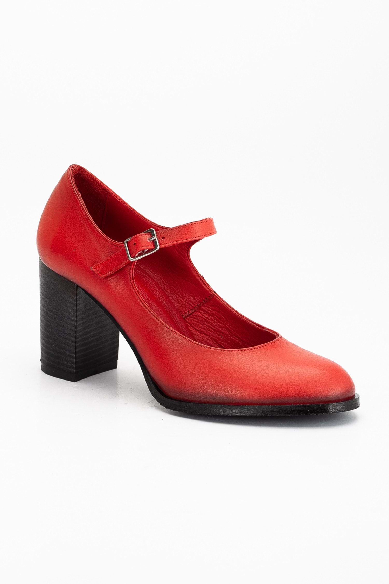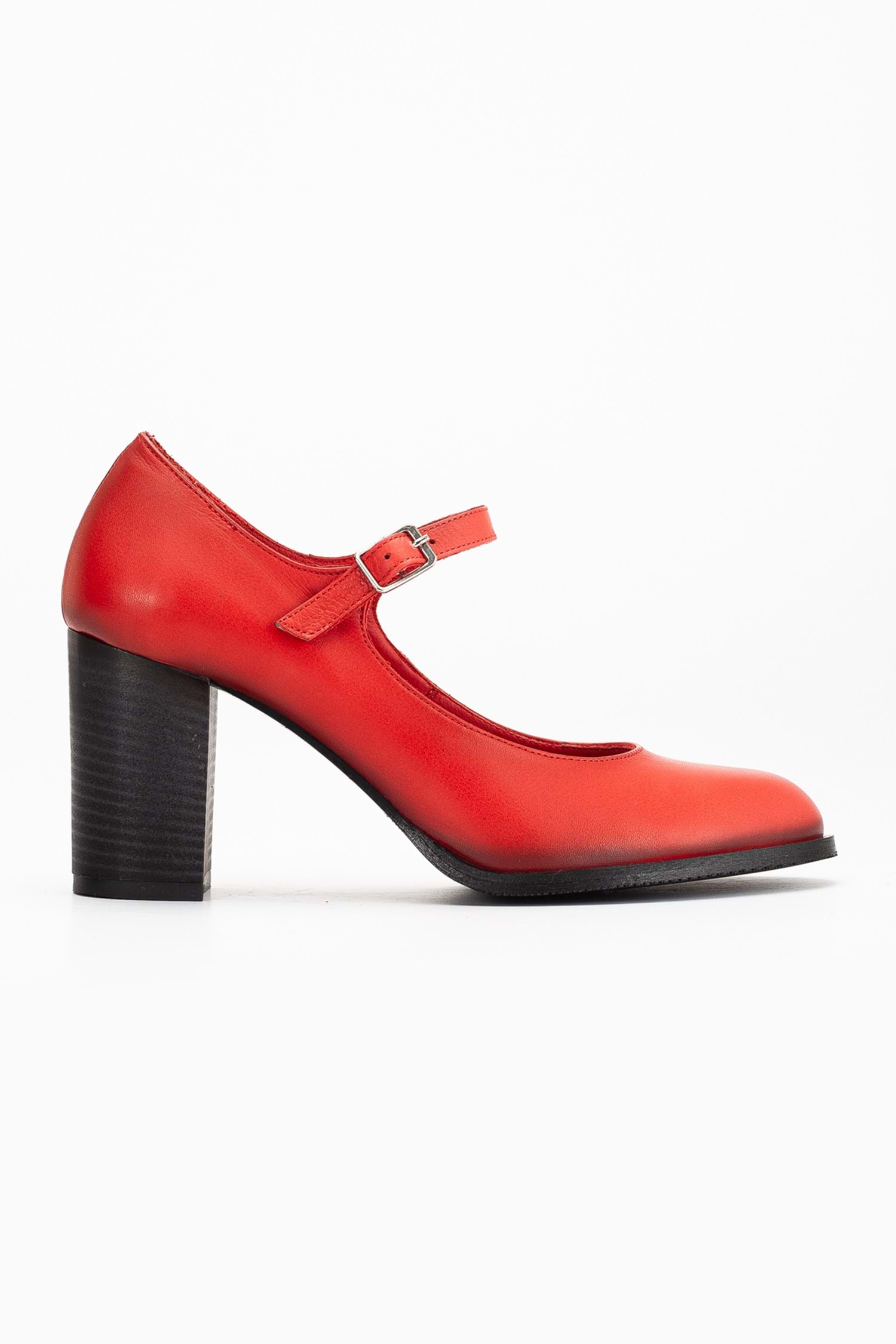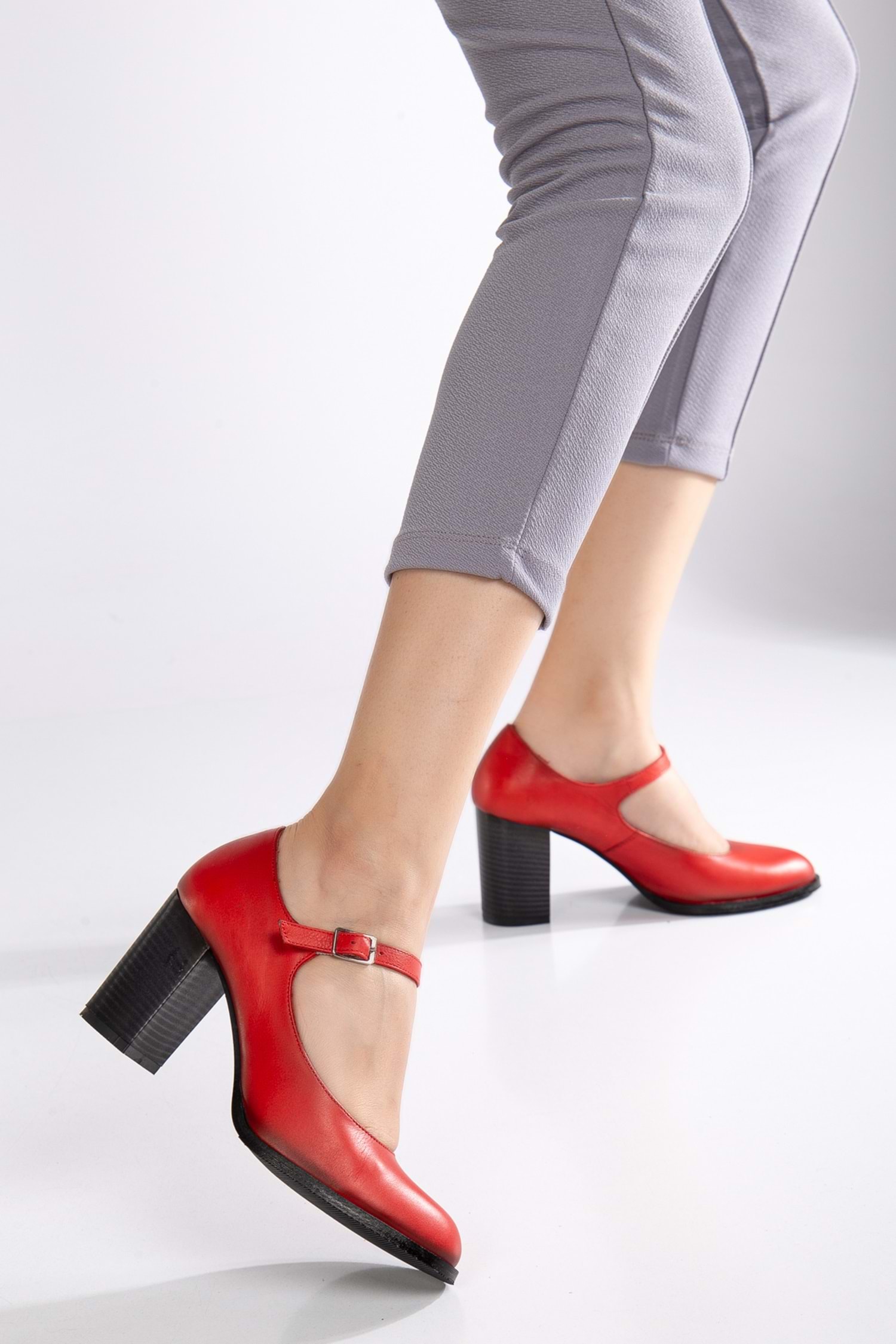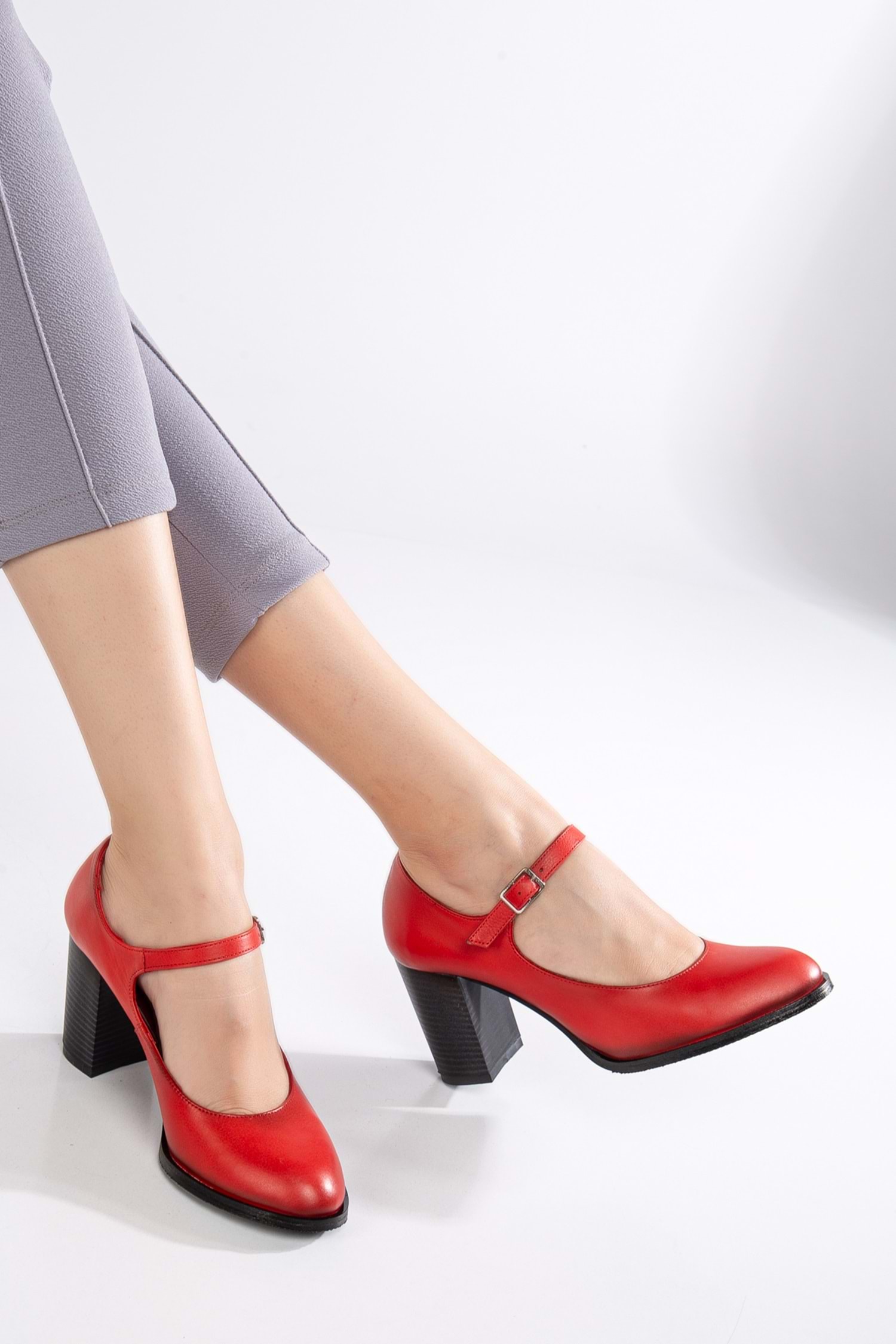 Kadın Hakiki Deri Bantlı Topuklu Ayakkabı Kırmızı