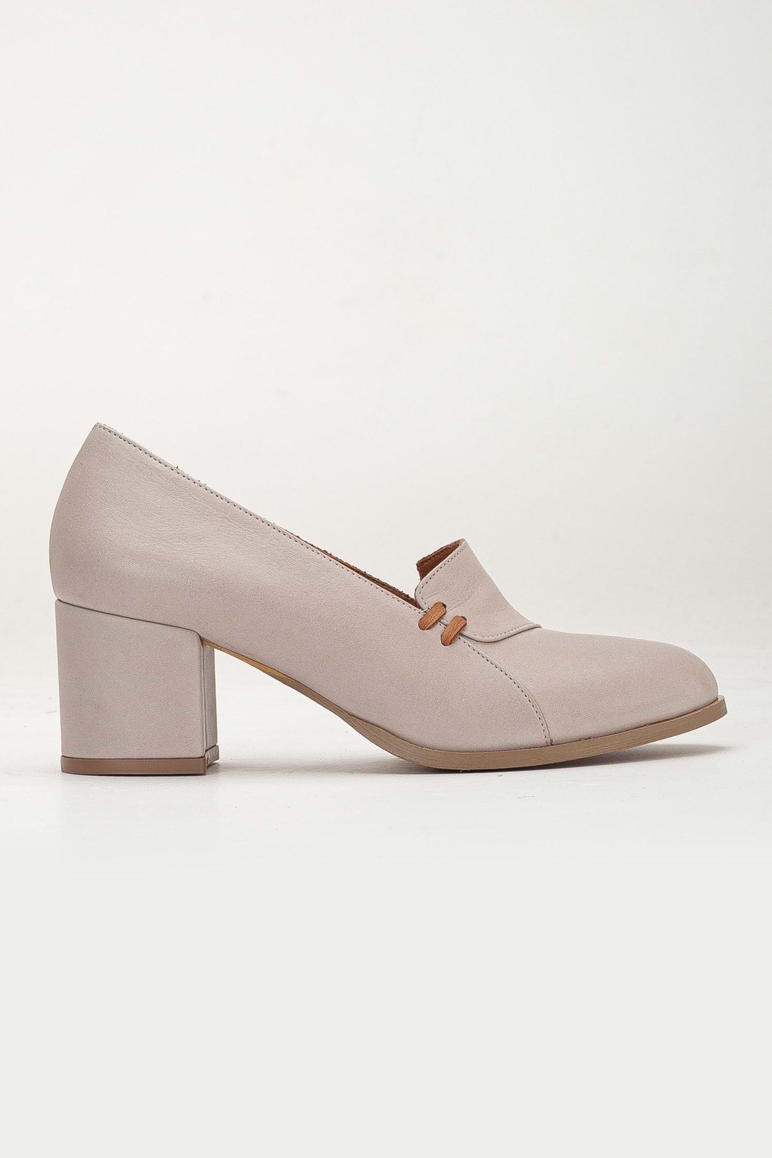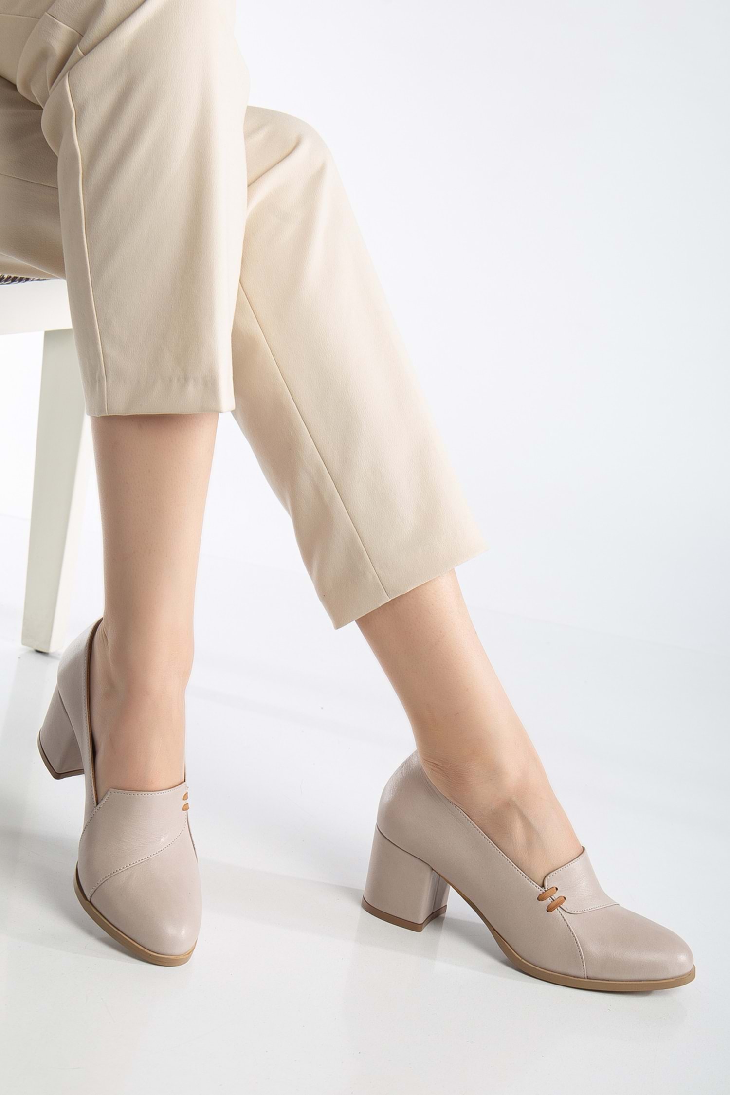 Kadın Hakiki Deri Biyeli Topuklu Ayakkabı - Silvergrey