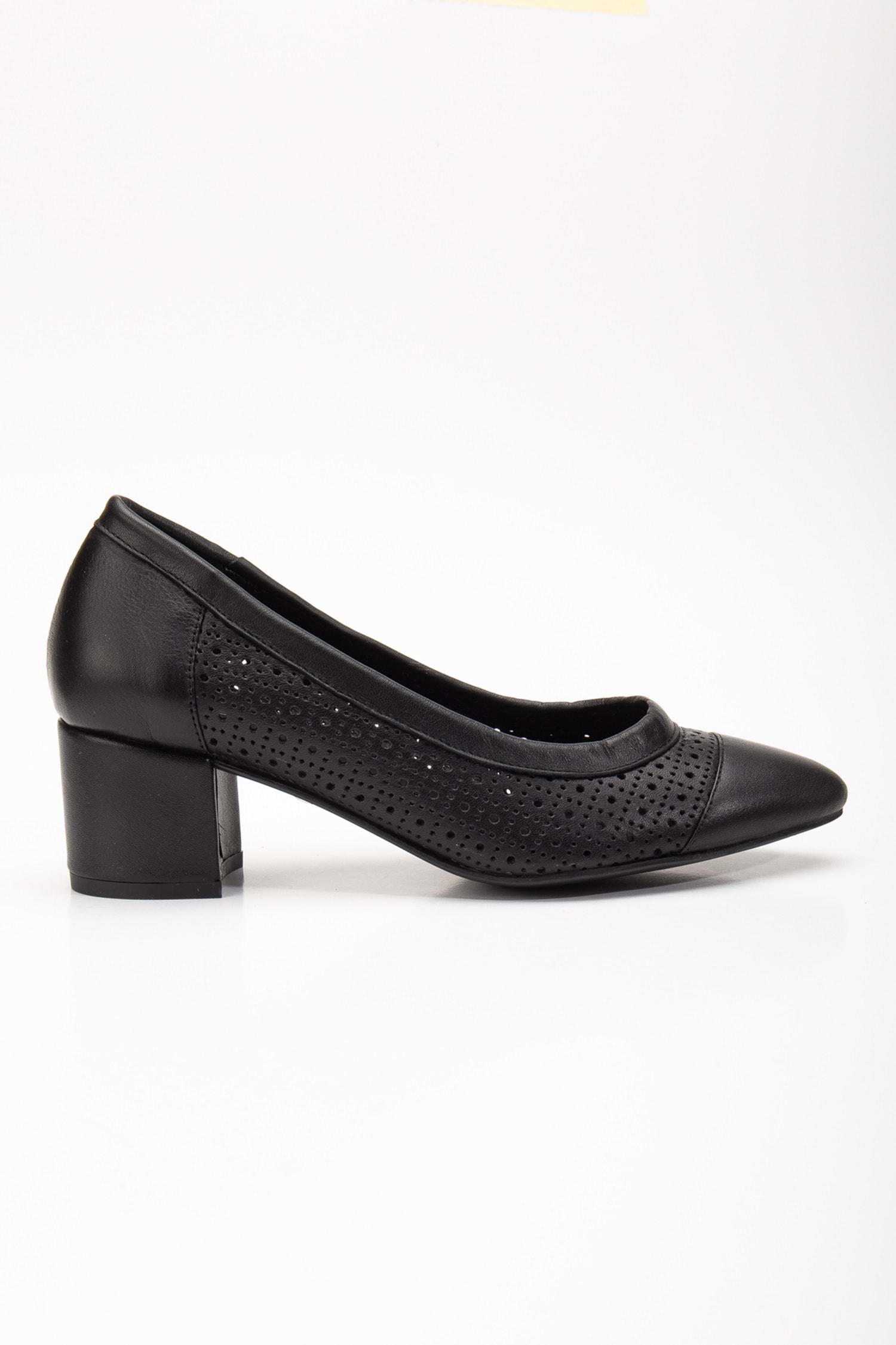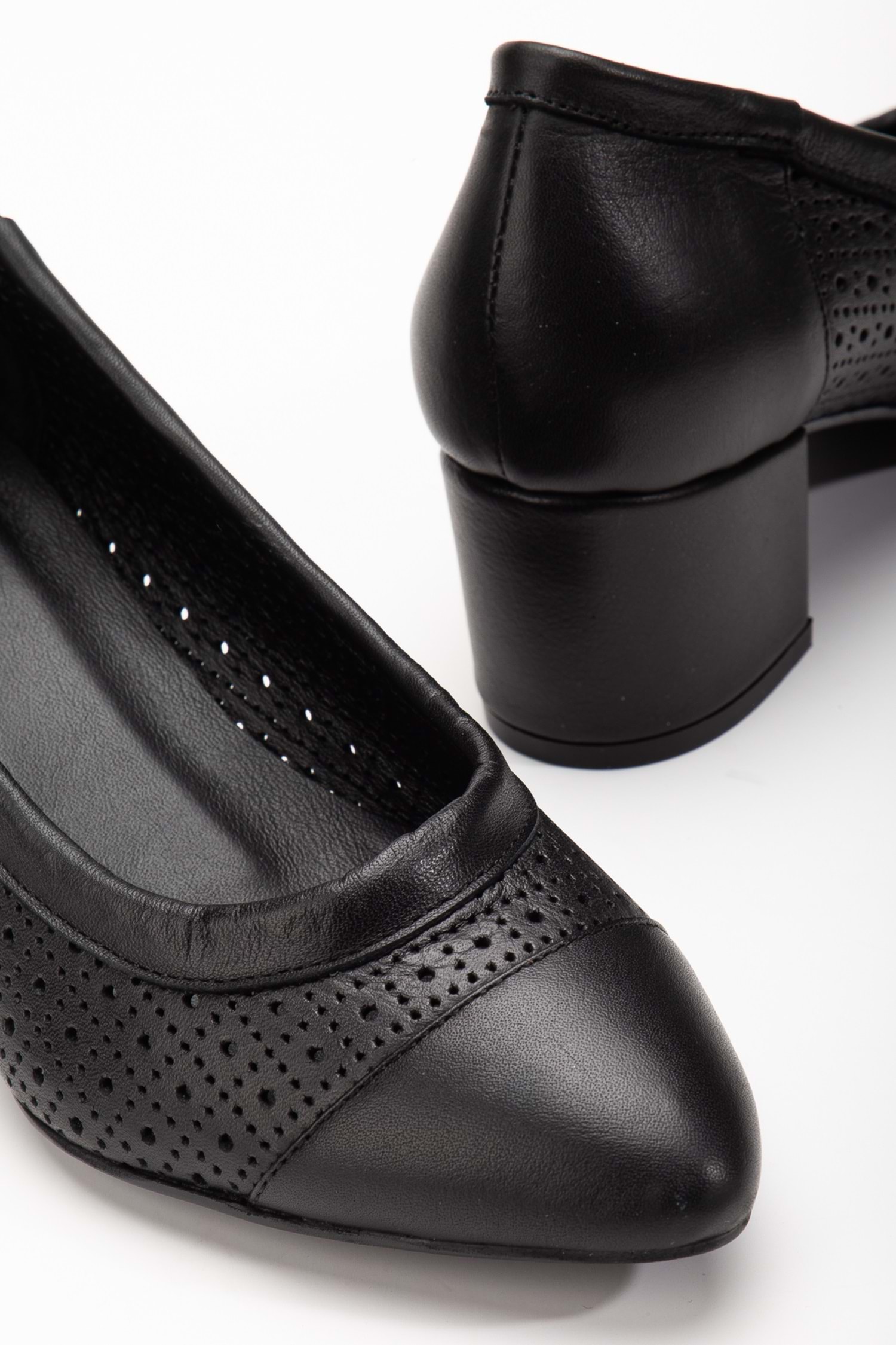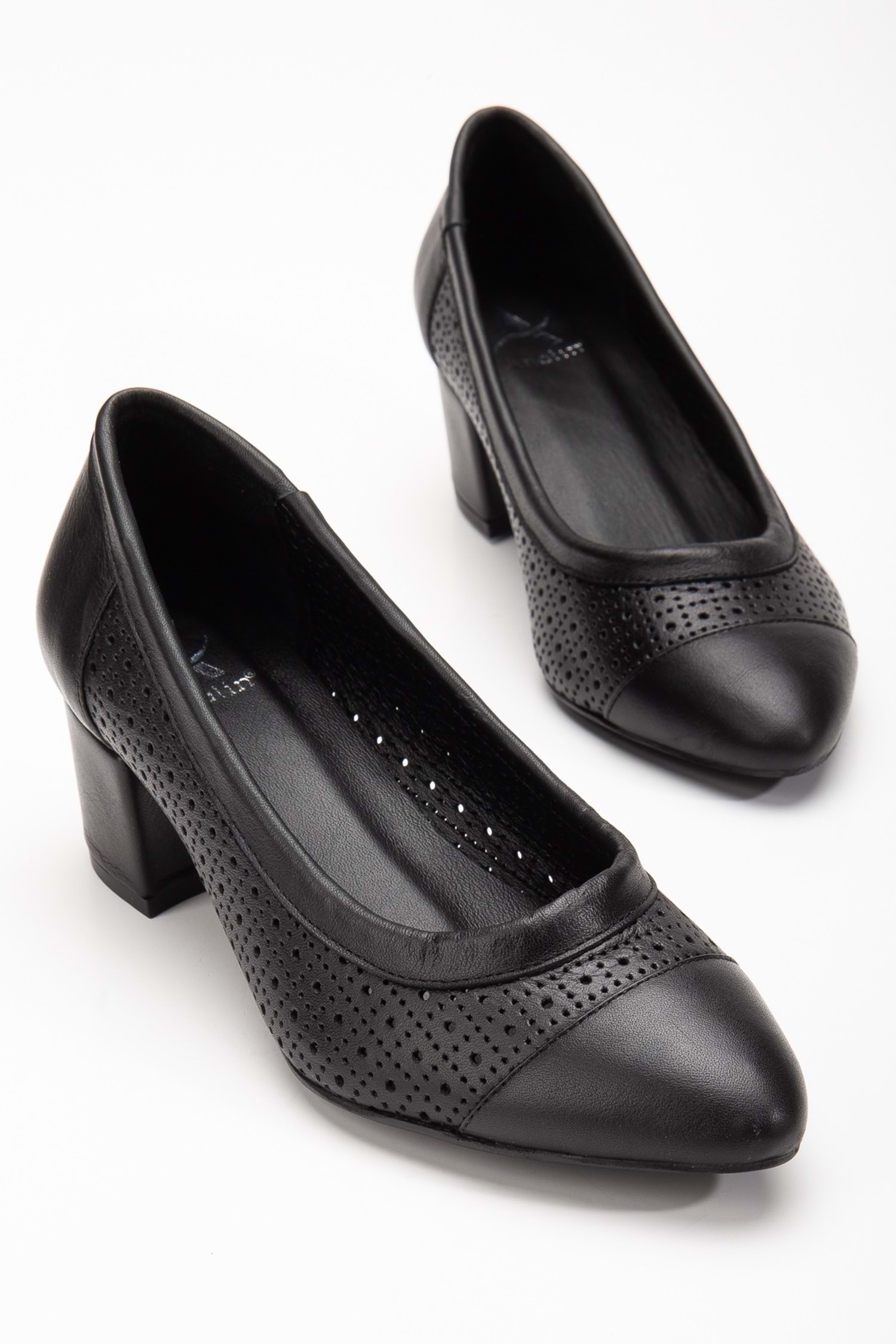 Kadın Hakiki Deri Delikli Topuklu Ayakkabı Siyah