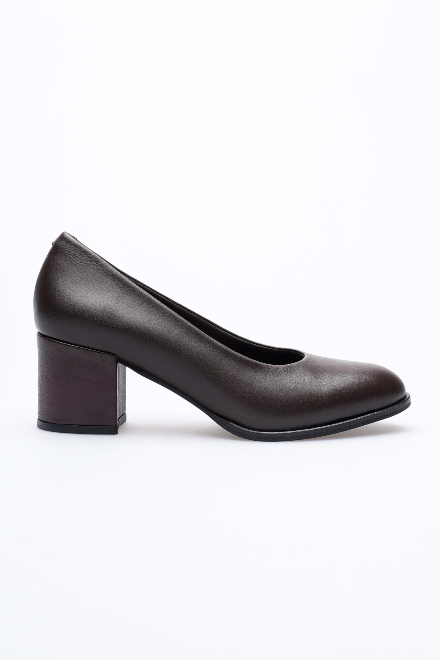Kadın Hakiki Deri Kalın Topuklu Klasik Ayakkabı - Kahve
