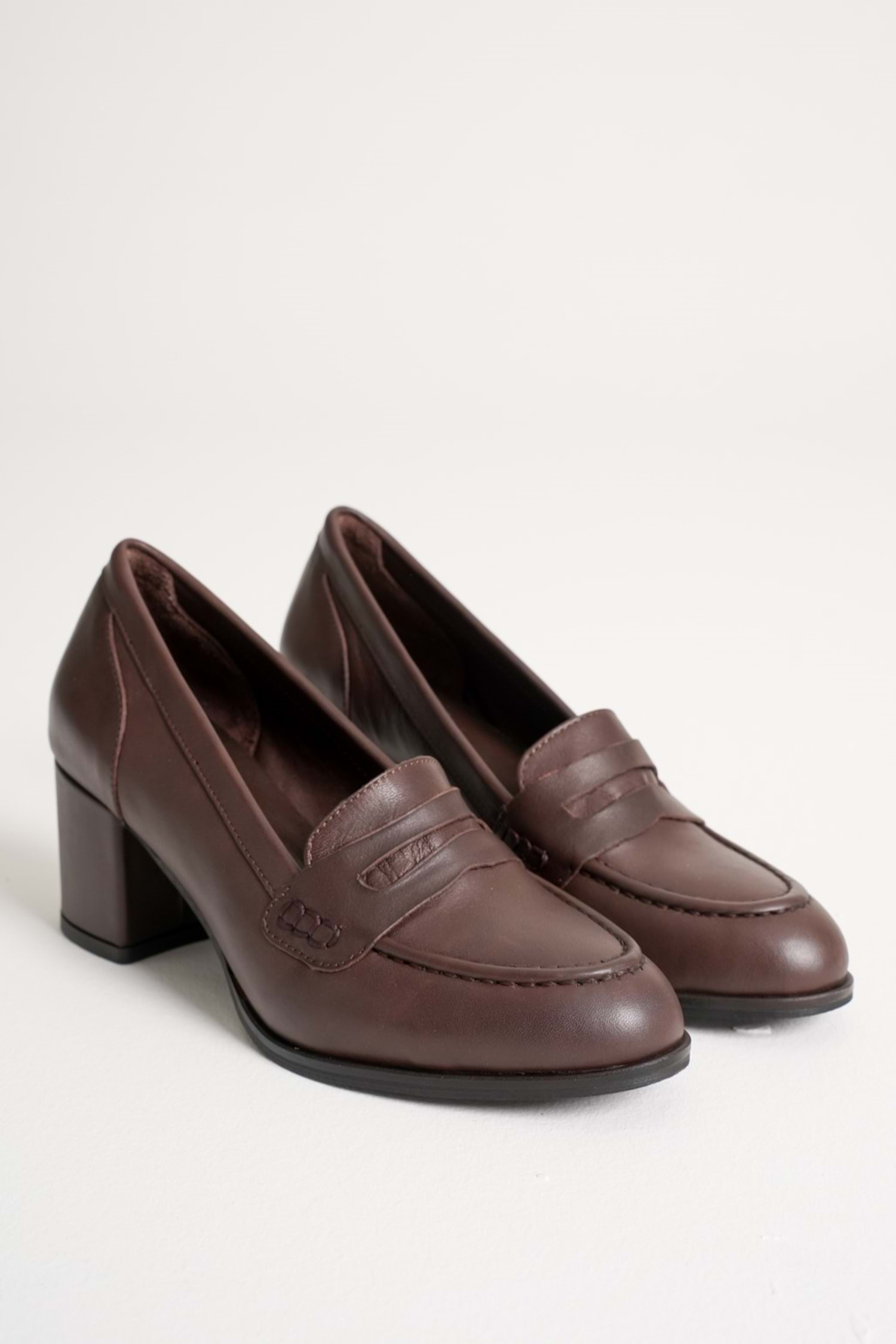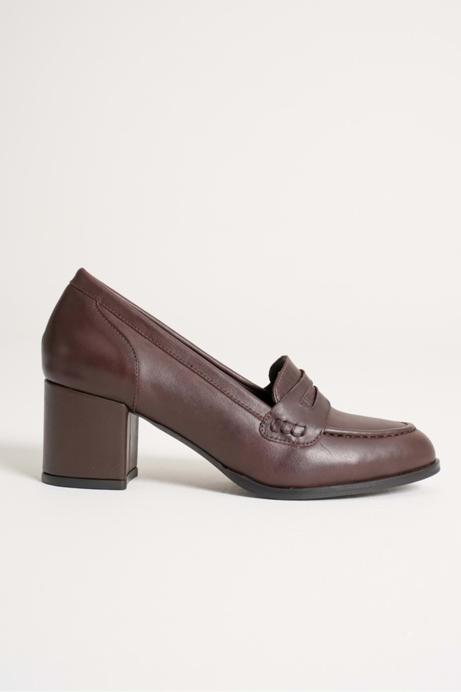 Kadın Hakiki Deri Kalın Topuklu Klasik Ayakkabı - Kahve