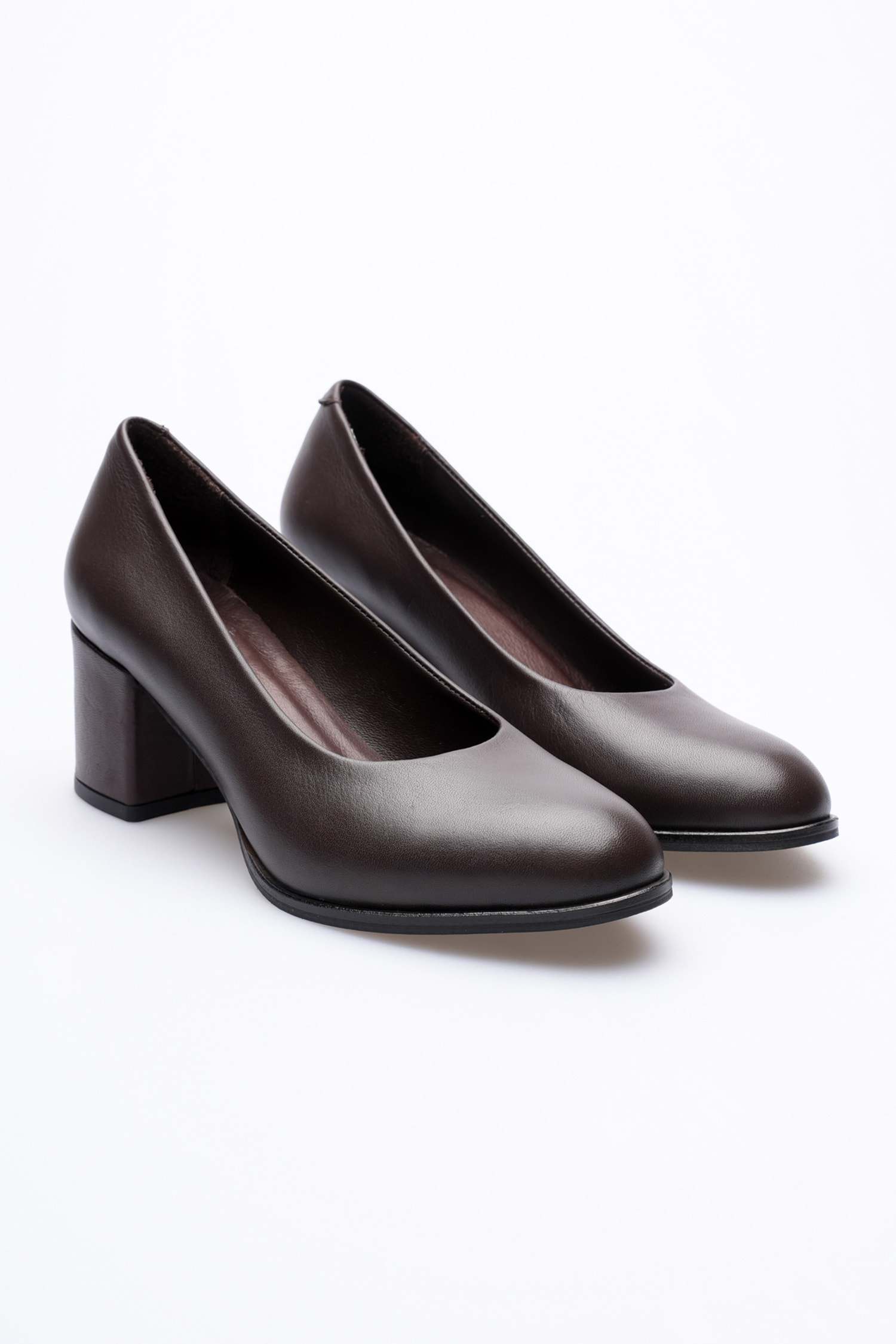 Kadın Hakiki Deri Kalın Topuklu Klasik Ayakkabı - Kahve