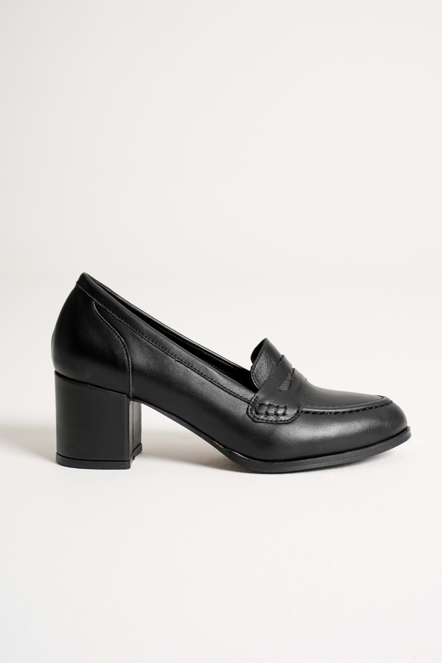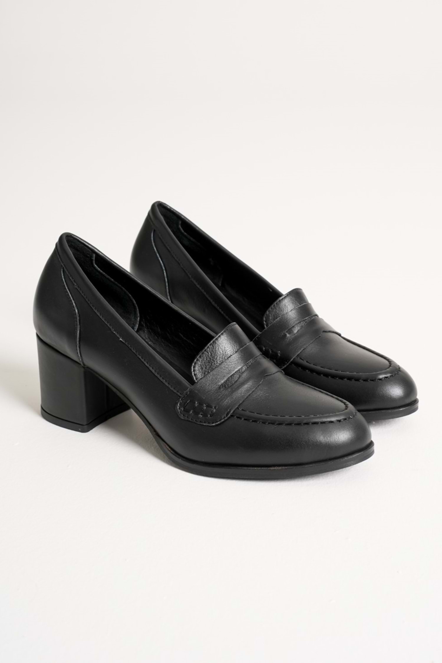 Kadın Hakiki Deri Kalın Topuklu Klasik Ayakkabı - Siyah