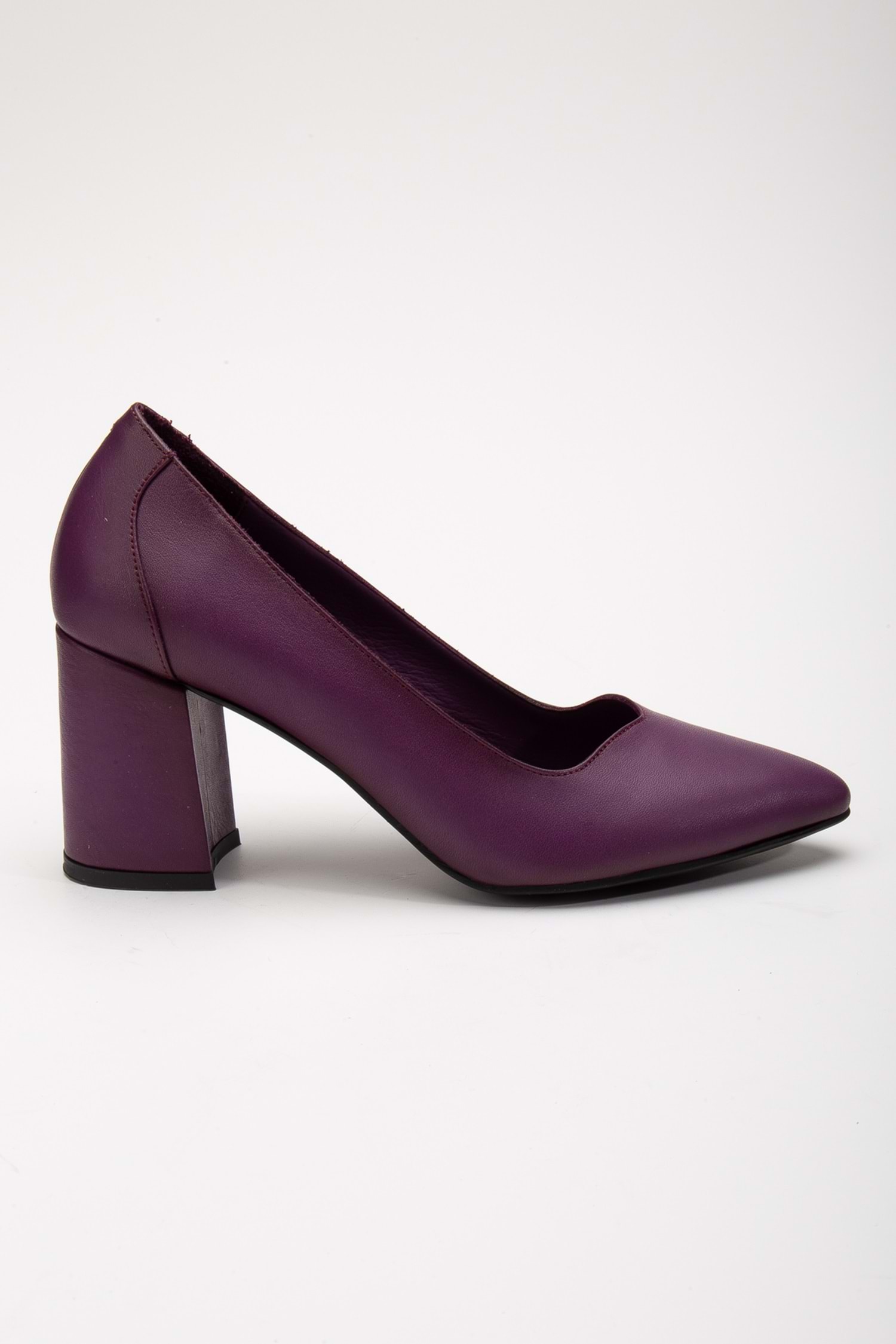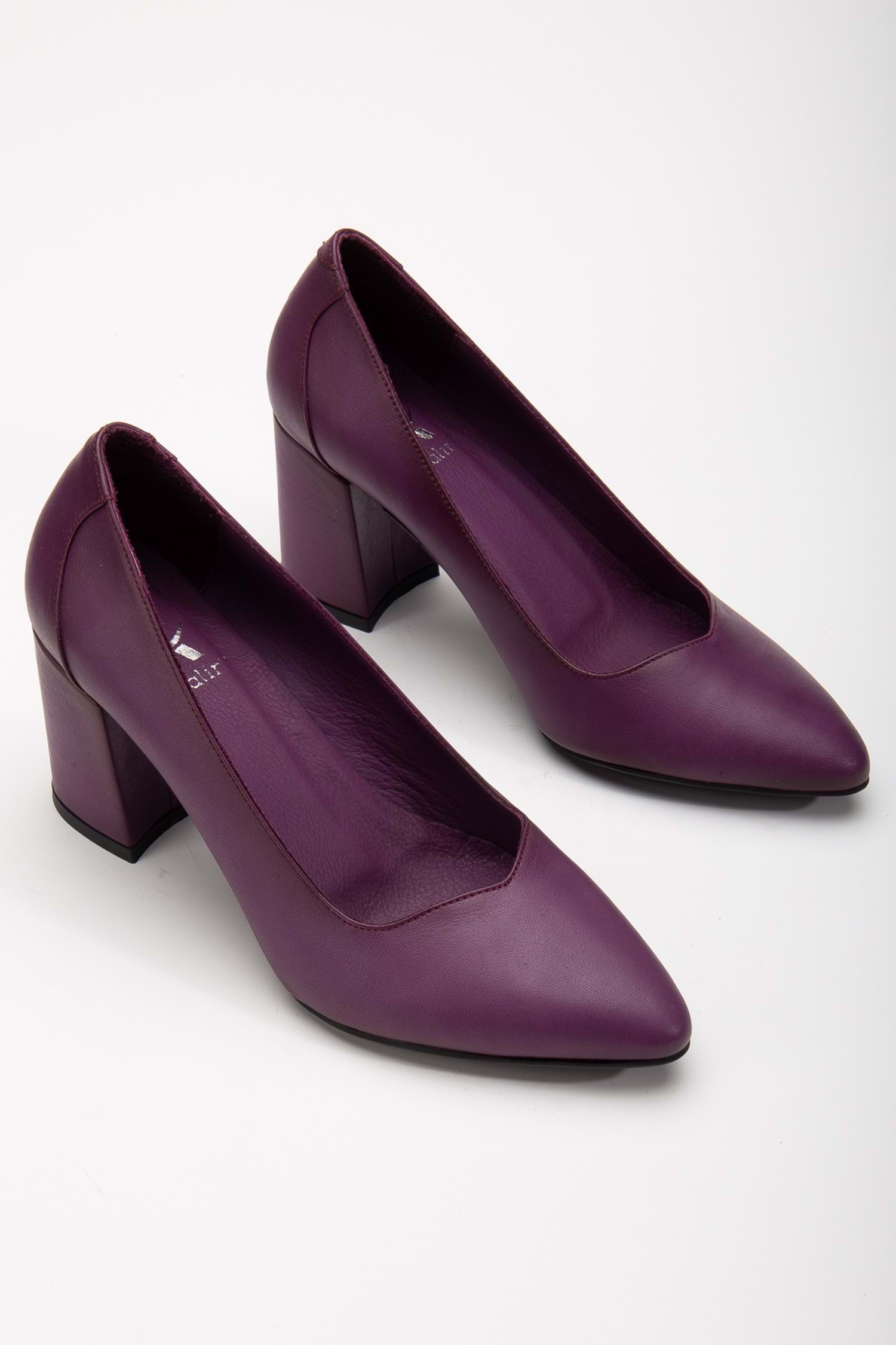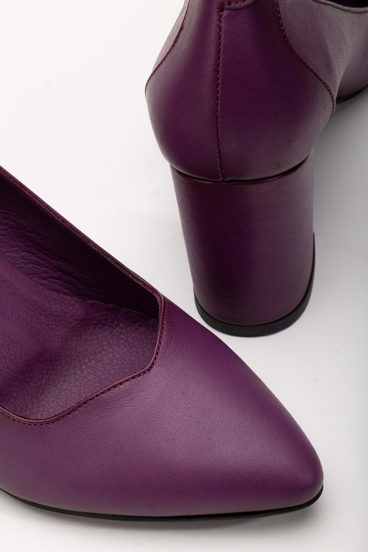 Kadın Hakiki Deri Klasik Kalın Topuklu Ayakkabı Mor