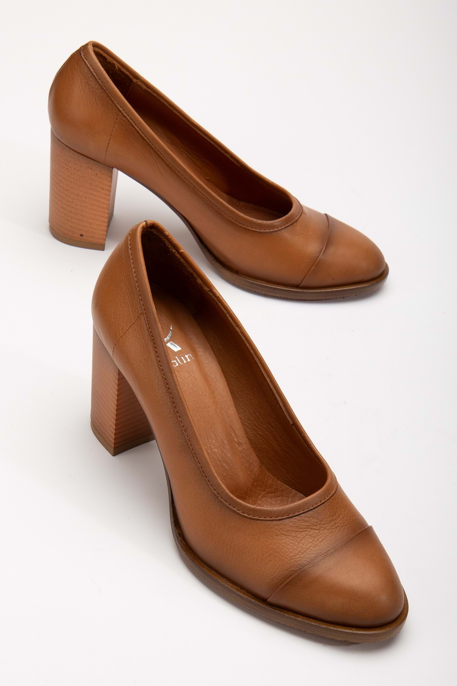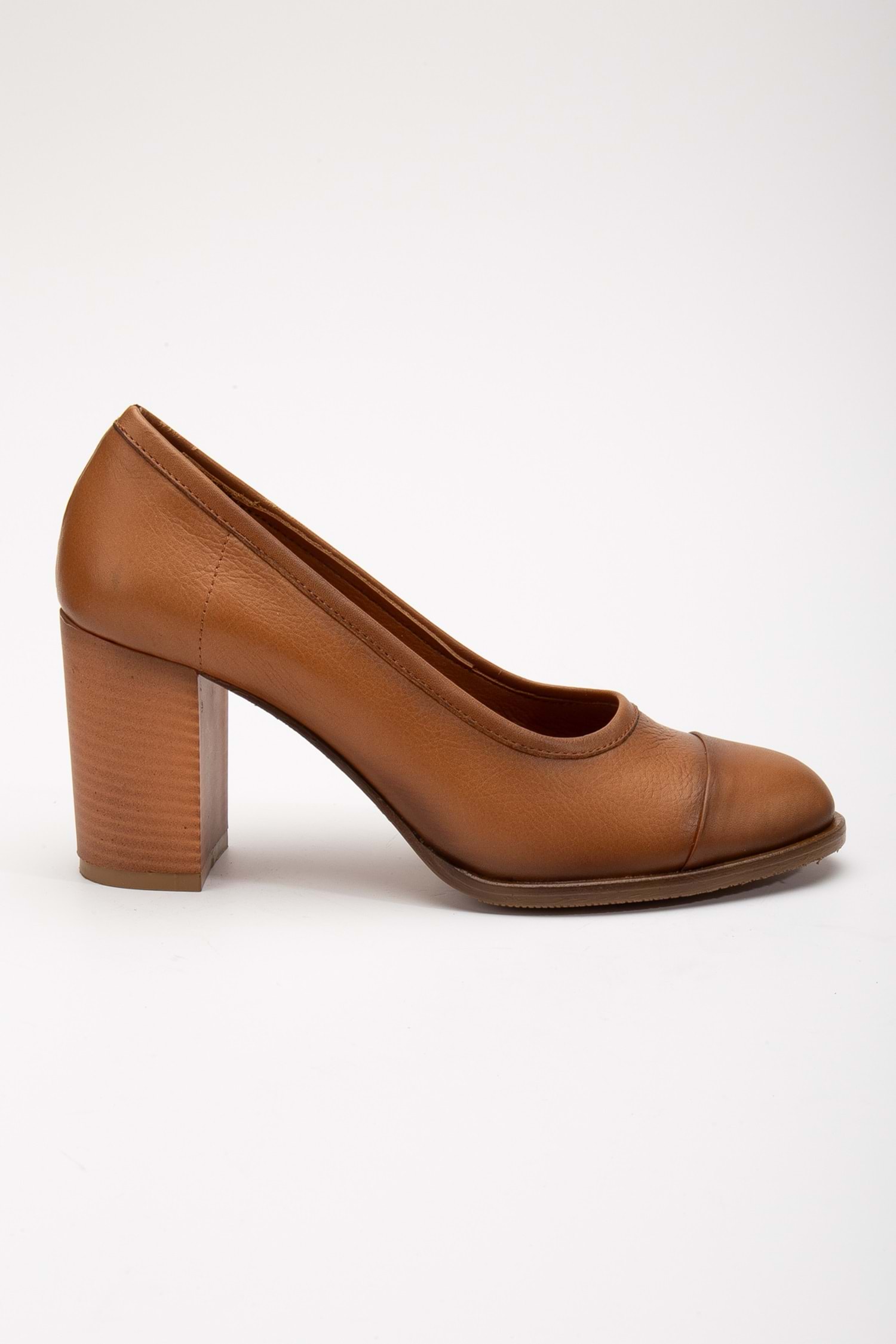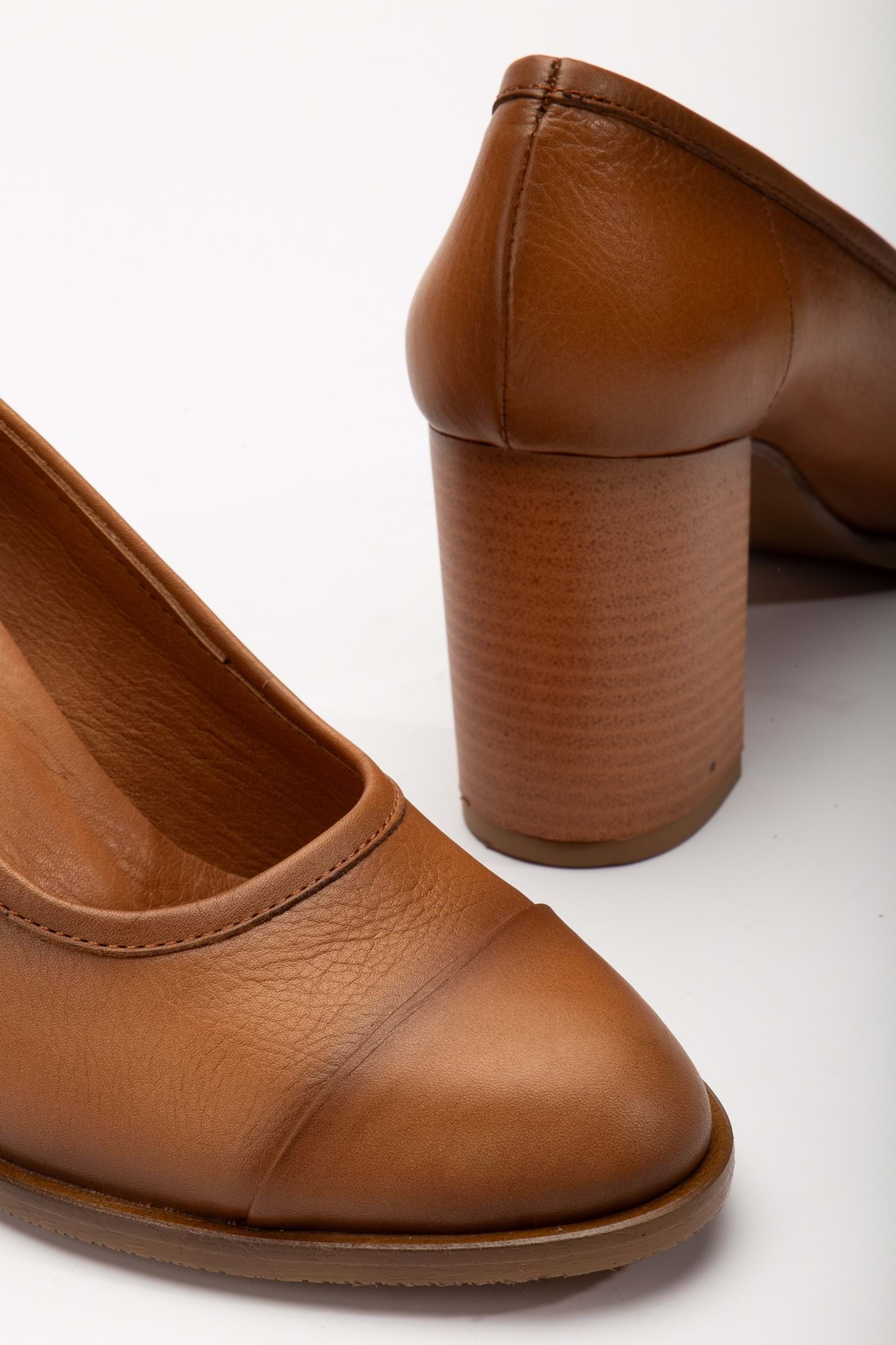 Kadın Hakiki Deri Klasik Topuklu Ayakkabı Taba