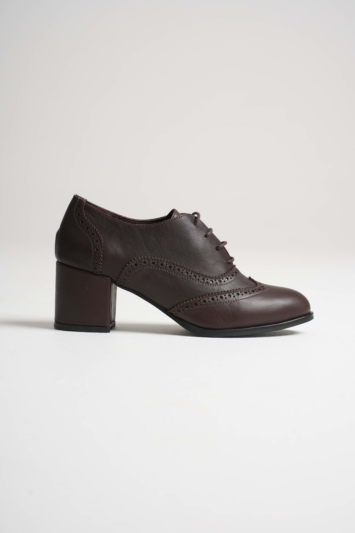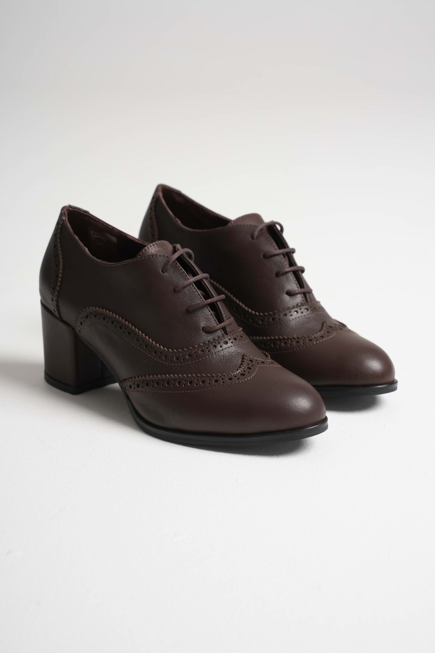 Kadın Hakiki Deri Lazer Detaylı Şık Topuklu Ayakkabı - Kahve