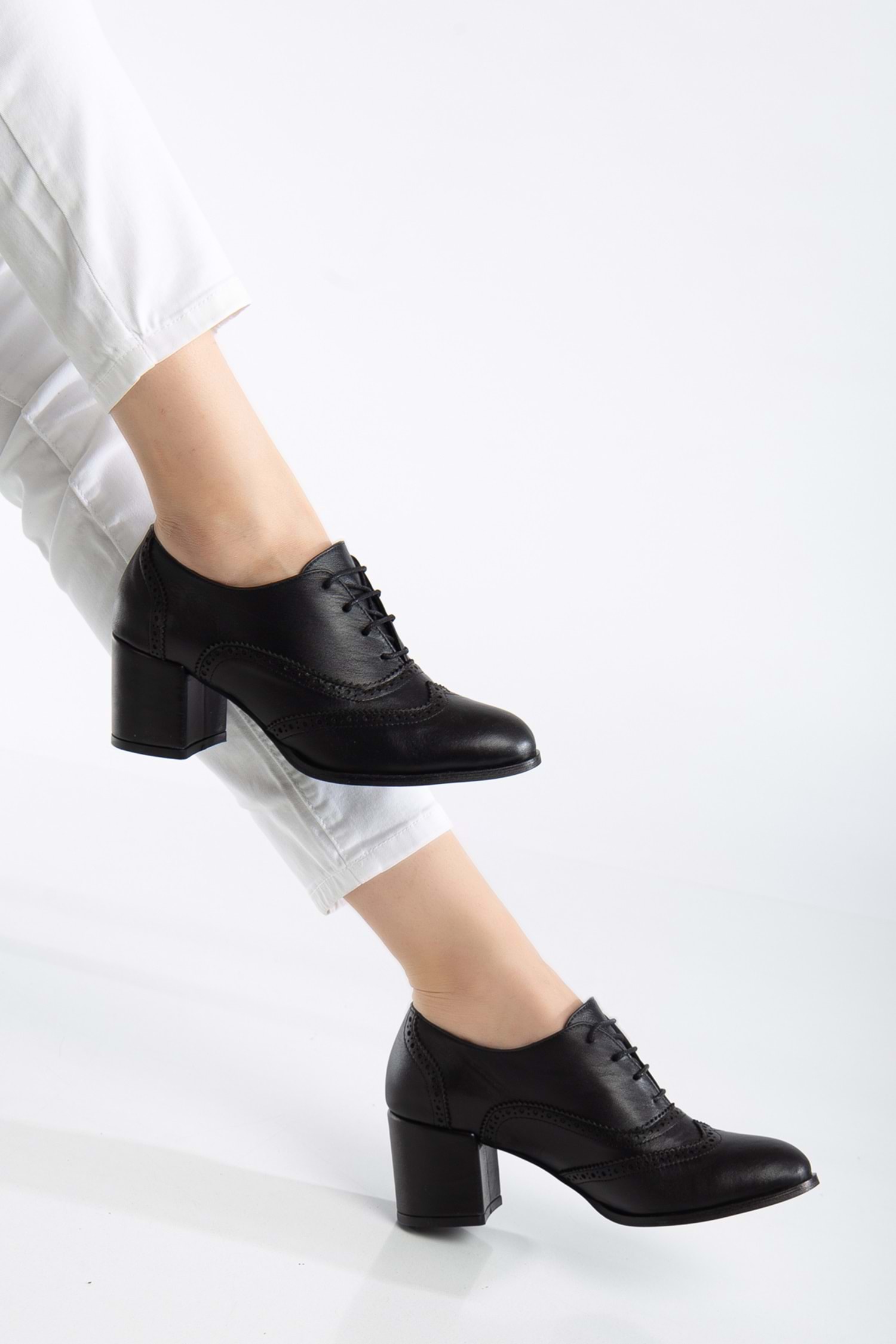 Kadın Hakiki Deri Lazer Detaylı Şık Topuklu Ayakkabı - Siyah