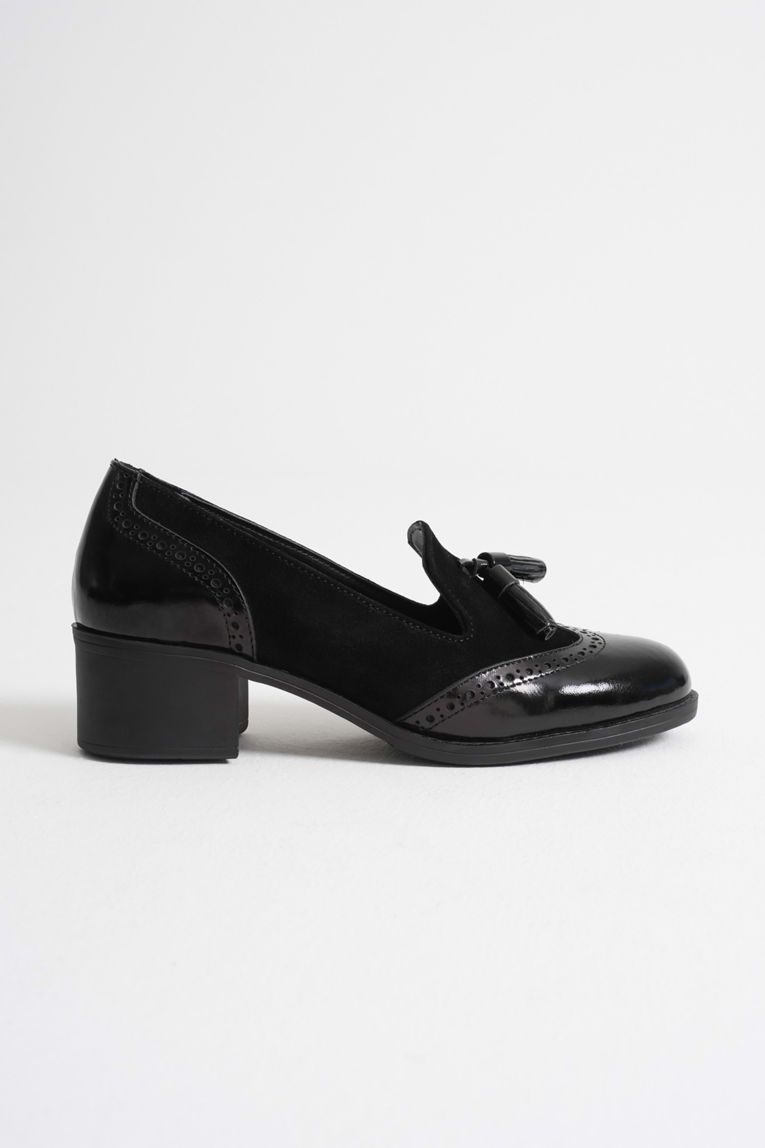 Kadın Hakiki Deri Püskül Detaylı Şık Ayakkabı - Siyah Rugan