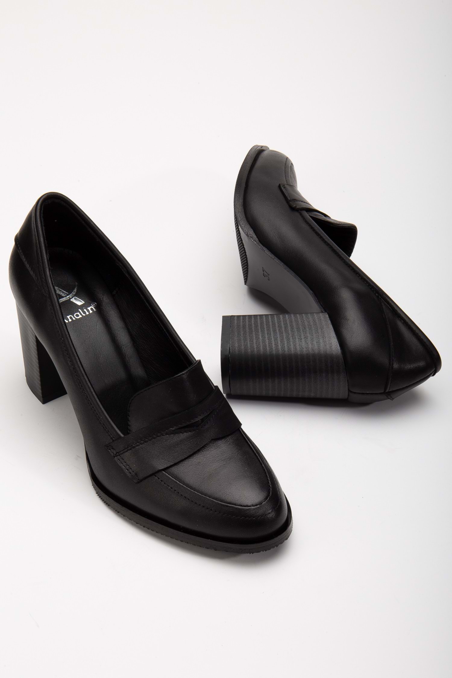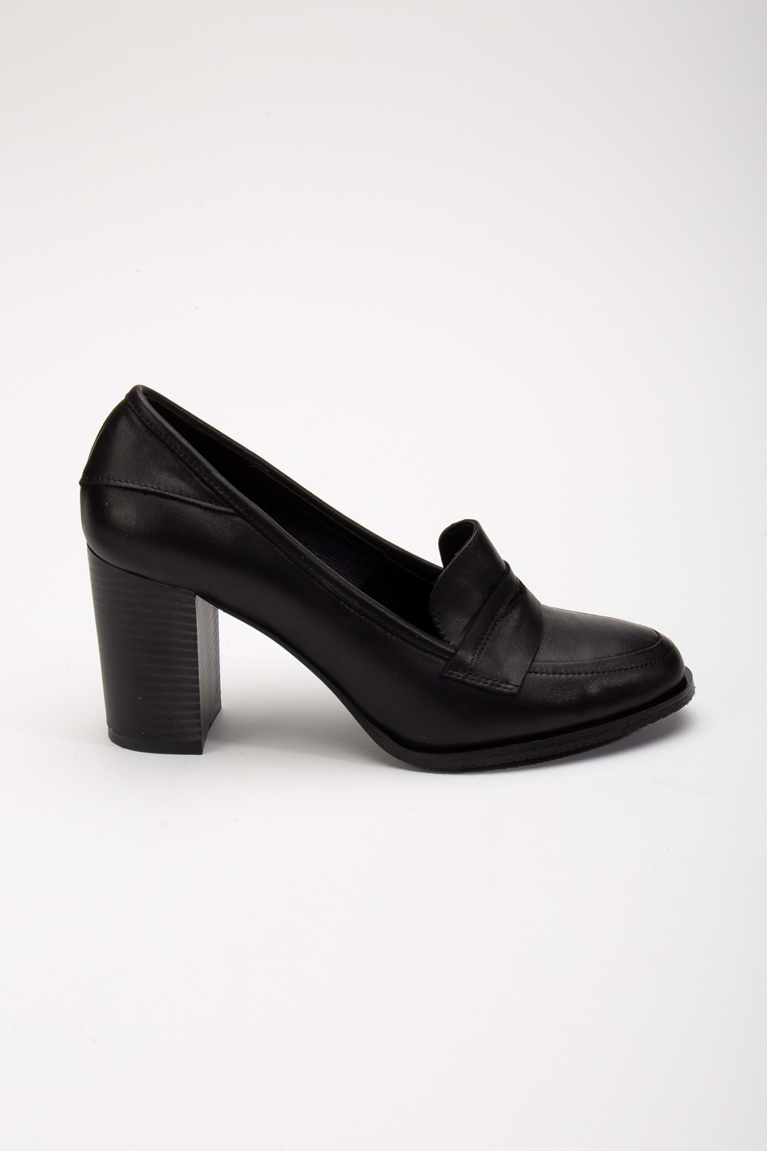 Kadın Hakiki Deri Saraçlı Klasik Topuklu Ayakkabı Siyah