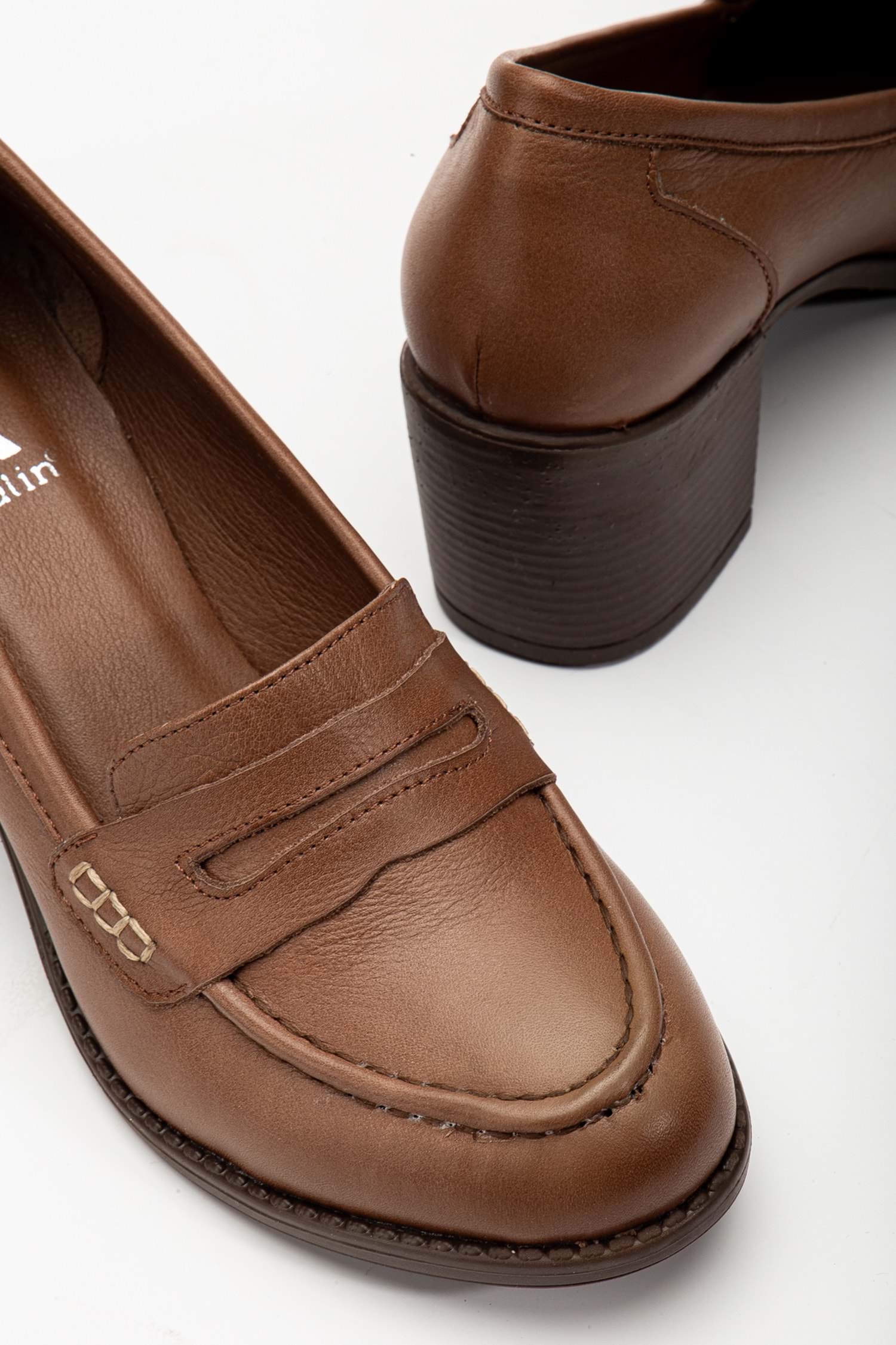 Kadın Hakiki Deri Saraçlı Klasik Topuklu Ayakkabı Ceviz