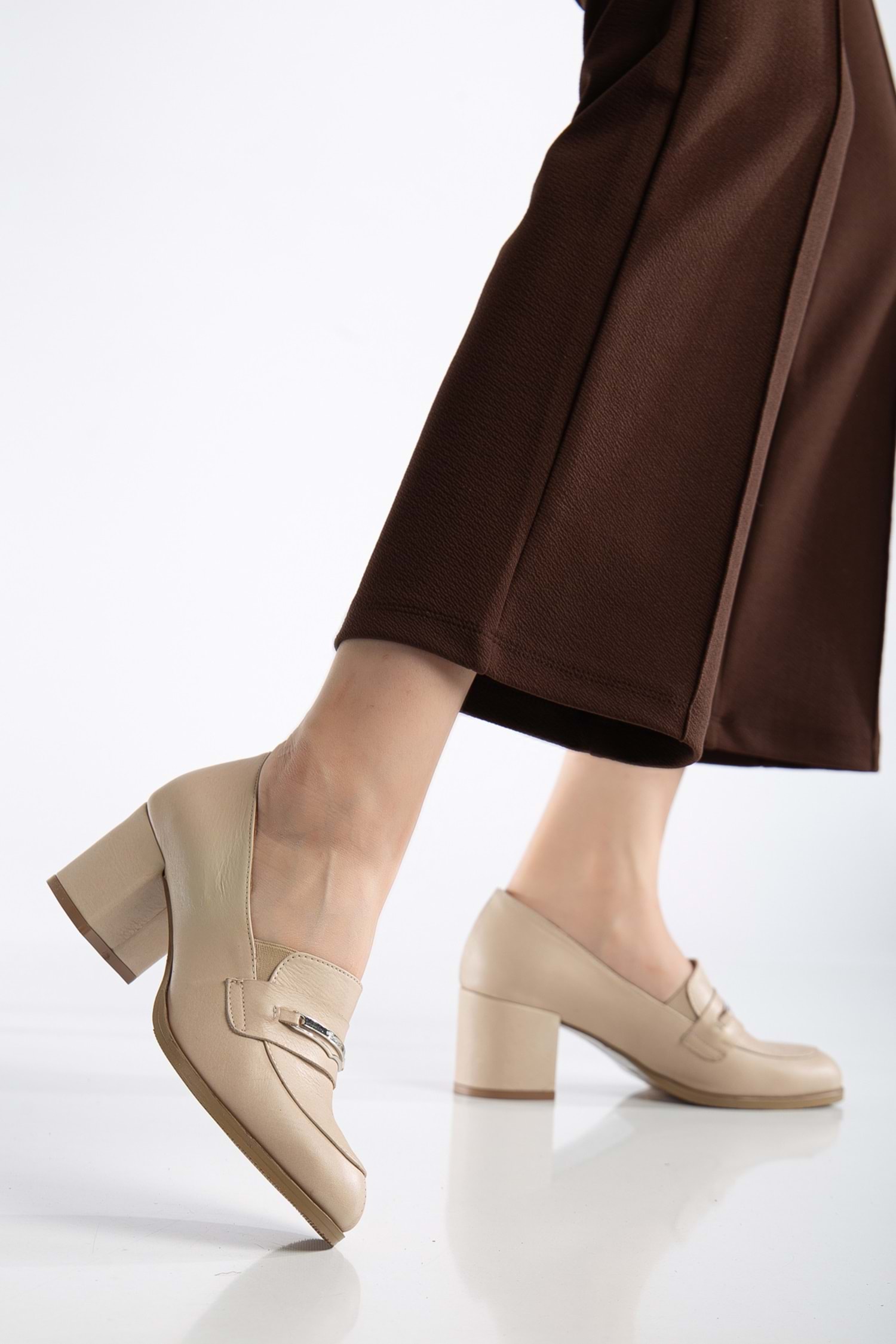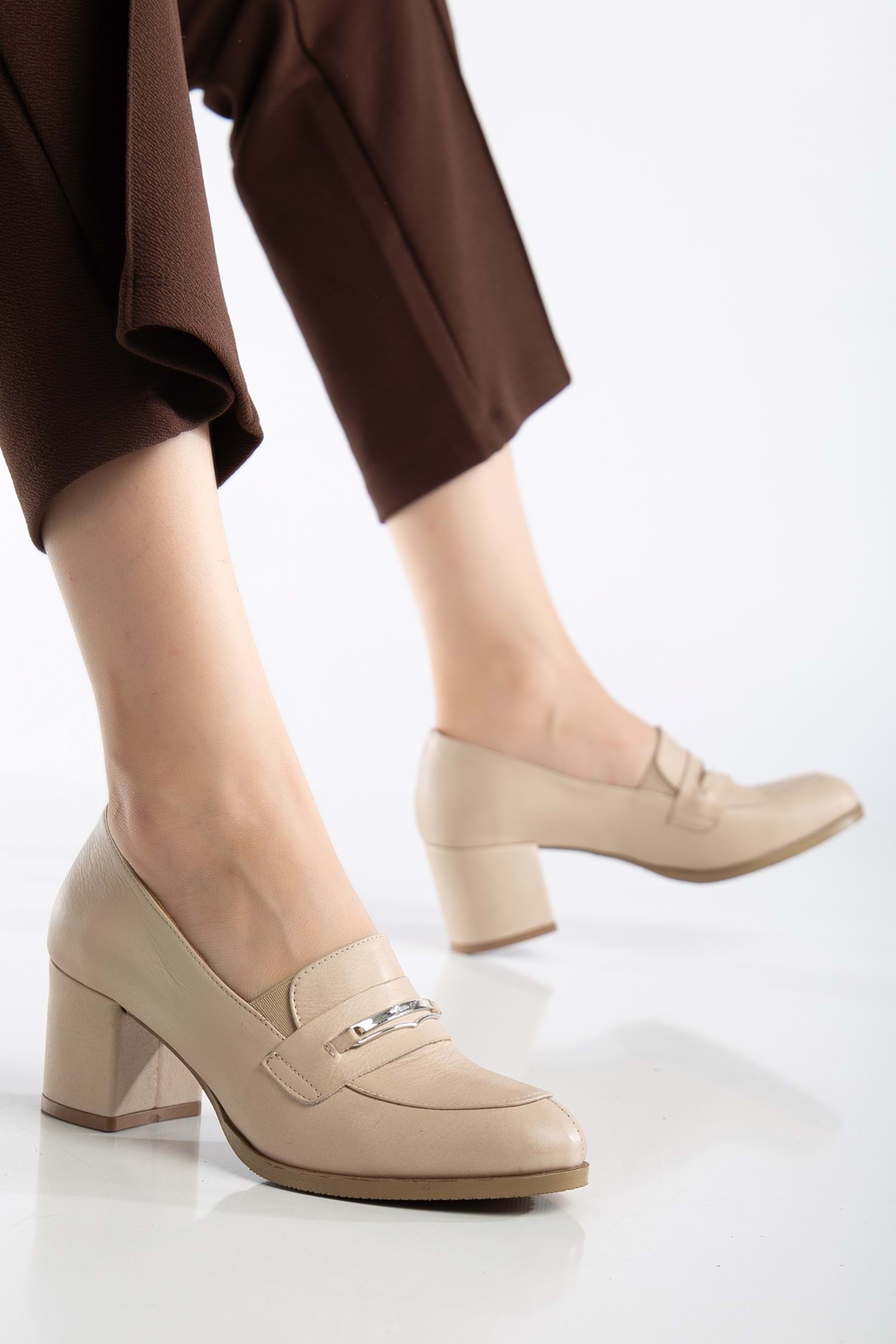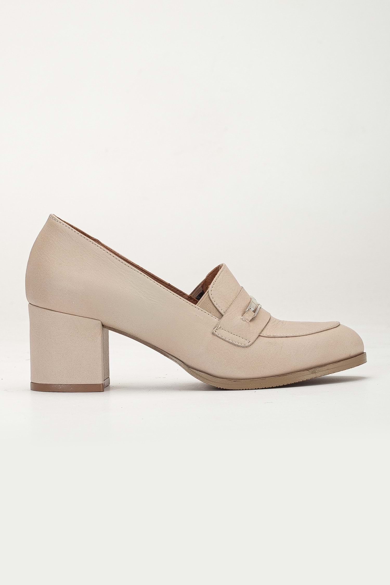 Kadın Hakiki Deri Tokalı Şık Topuklu Ayakkabı - Bej